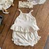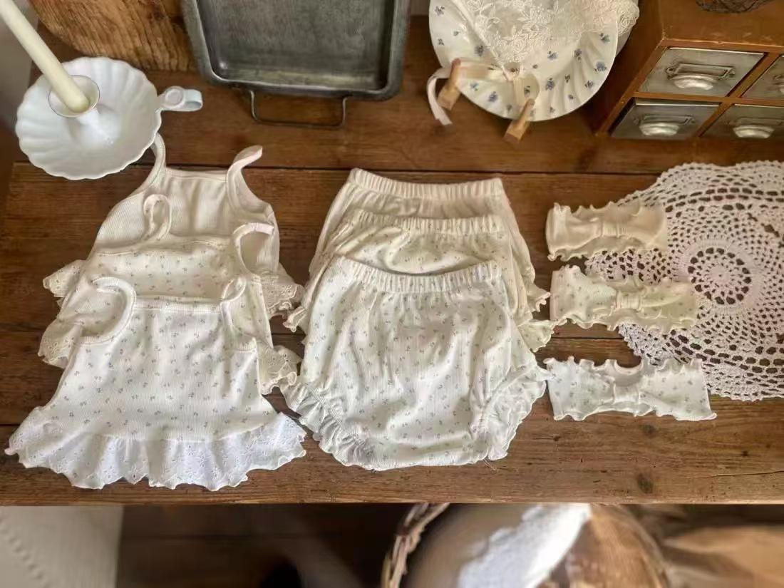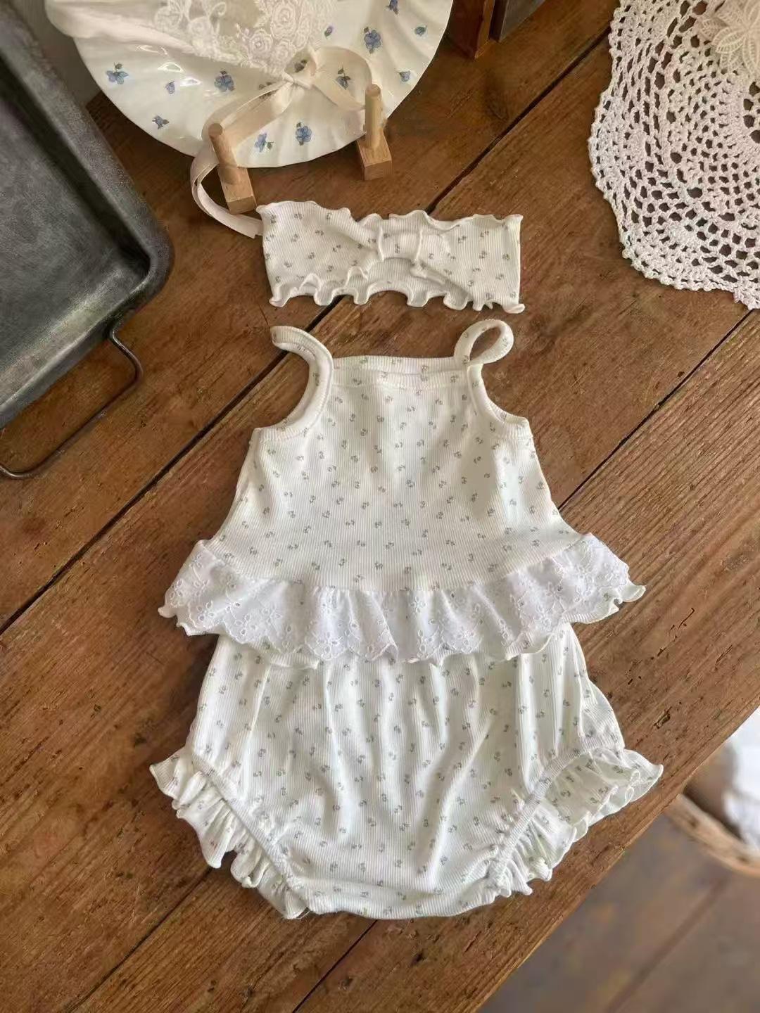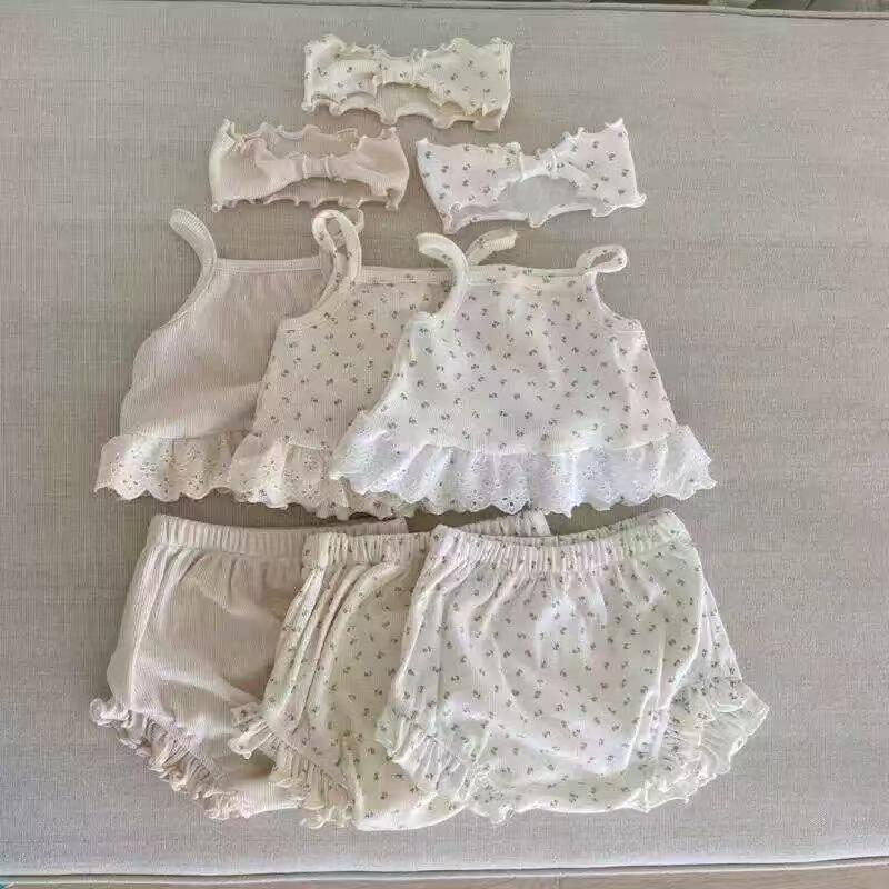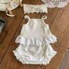 Conjunto de dos piezas de chaleco de princesa con costuras de encaje y tirantes finos con estampado floral de estilo coreano para mujer de Ins