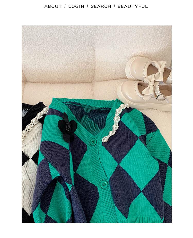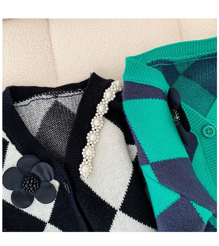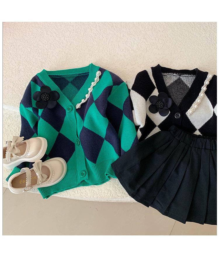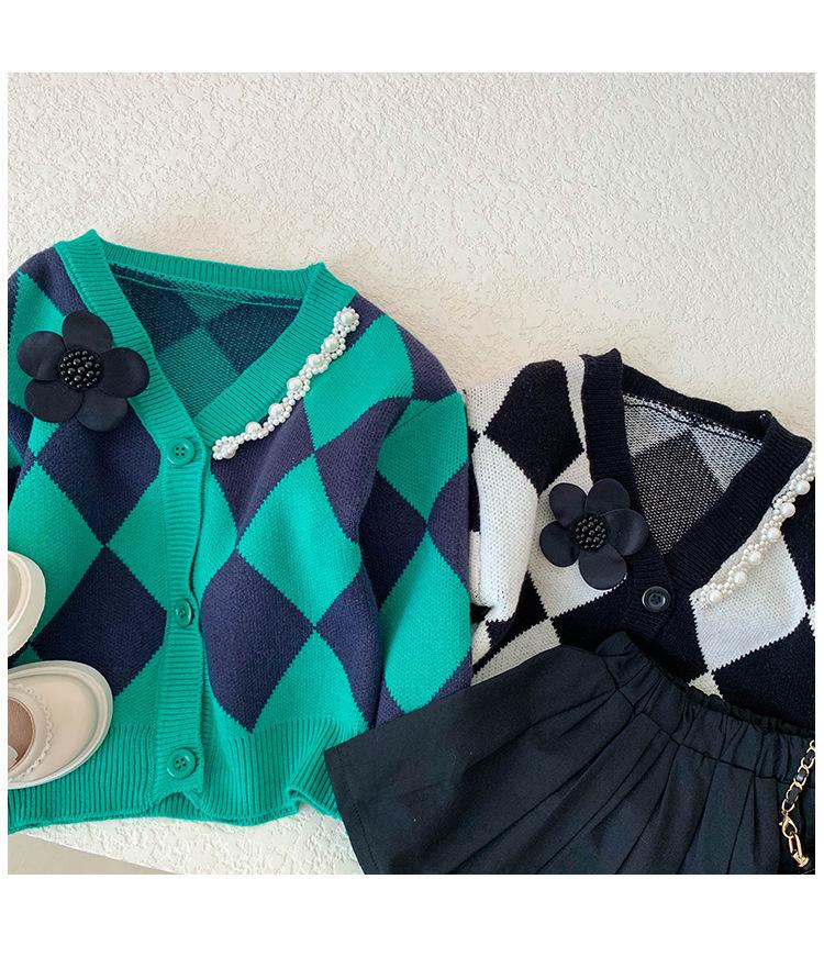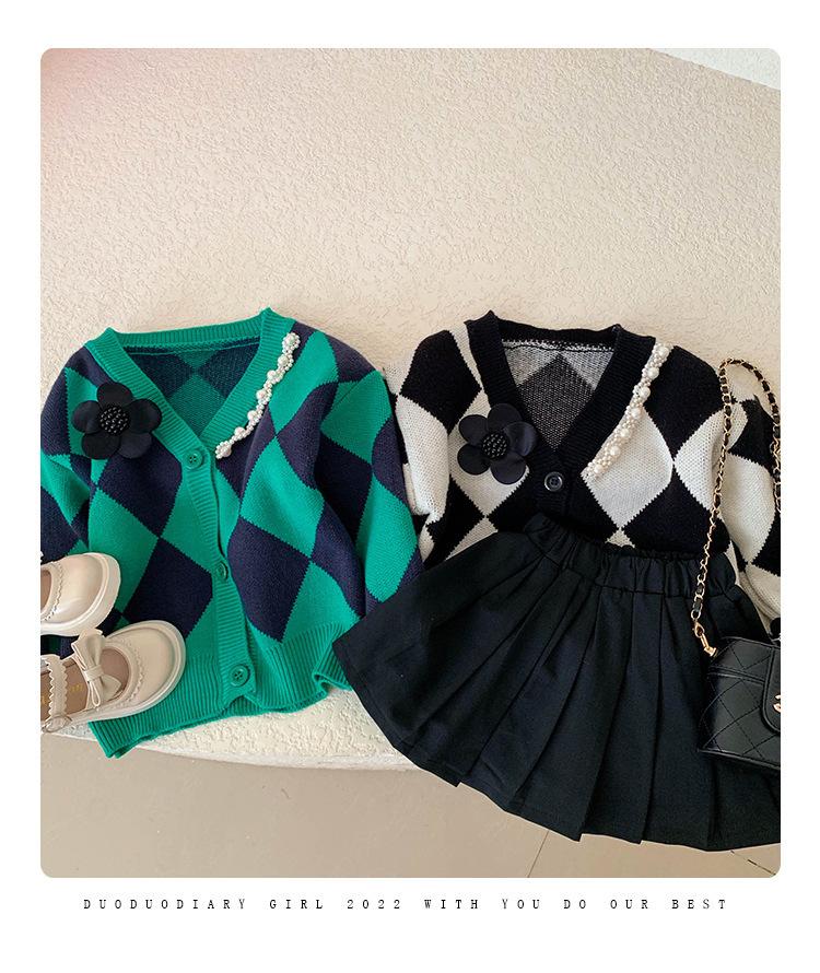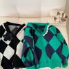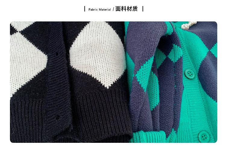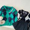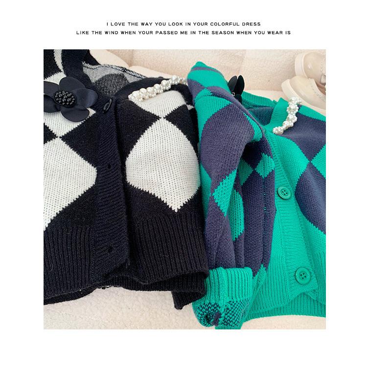Suéter cárdigan de cuadros estilo occidental para niña, abrigo de lana con rombos estilo coreano para niña, primavera 2025