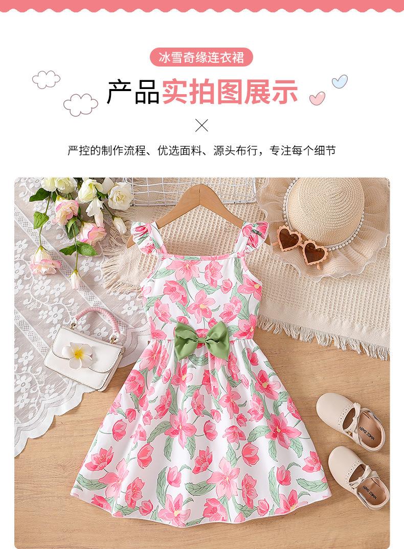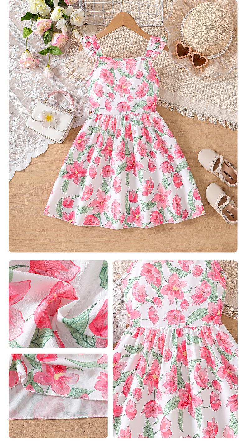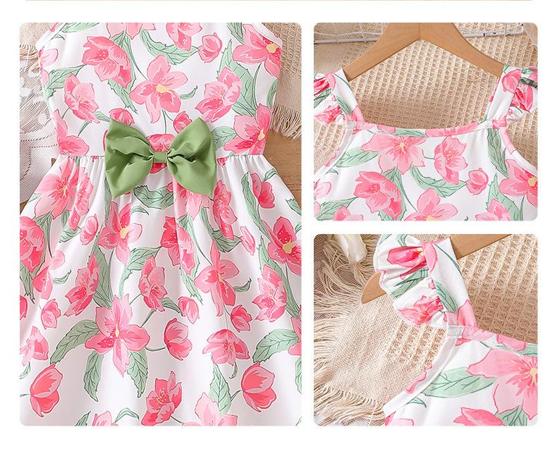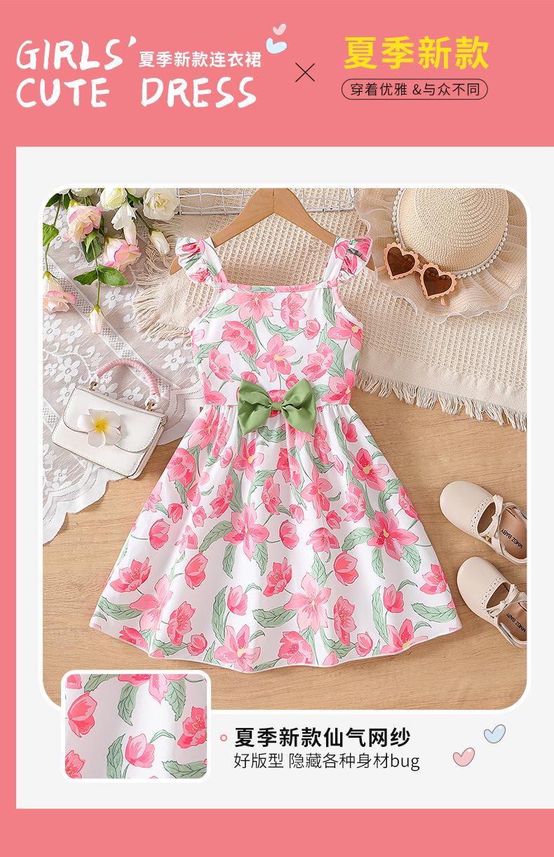 Comercio Exterior 2025 Nueva Falda de Niña Estilo Coreano Elegante con Tirantes Vestido Floral Infantil Vestido de Verano Falda de Princesa