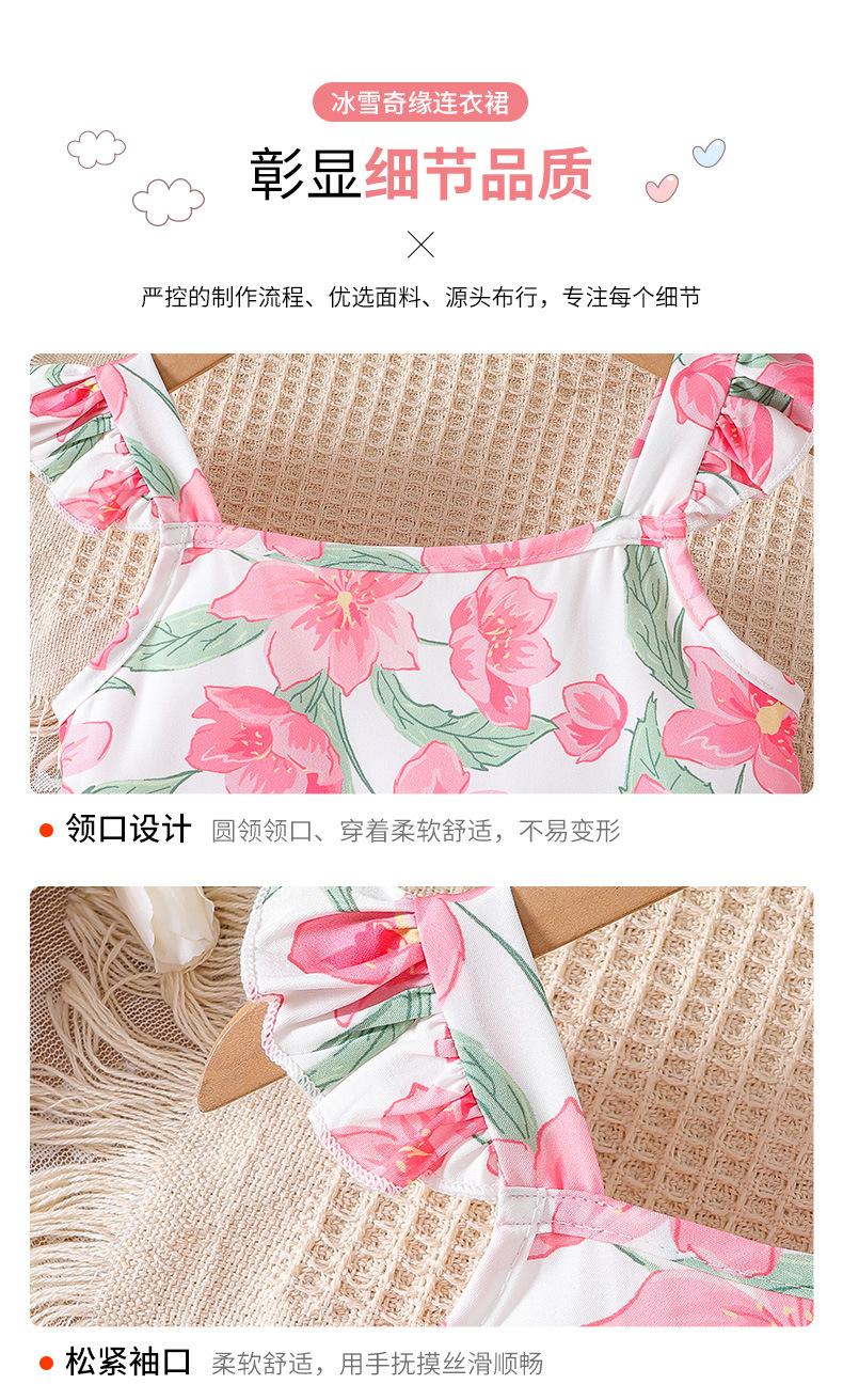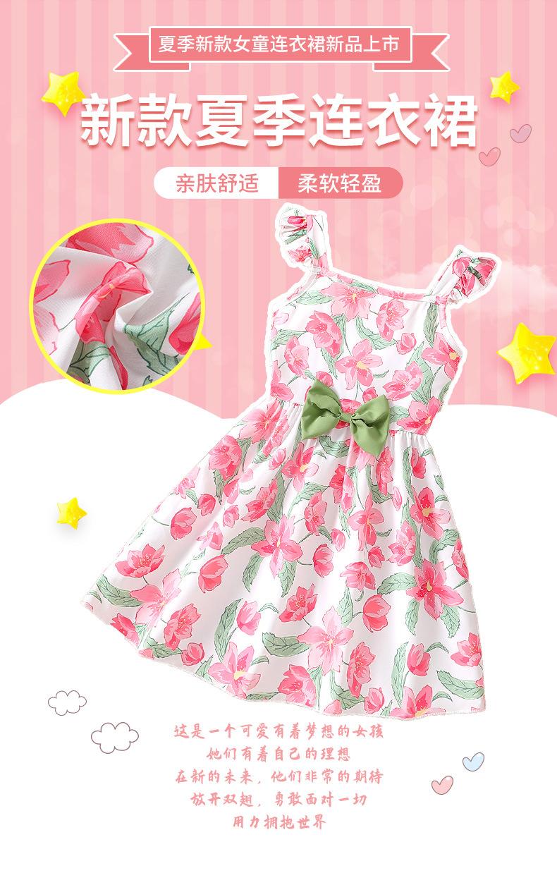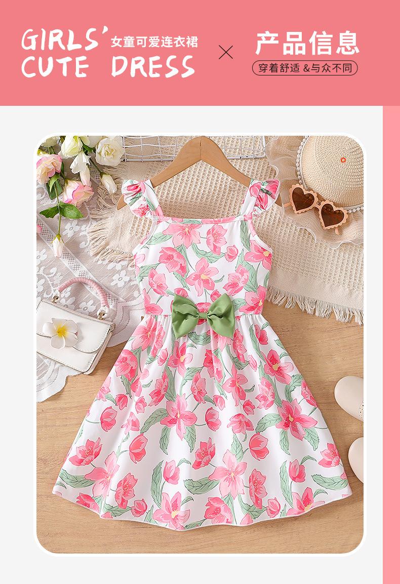 Comercio Exterior 2025 Nueva Falda de Niña Estilo Coreano Elegante con Tirantes Vestido Floral Infantil Vestido de Verano Falda de Princesa