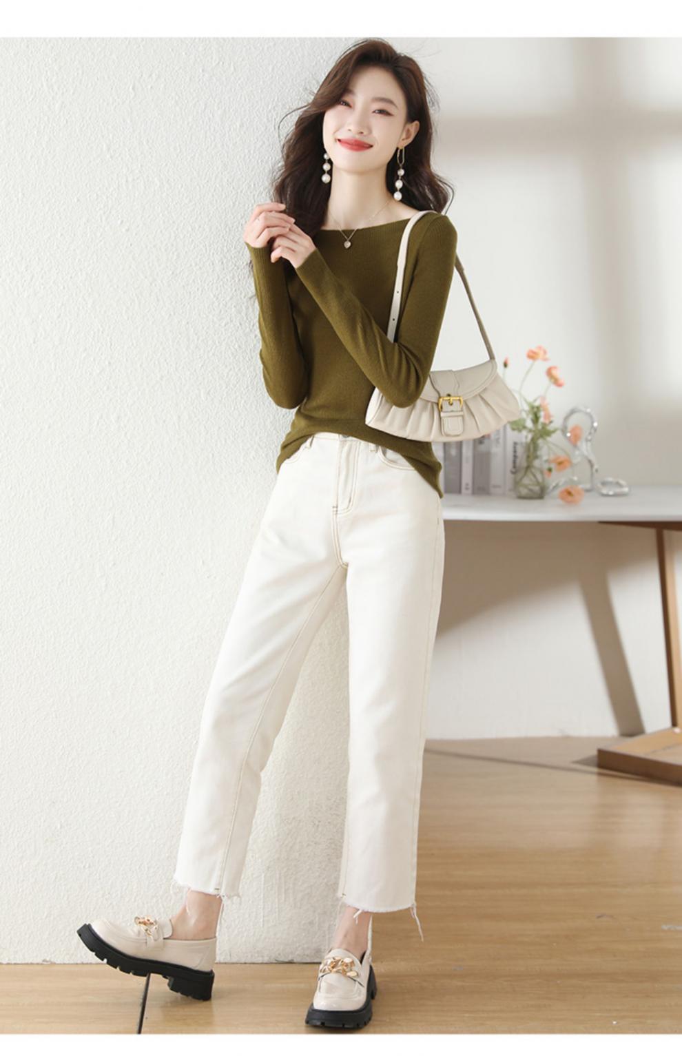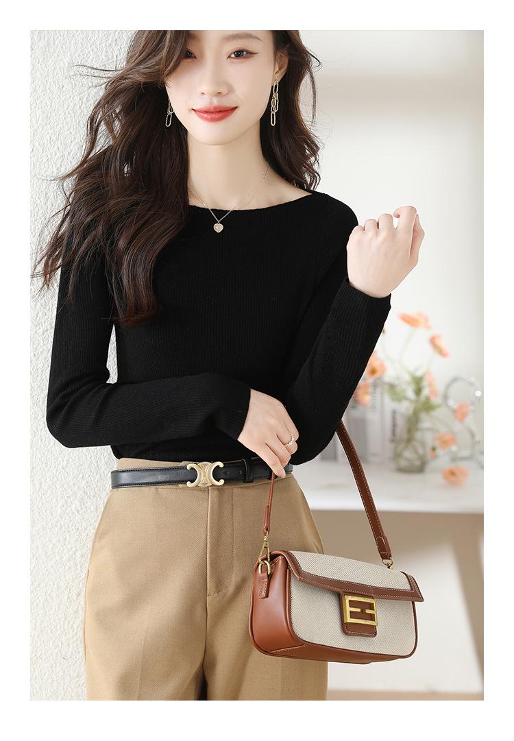 Camiseta de cuello redondo de manga larga para mujer Otoño 2024 Nueva Moda Top Interior de Moda Camisa Pequeña Moderna Camiseta de Punto para Fondo