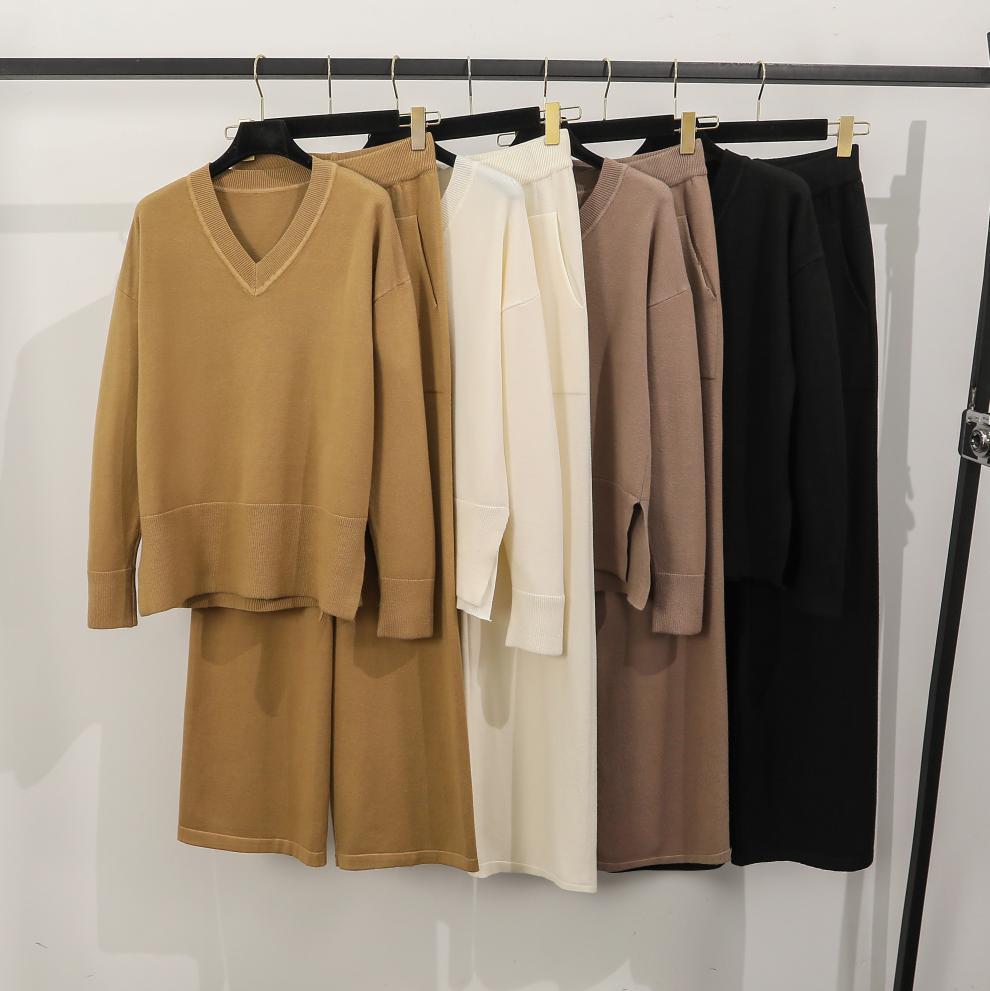 Conjunto de dos piezas de suéter holgado informal de otoño e invierno 2024 para mujer, traje de moda transfronterizo europeo y americano de Amazon.