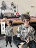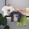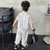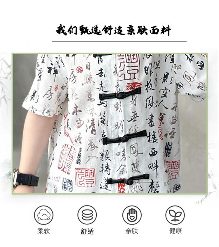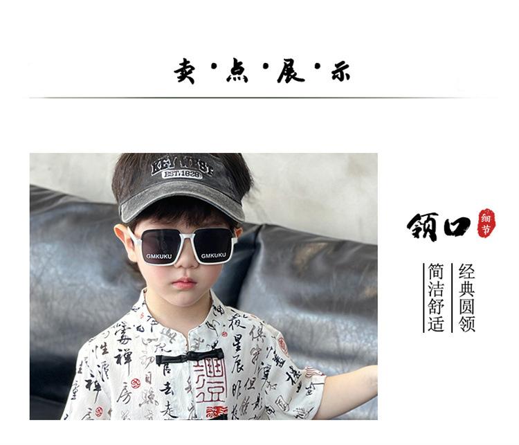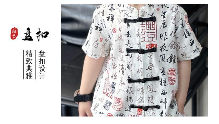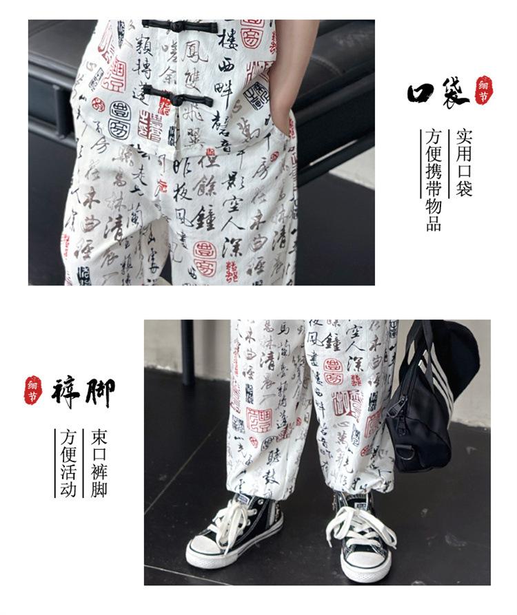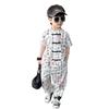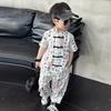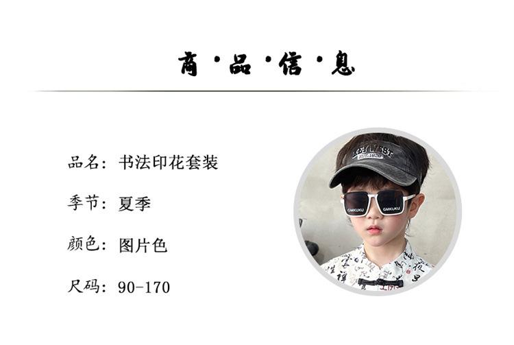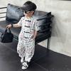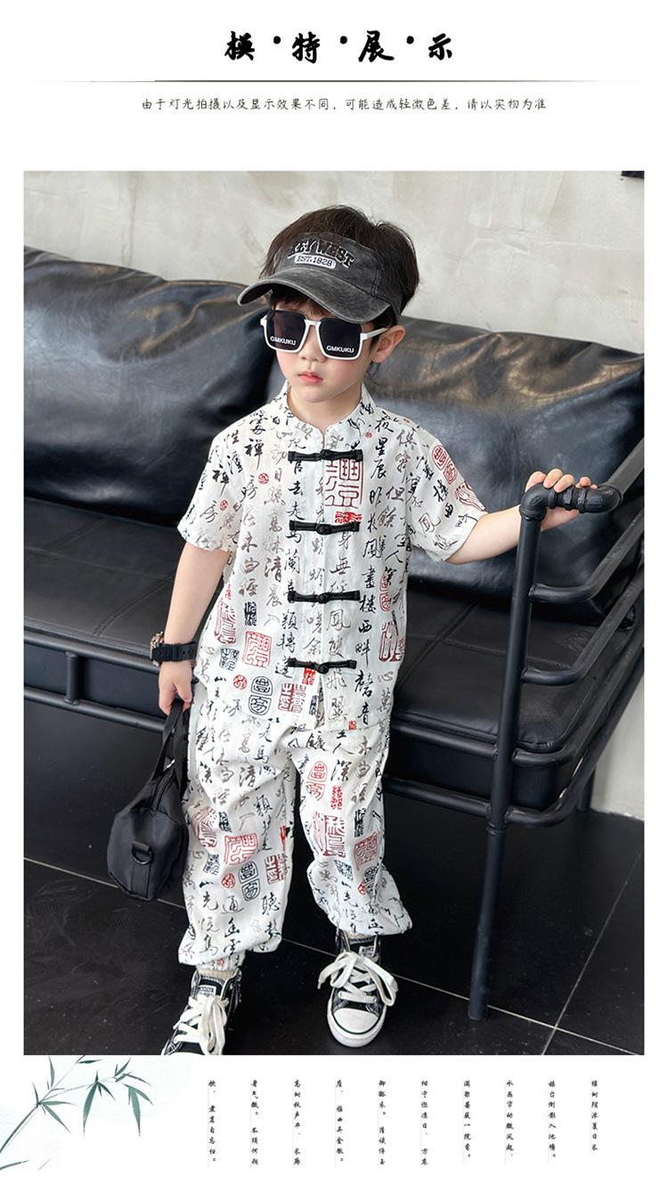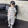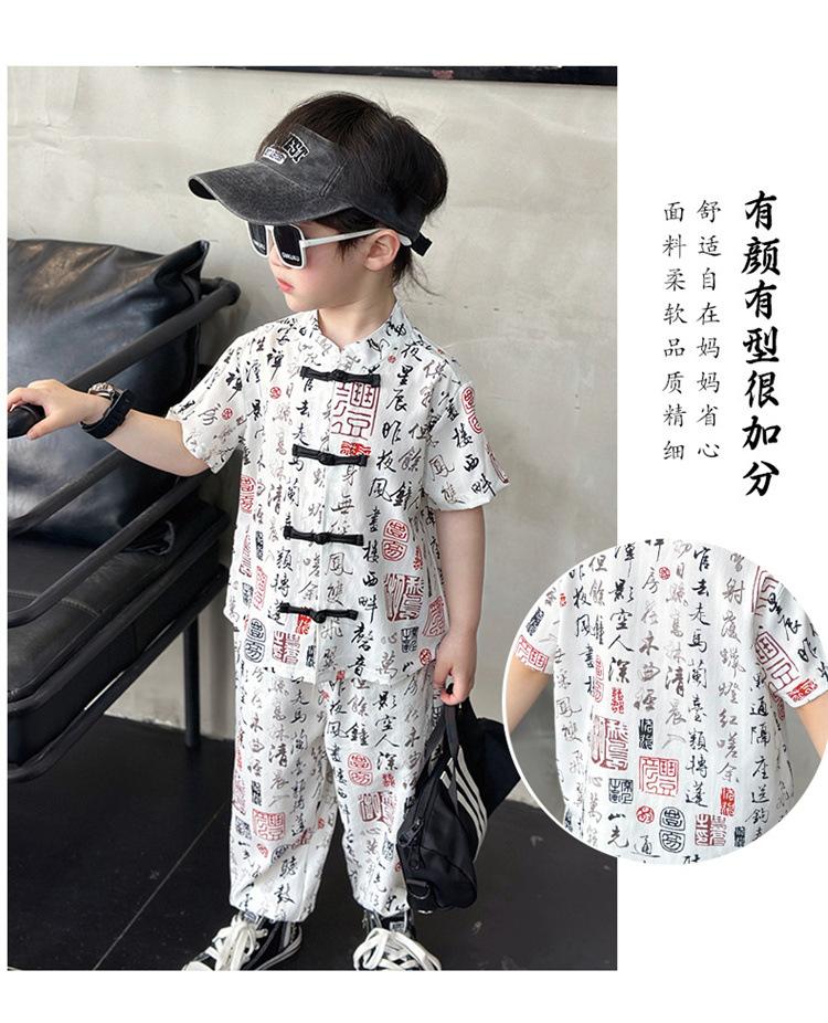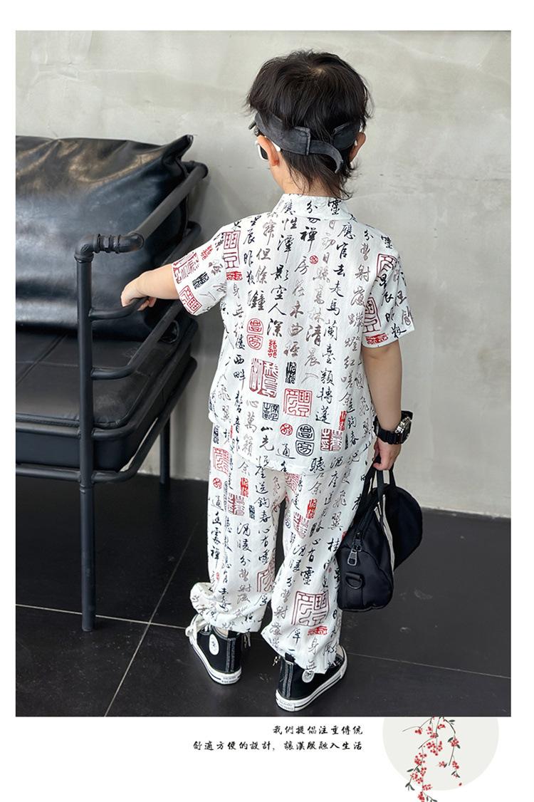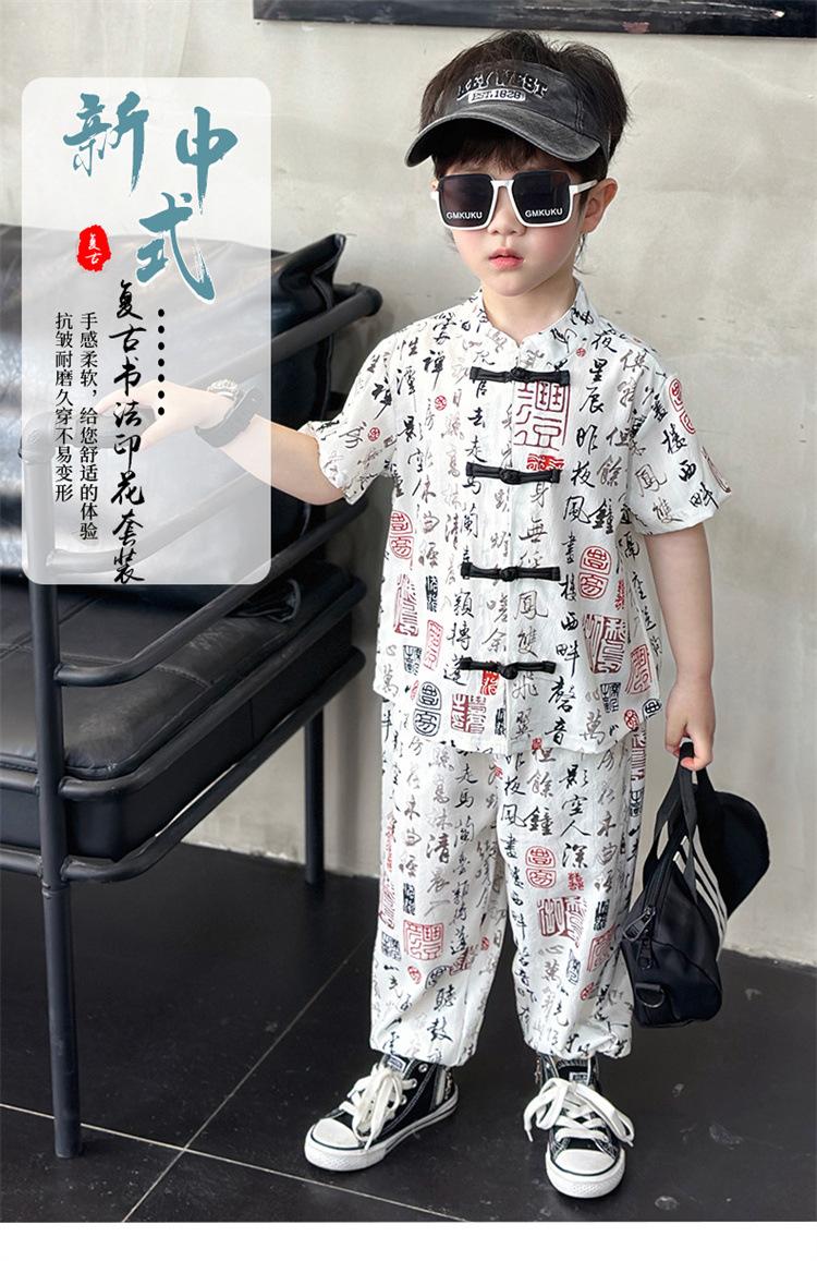 Traje de estilo nacional caligráfico para niño, verano 2025, nuevo traje de dos piezas fino de manga corta para niño.