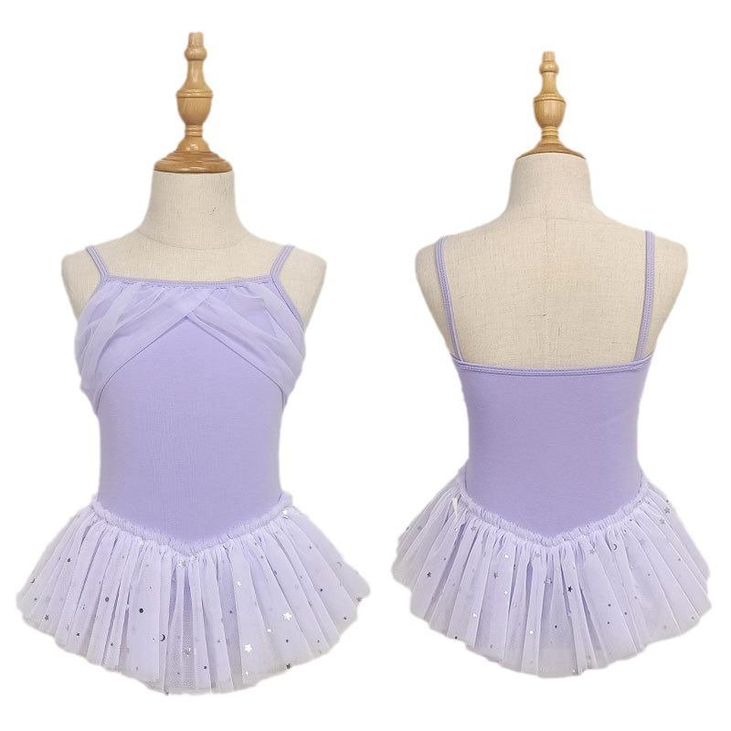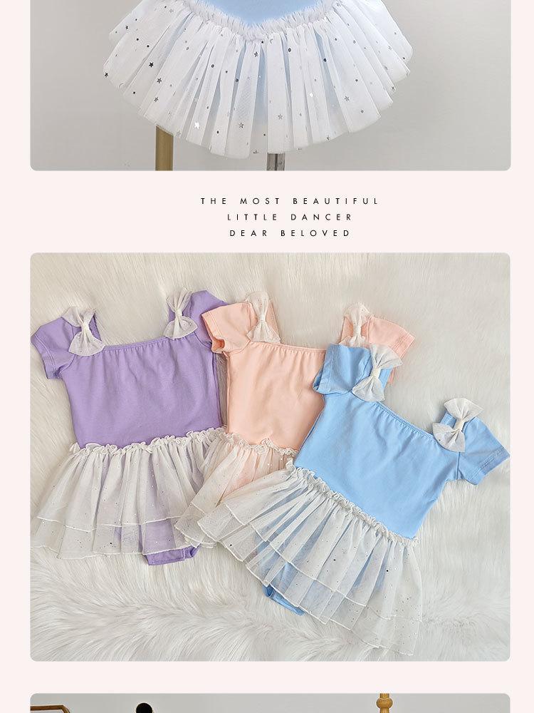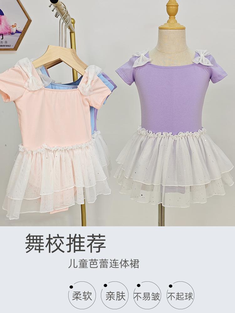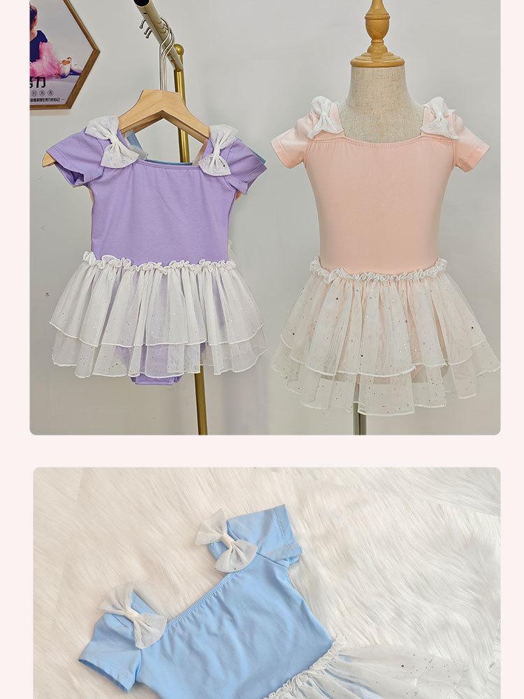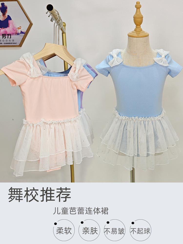 Vestido de ballet de baile para niñas, con encaje, lentejuelas, malla y lazo, traje de práctica de verano, vestido de baile de manga corta