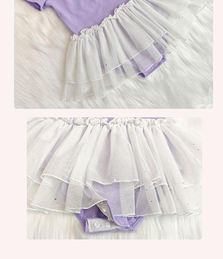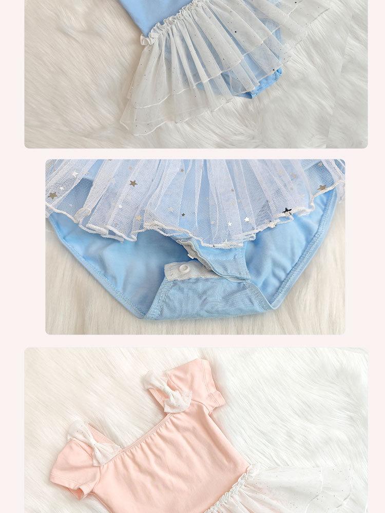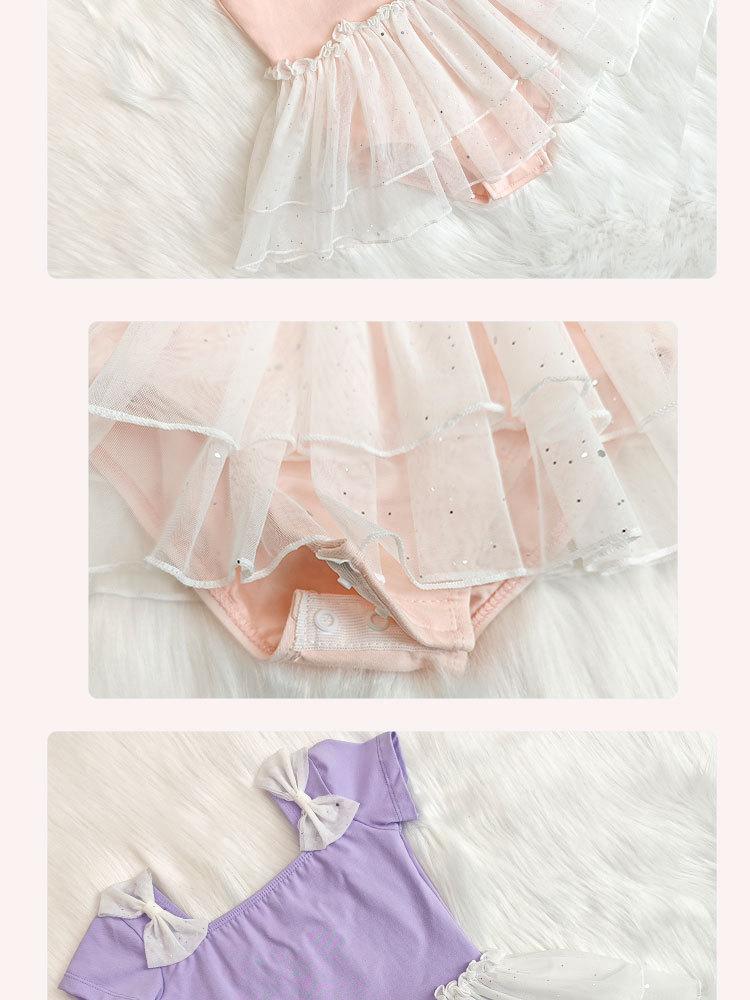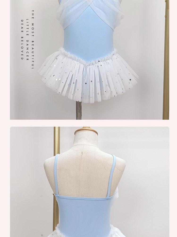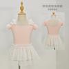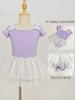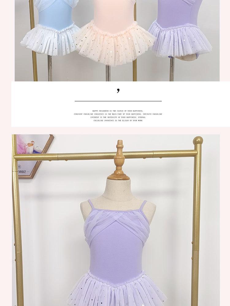 Vestido de ballet de baile para niñas, con encaje, lentejuelas, malla y lazo, traje de práctica de verano, vestido de baile de manga corta