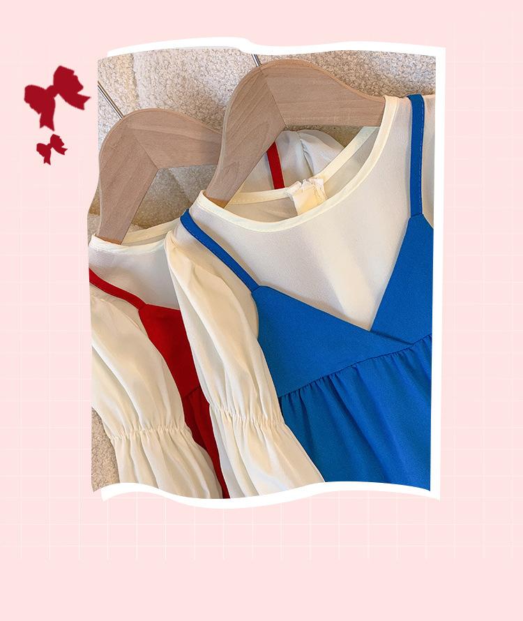 A-line skirt (blue), A-line skirt (red), 0212 black solid color model