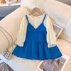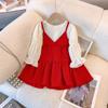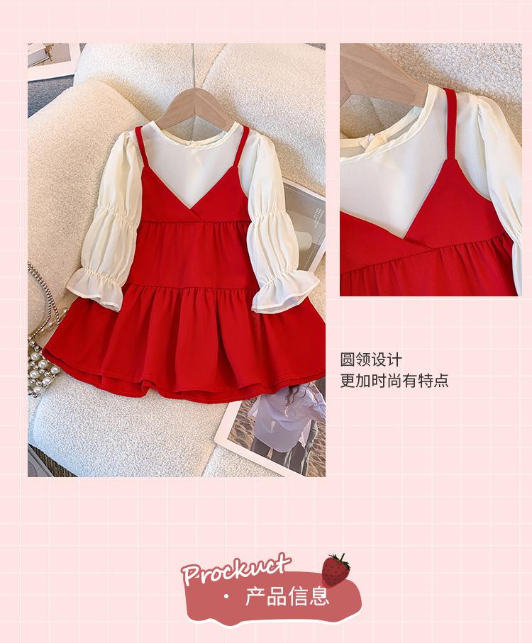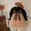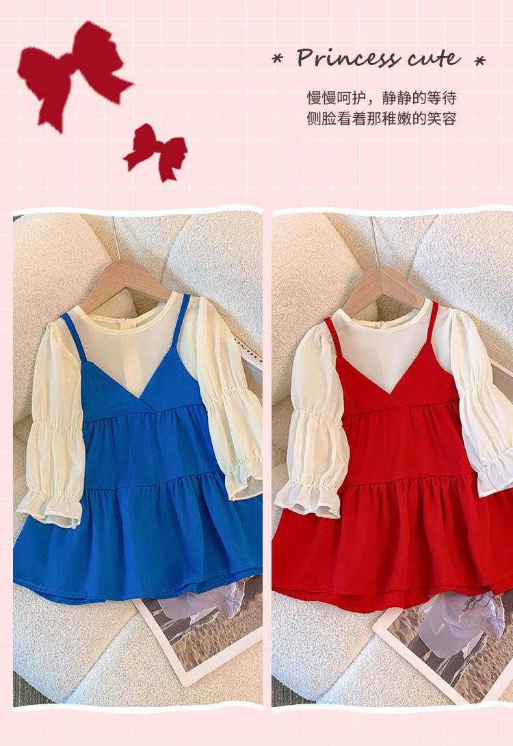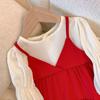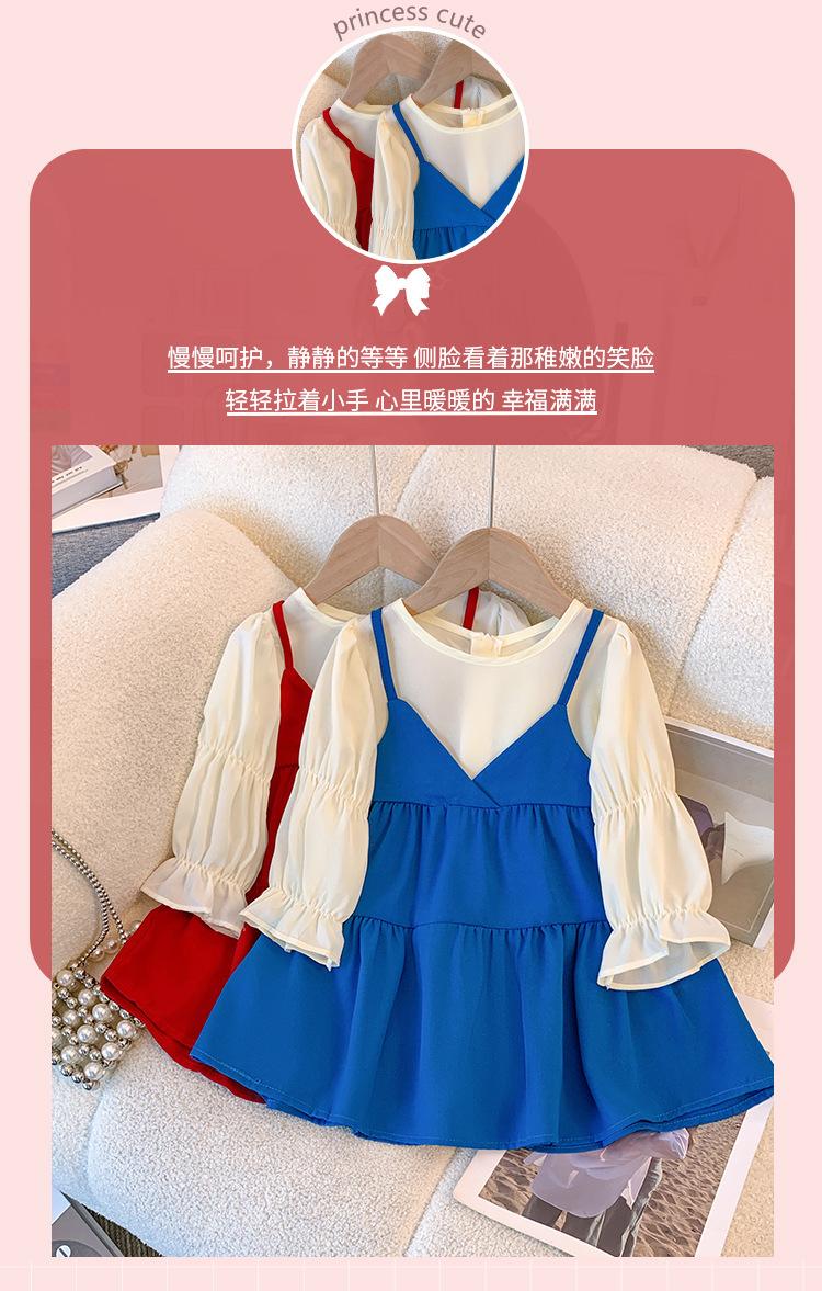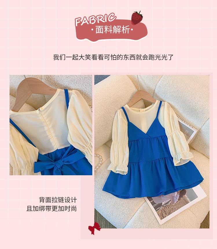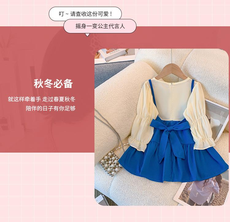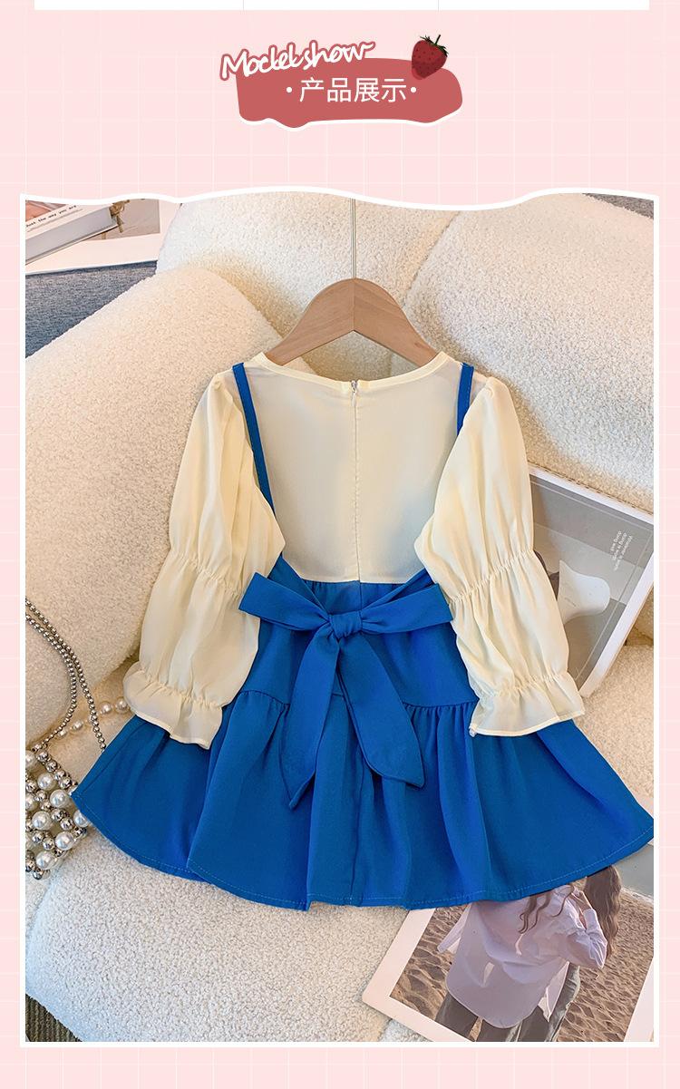 Ropa Infantil para Niñas 2025 Primavera y Otoño Nuevo Vestido de Manga Larga Falso de Dos Piezas Estilo Coreano Moderno Vestido Línea A