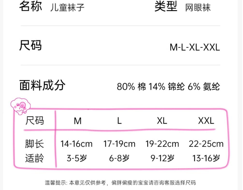 Recommended foot length for 3-5 years old is 13-15cm [shoe size 19-25] [class a xinjiang combed cotton]