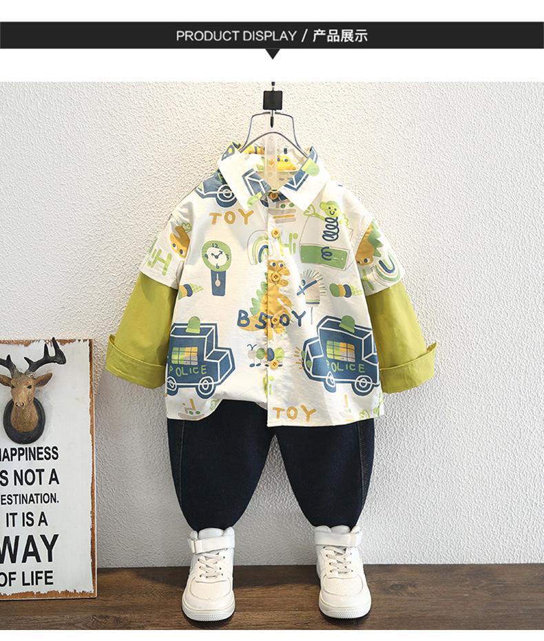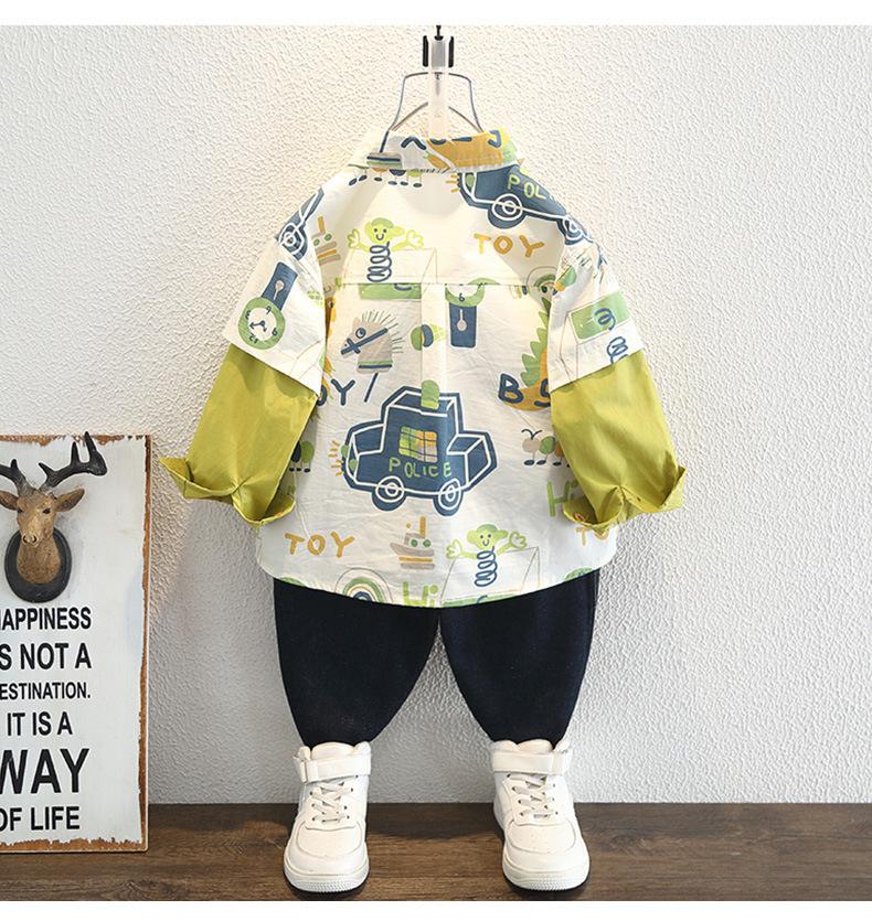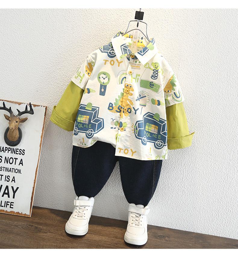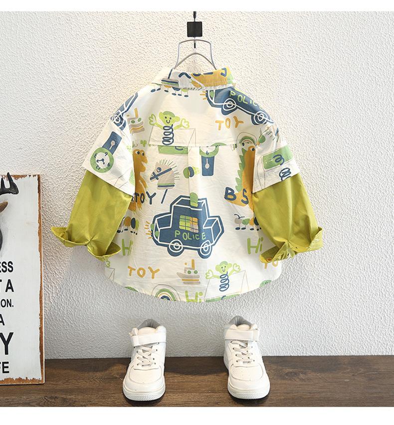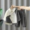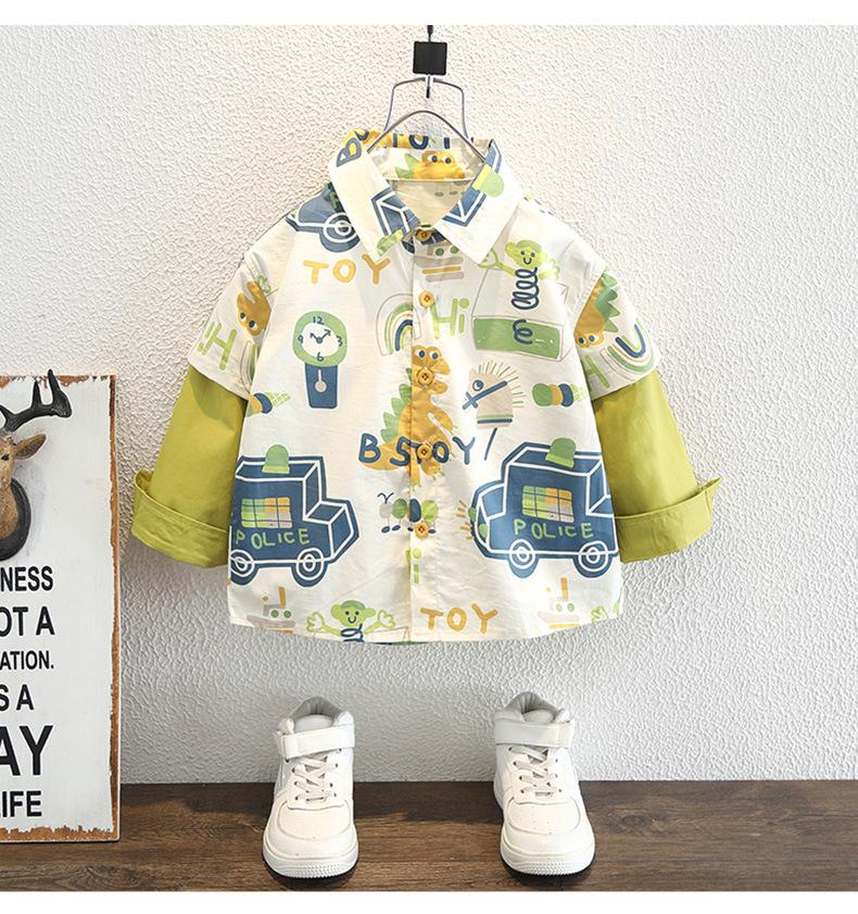 Camisa para niño primavera y otoño 2025, nueva ropa de primavera para niños, top falso de dos piezas, camisa para bebé guapo.