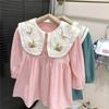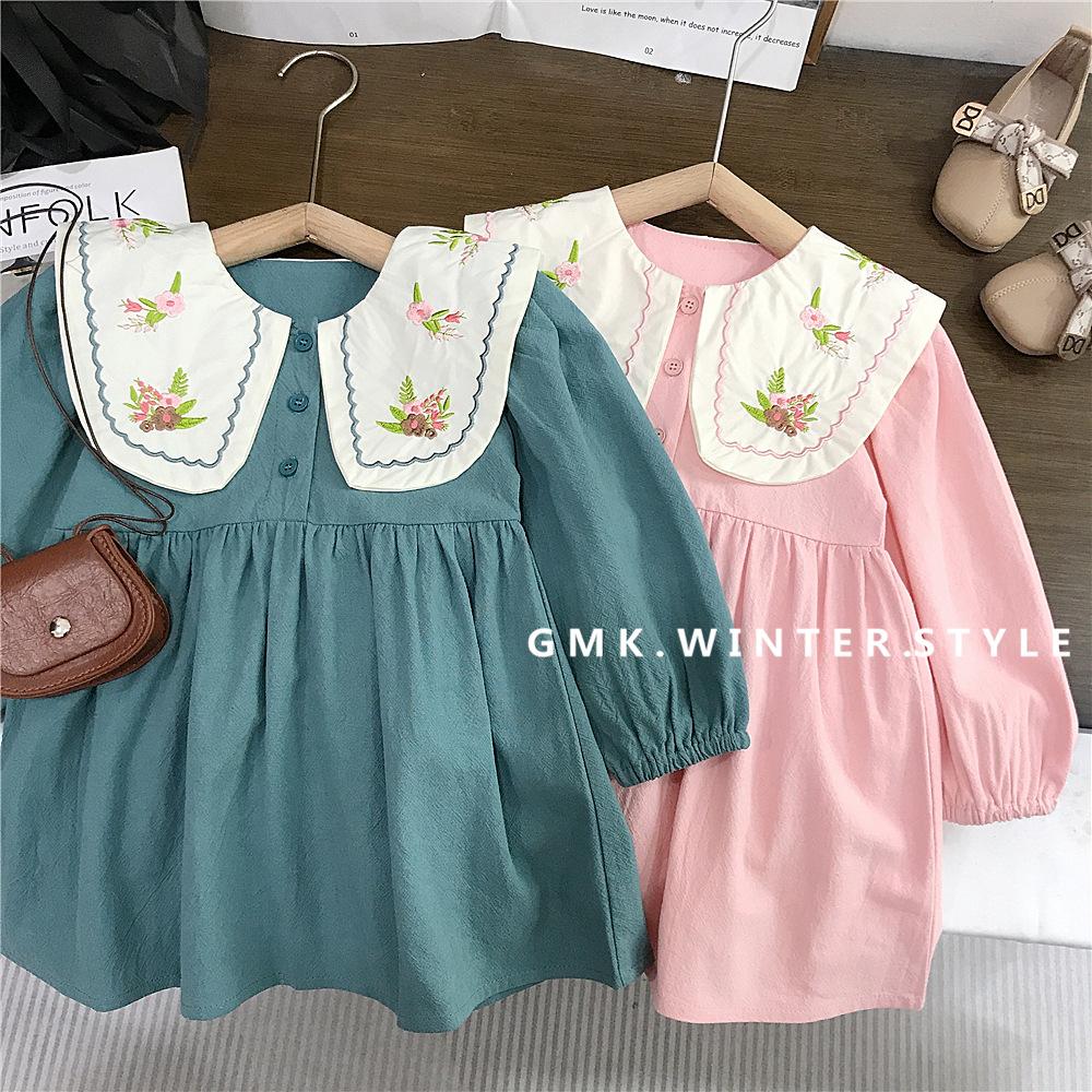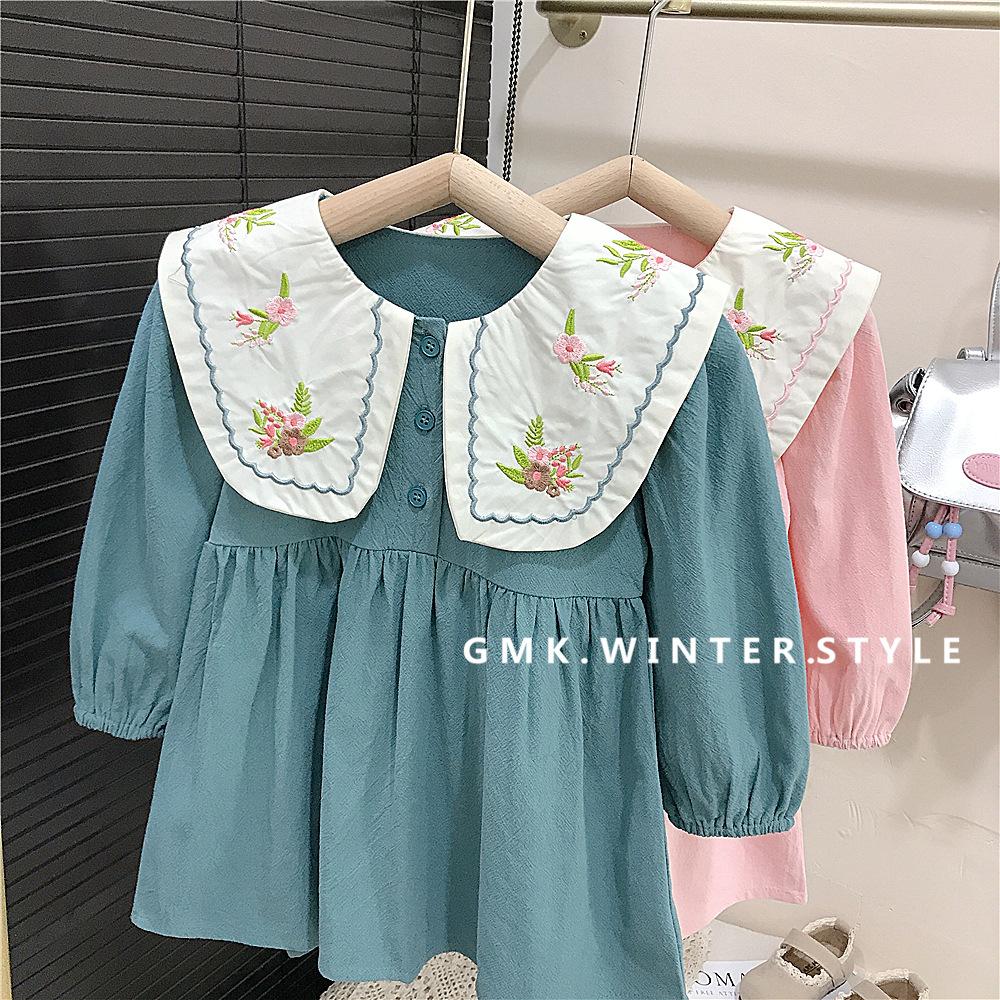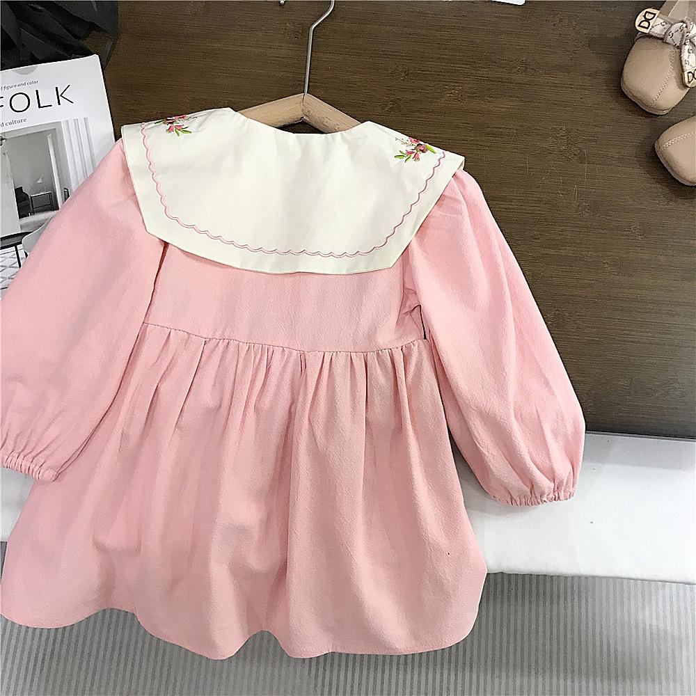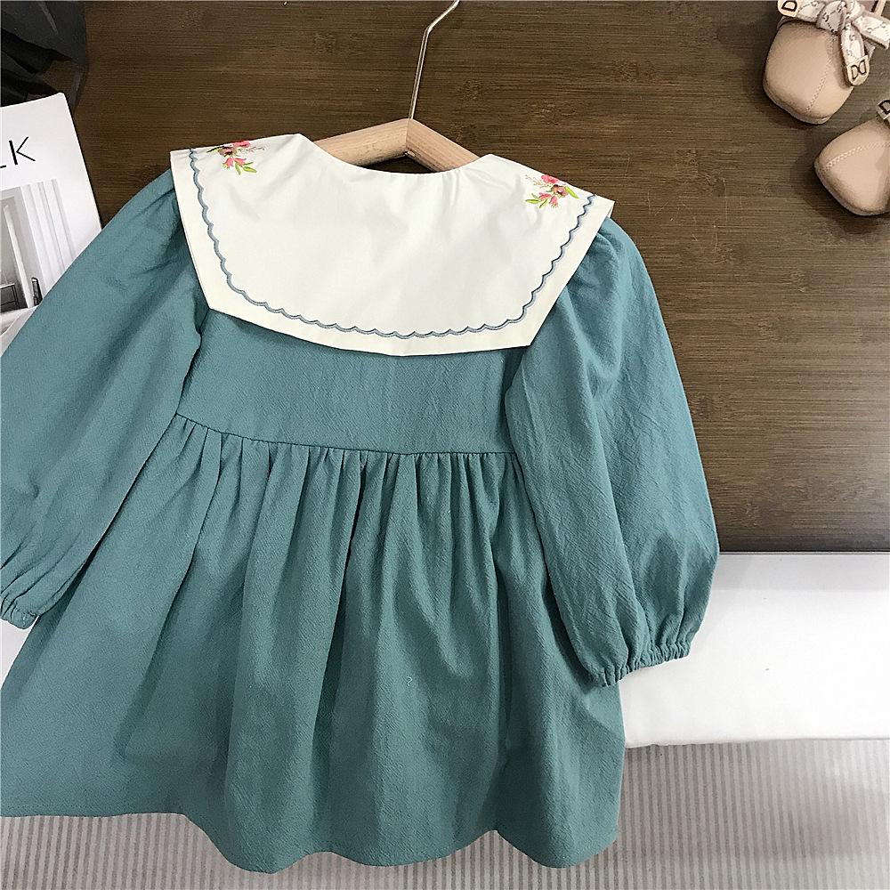 Vestido de niña primavera nuevo bebé azul marino cuello bordado algodón vestido niñas dulce manga larga princesa vestido comercio exterior