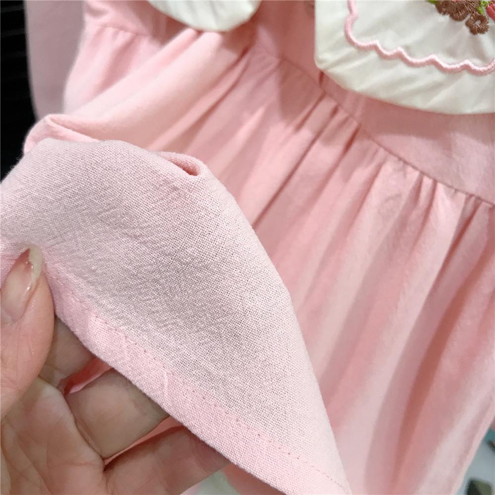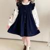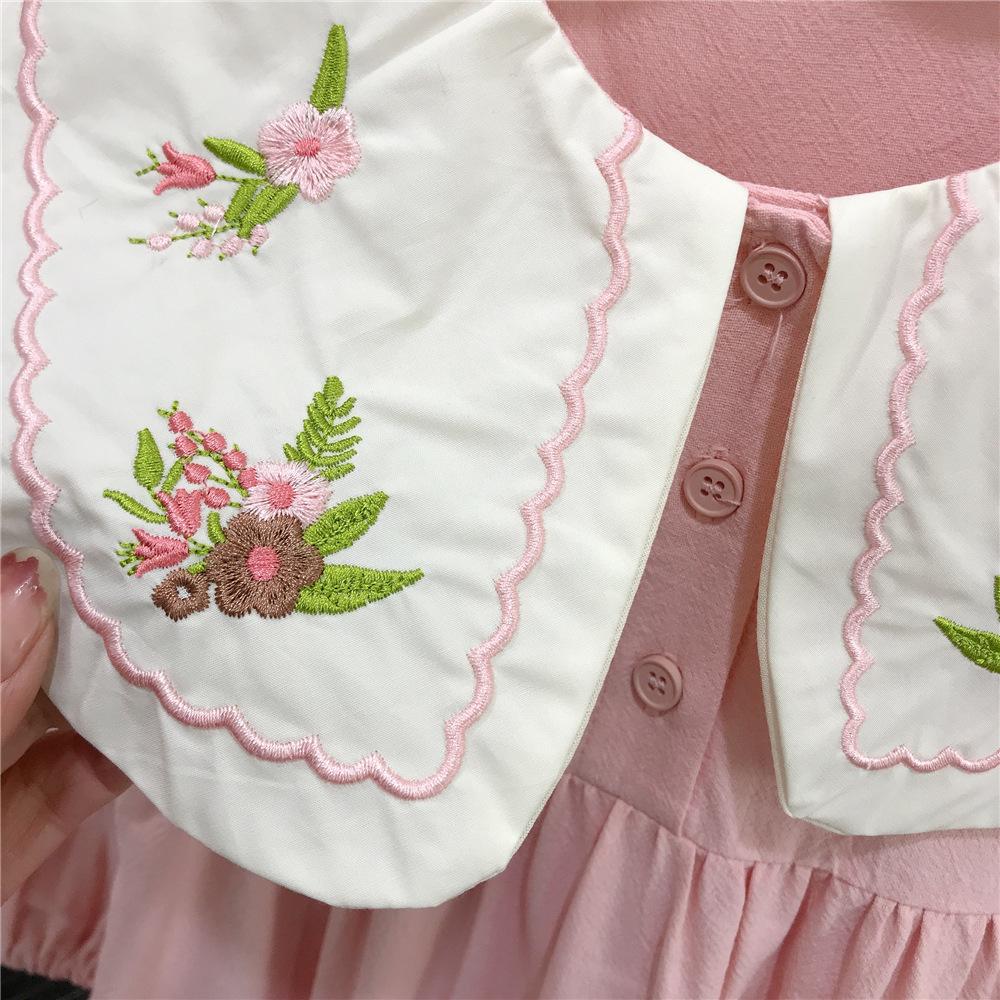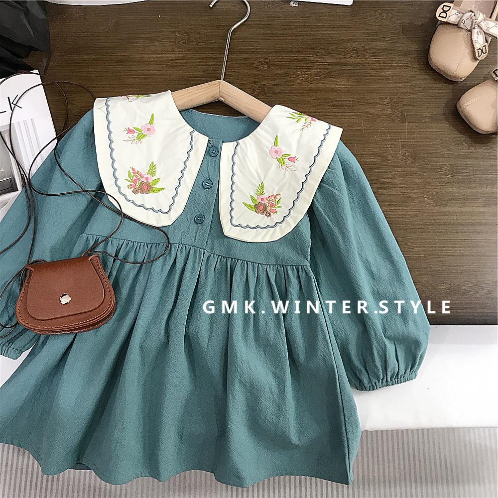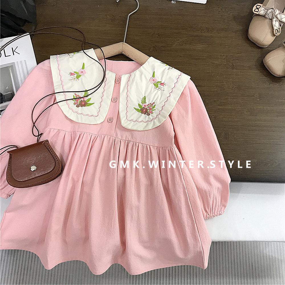 Vestido de niña primavera nuevo bebé azul marino cuello bordado algodón vestido niñas dulce manga larga princesa vestido comercio exterior