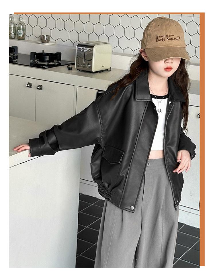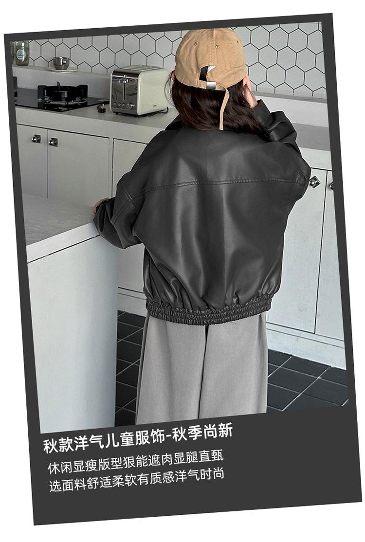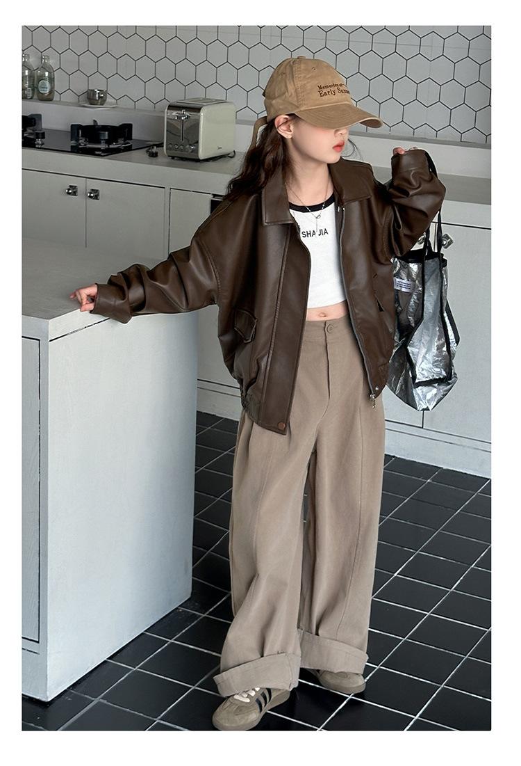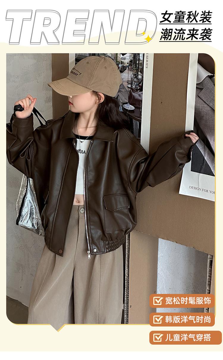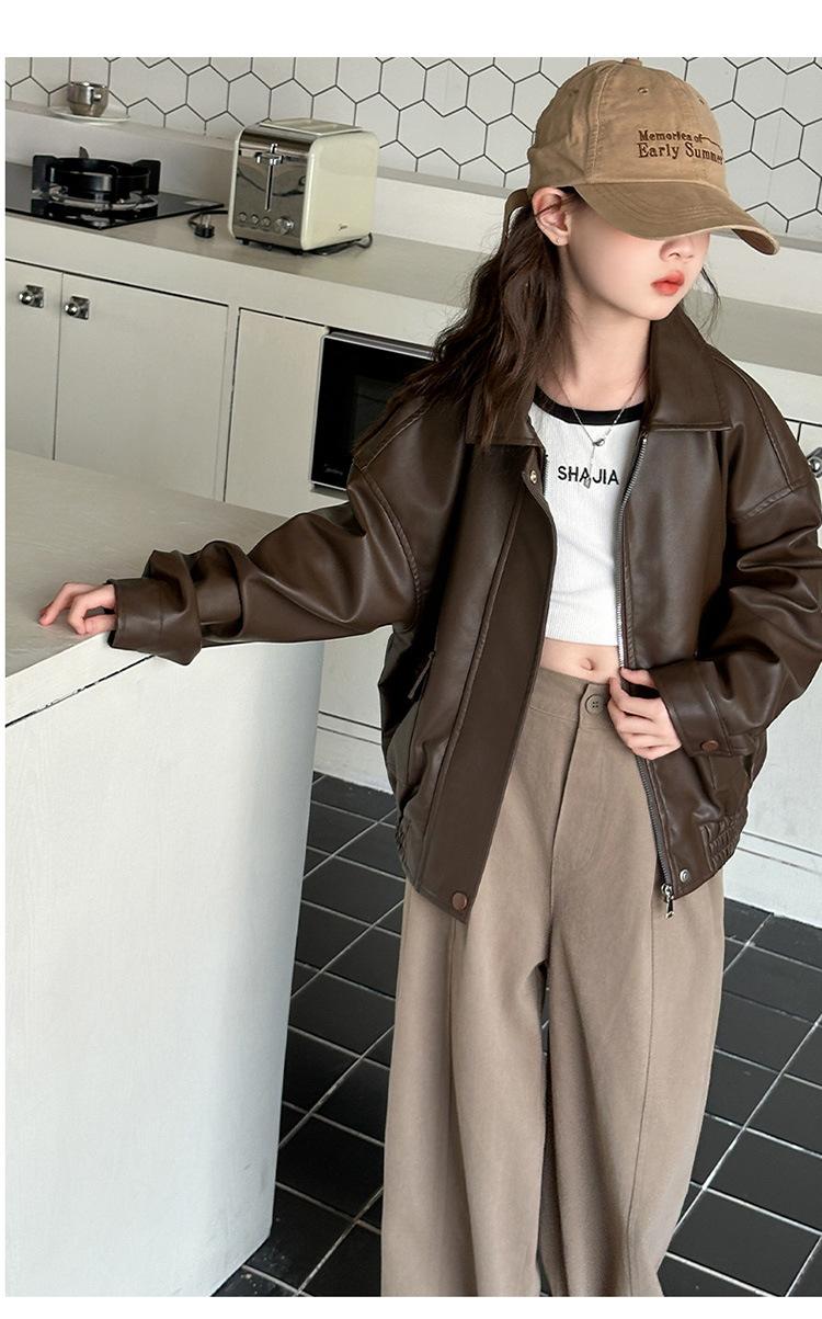 Casaco para meninas primavera e outono 2025 Novo estilo Jaqueta estilo ocidental Top para meninas Roupas de couro para crianças na moda no outono Estilo europeu e americano