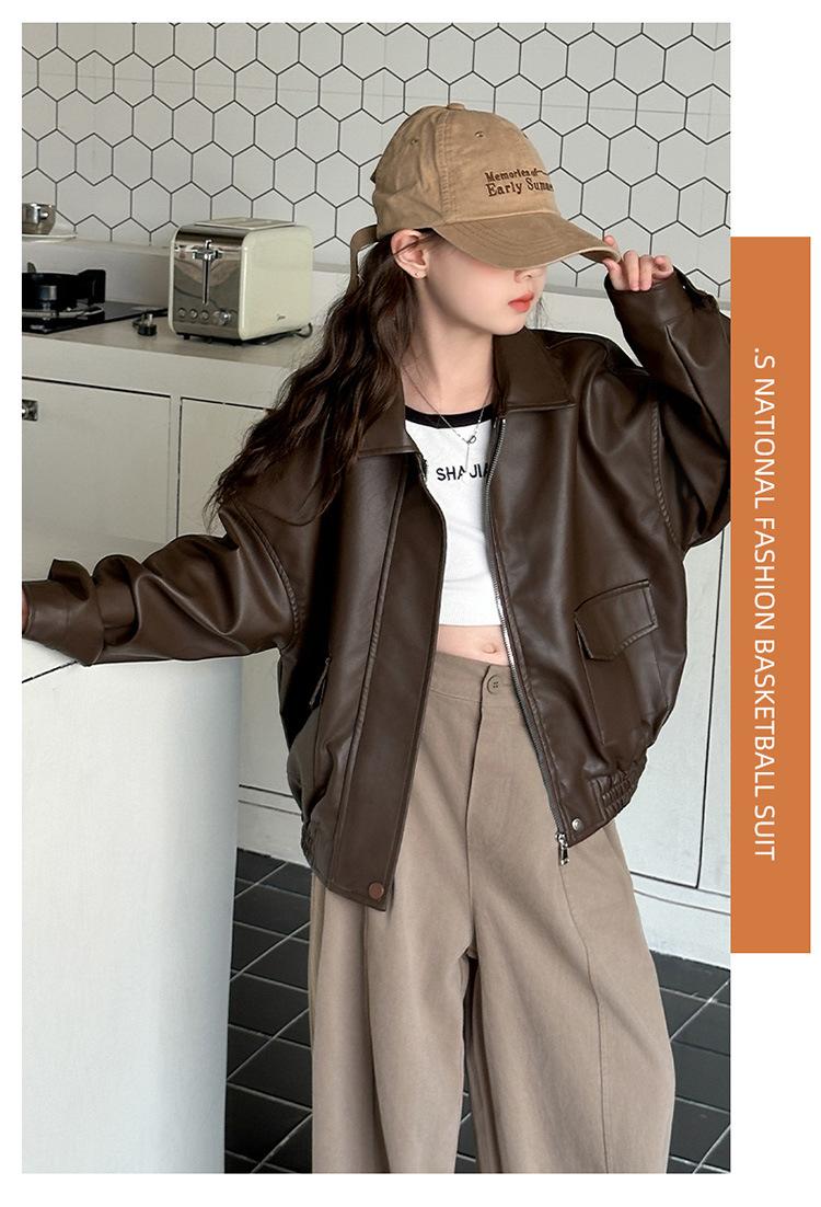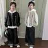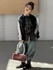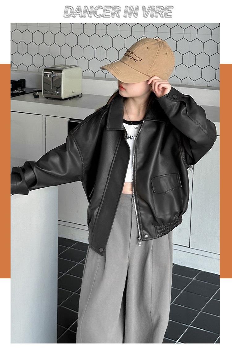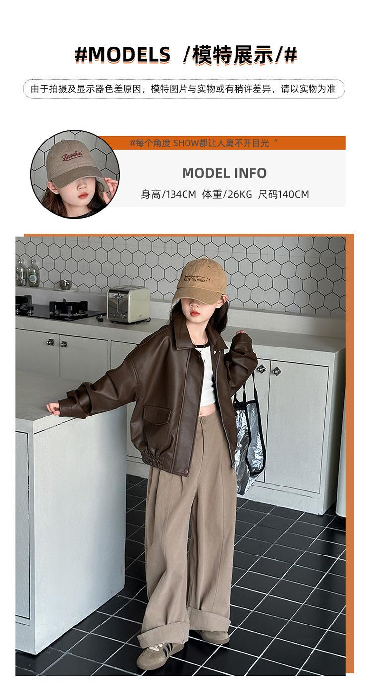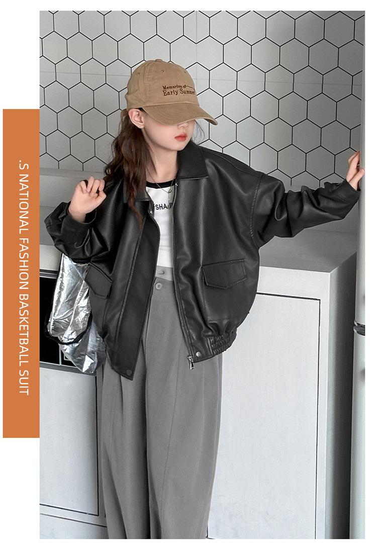 Casaco para meninas primavera e outono 2025 Novo estilo Jaqueta estilo ocidental Top para meninas Roupas de couro para crianças na moda no outono Estilo europeu e americano