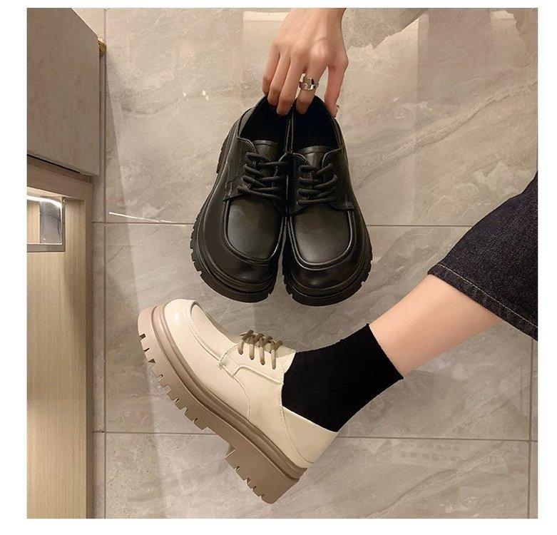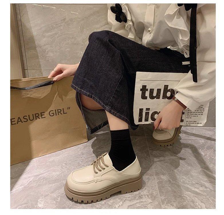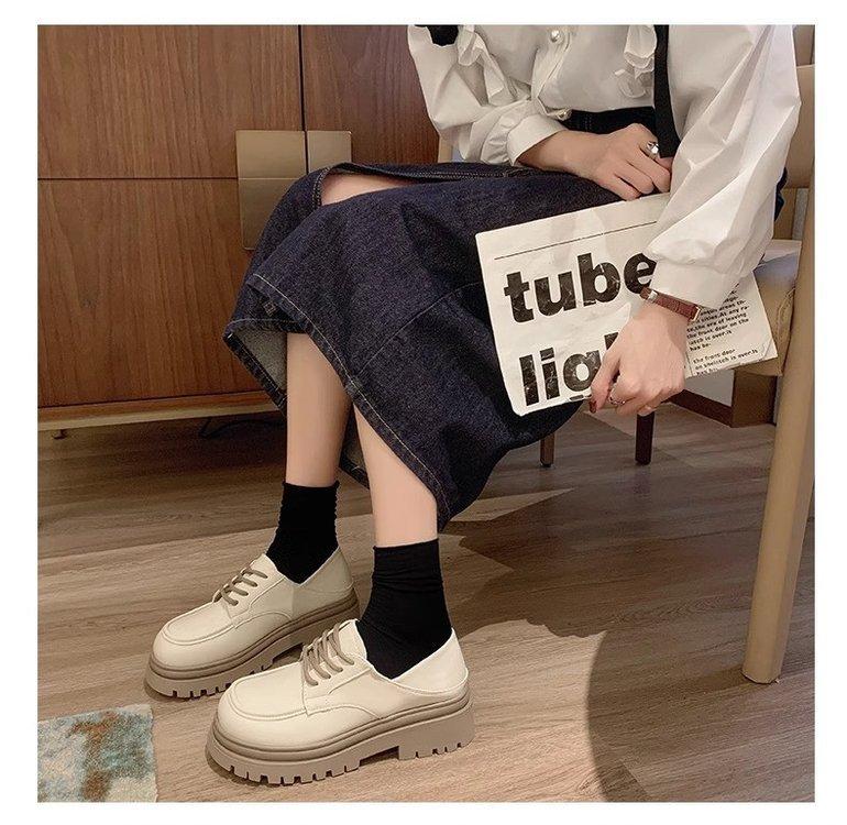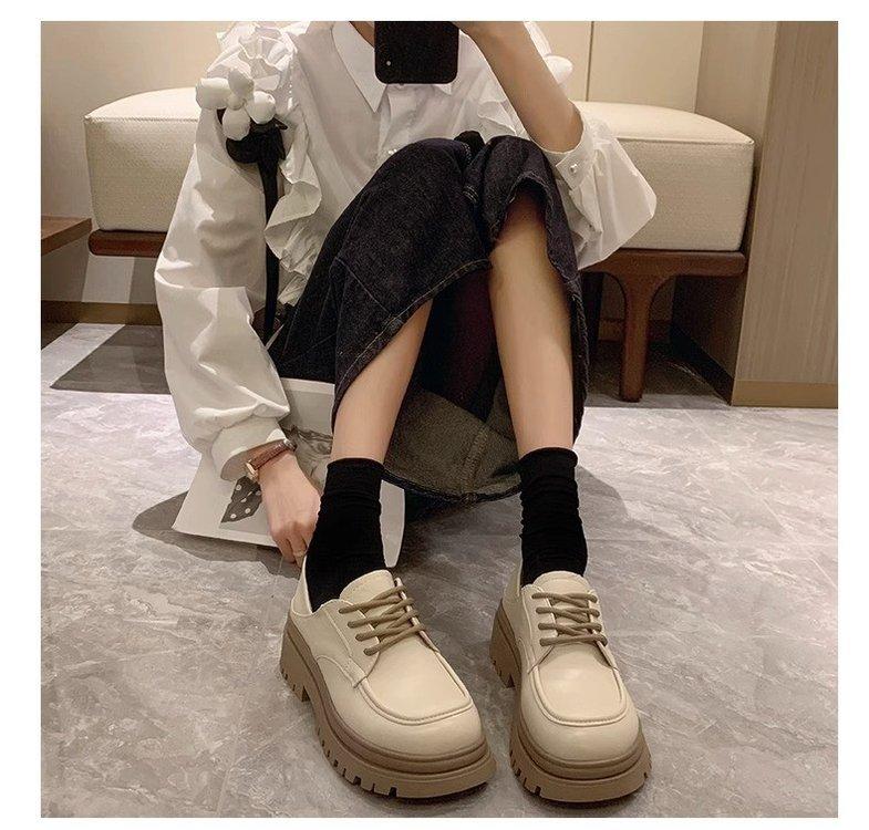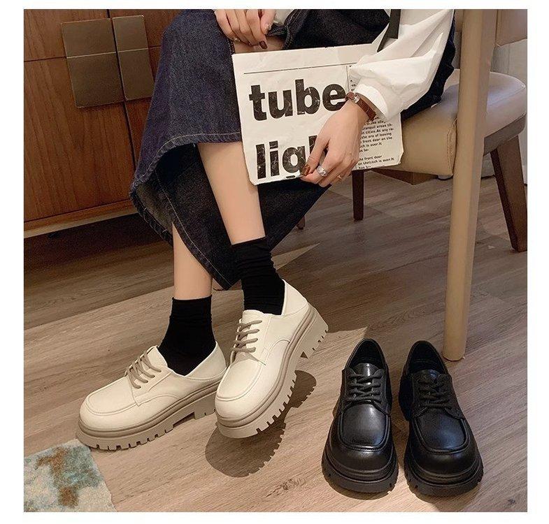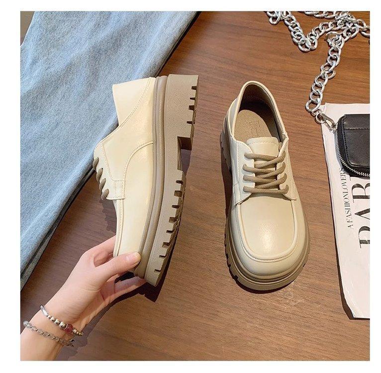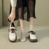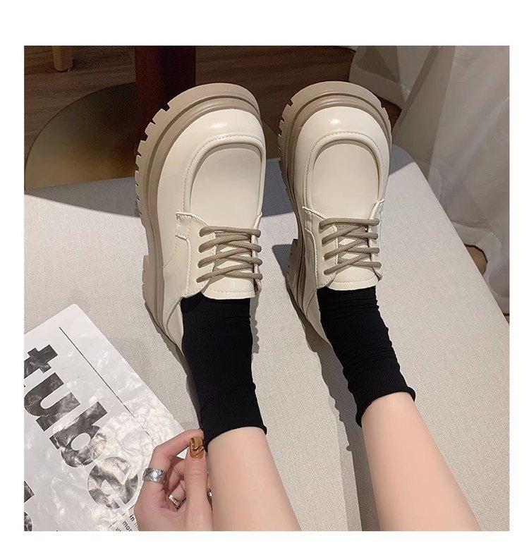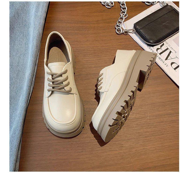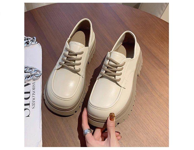 Zapatos de Plataforma Blanca Plataforma de Cuero para Mujer 2025 Primavera Nuevo Estilo Retro Británico Combinan con Todo Altura Baja Aumentan la Altura Zapatos de Una Capa