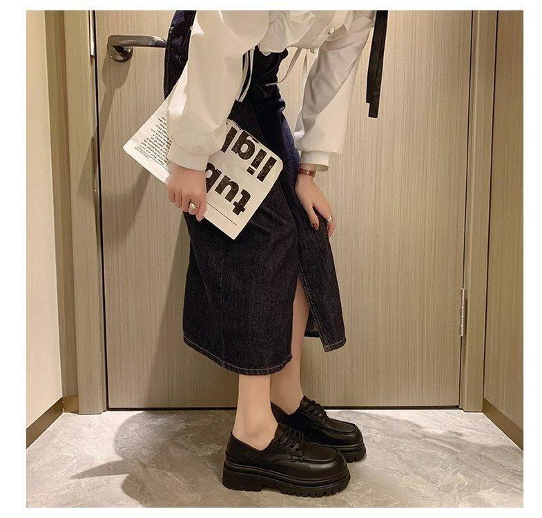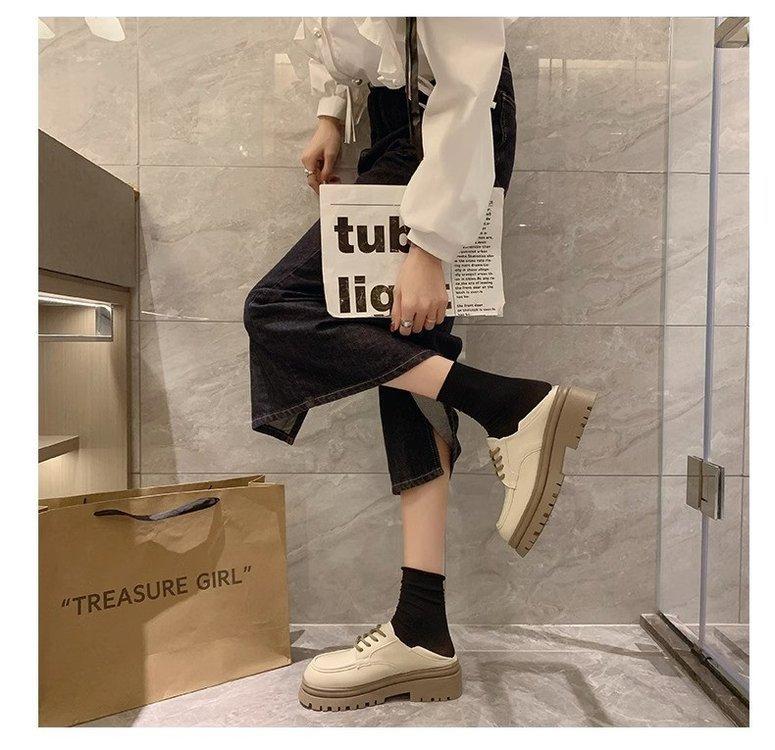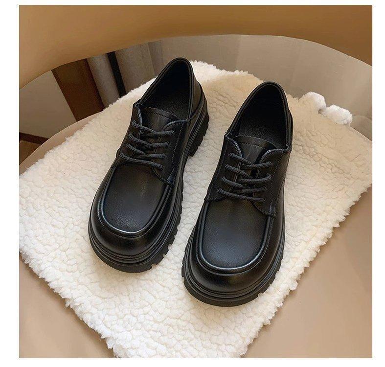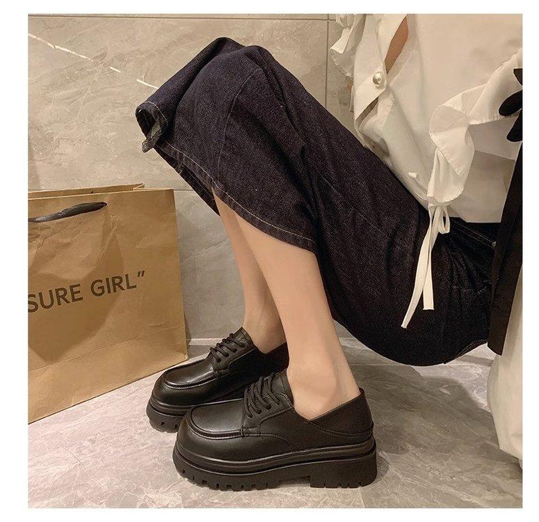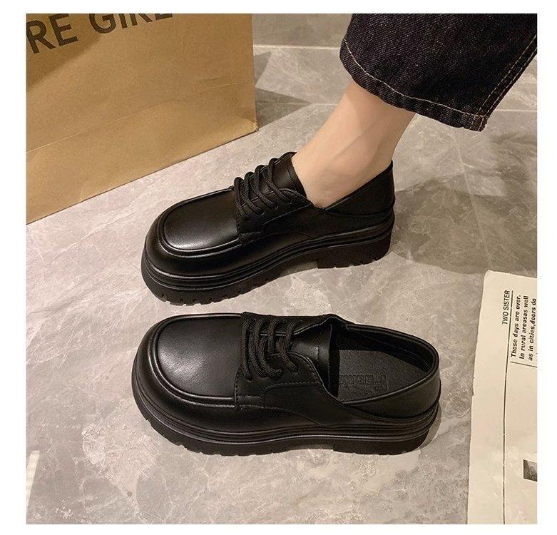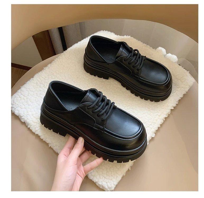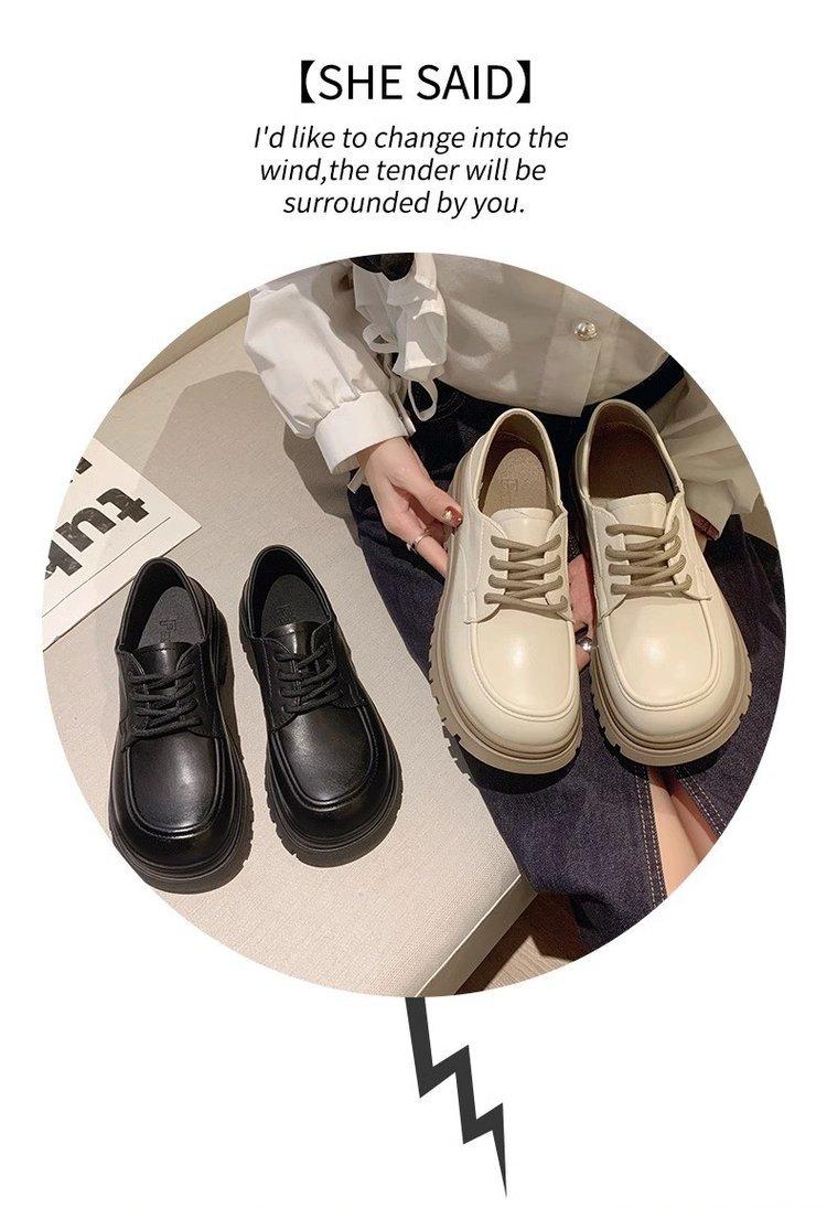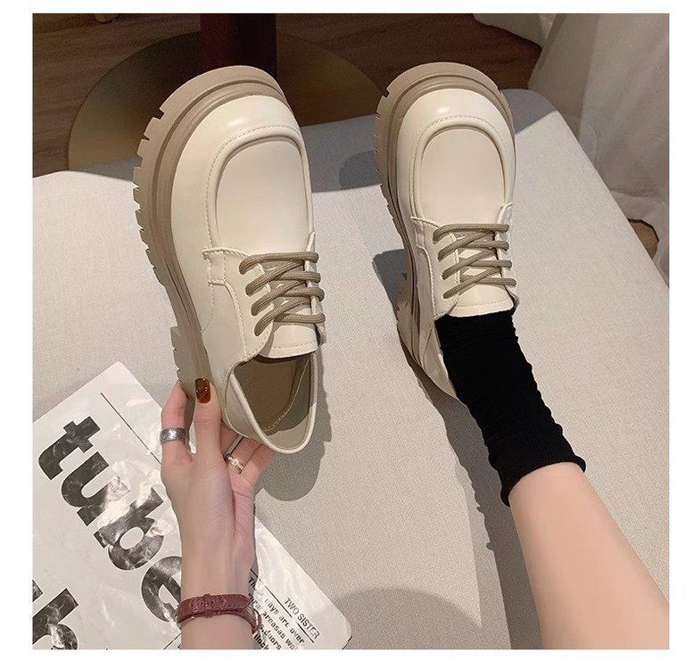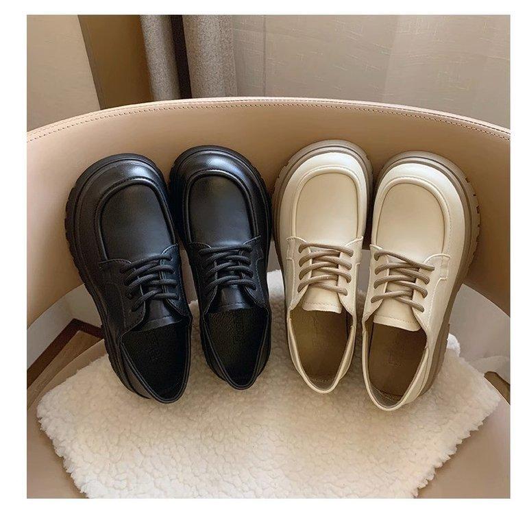 Zapatos de Plataforma Blanca Plataforma de Cuero para Mujer 2025 Primavera Nuevo Estilo Retro Británico Combinan con Todo Altura Baja Aumentan la Altura Zapatos de Una Capa