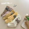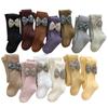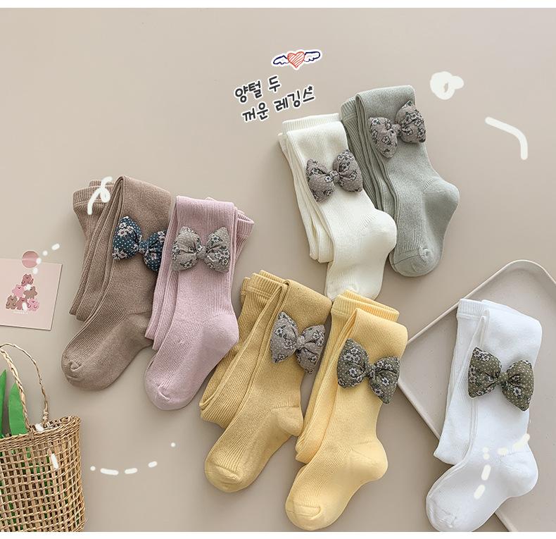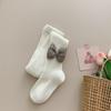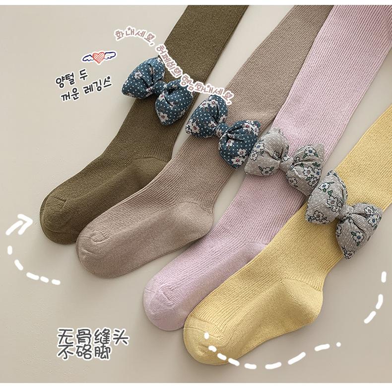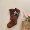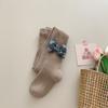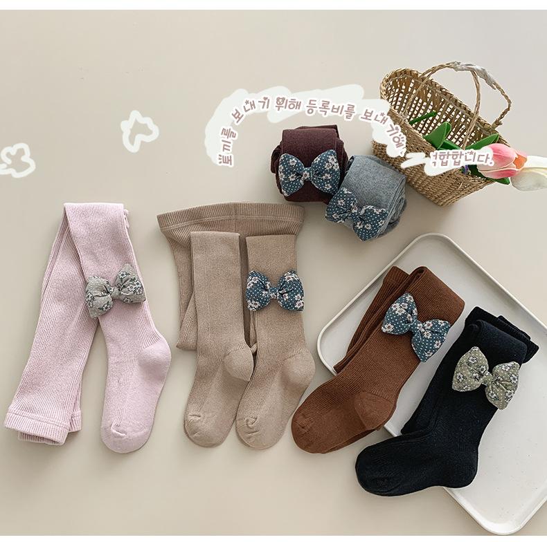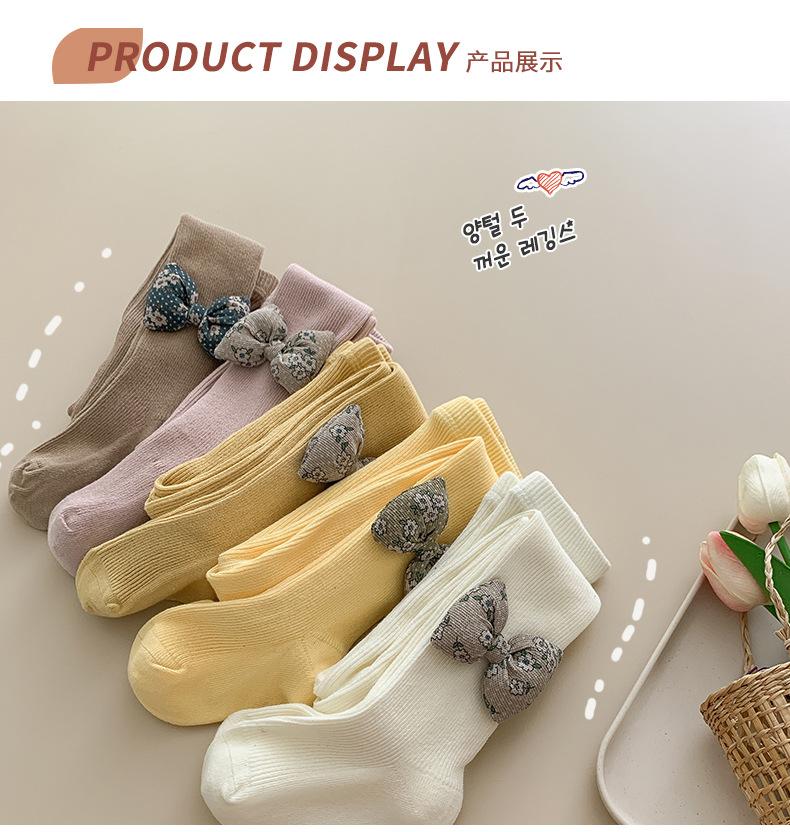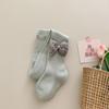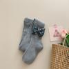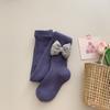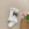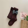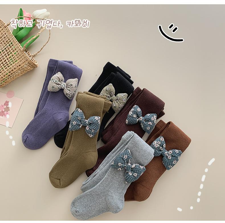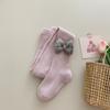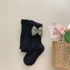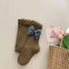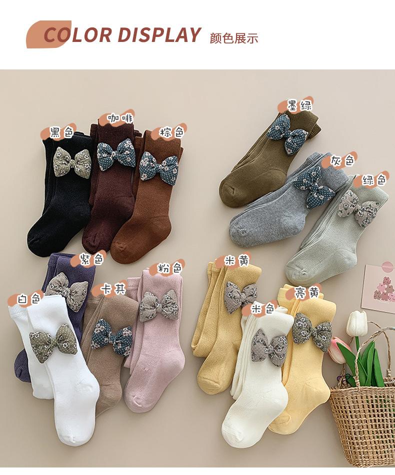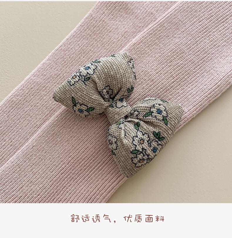 Calcetines para bebé, estilo coreano, vintage, con estampado floral, lazo grande, de longitud media, de algodón, de color liso