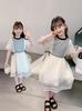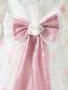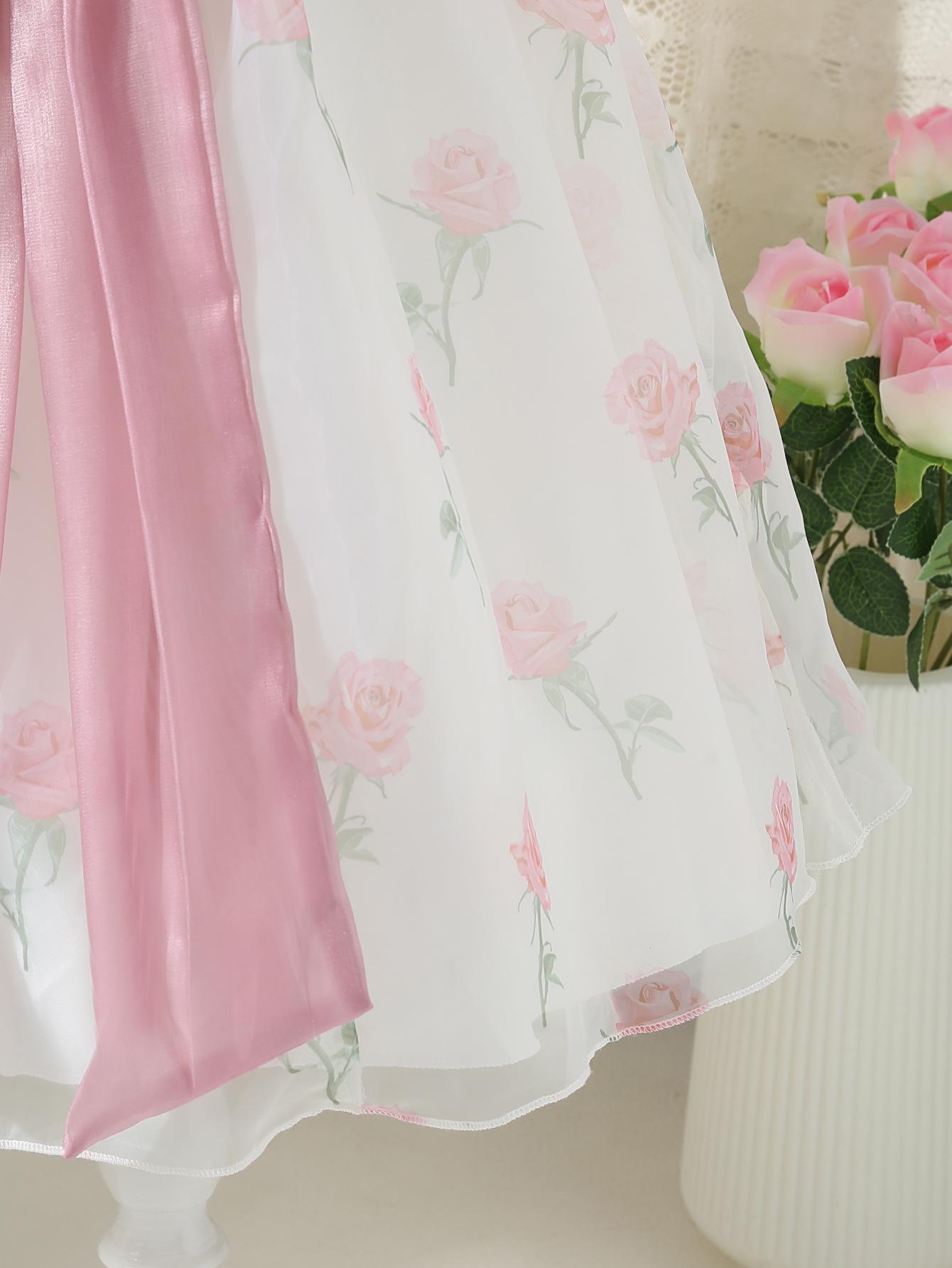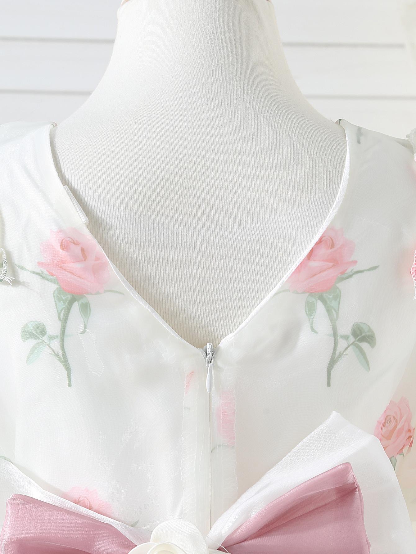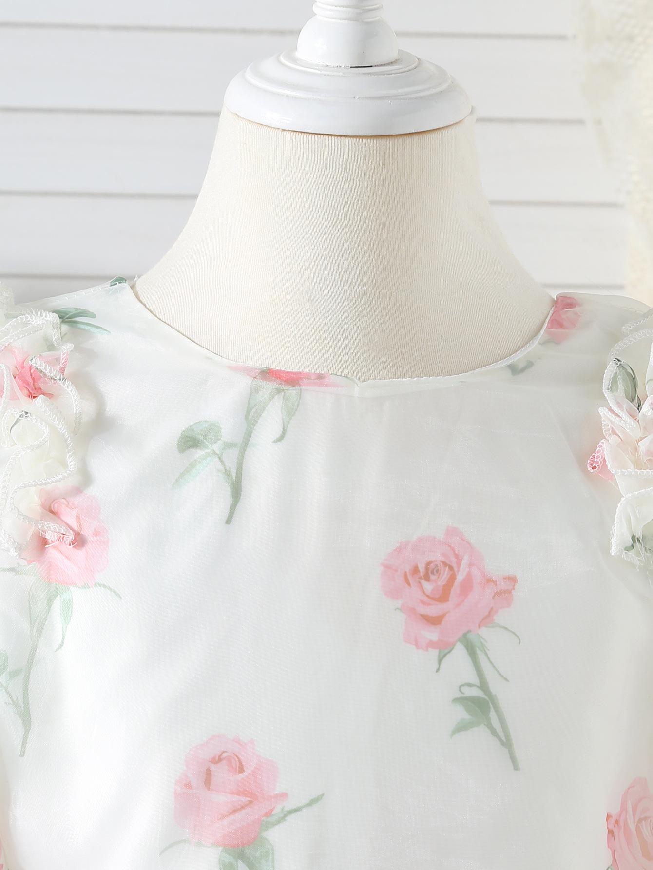 Vestido de princesa para niña, verano 2025, nuevo estilo, vestido floral para niña, vestido con mangas abullonadas y lazo.