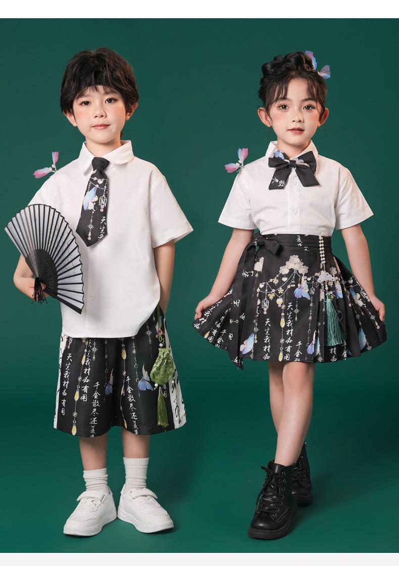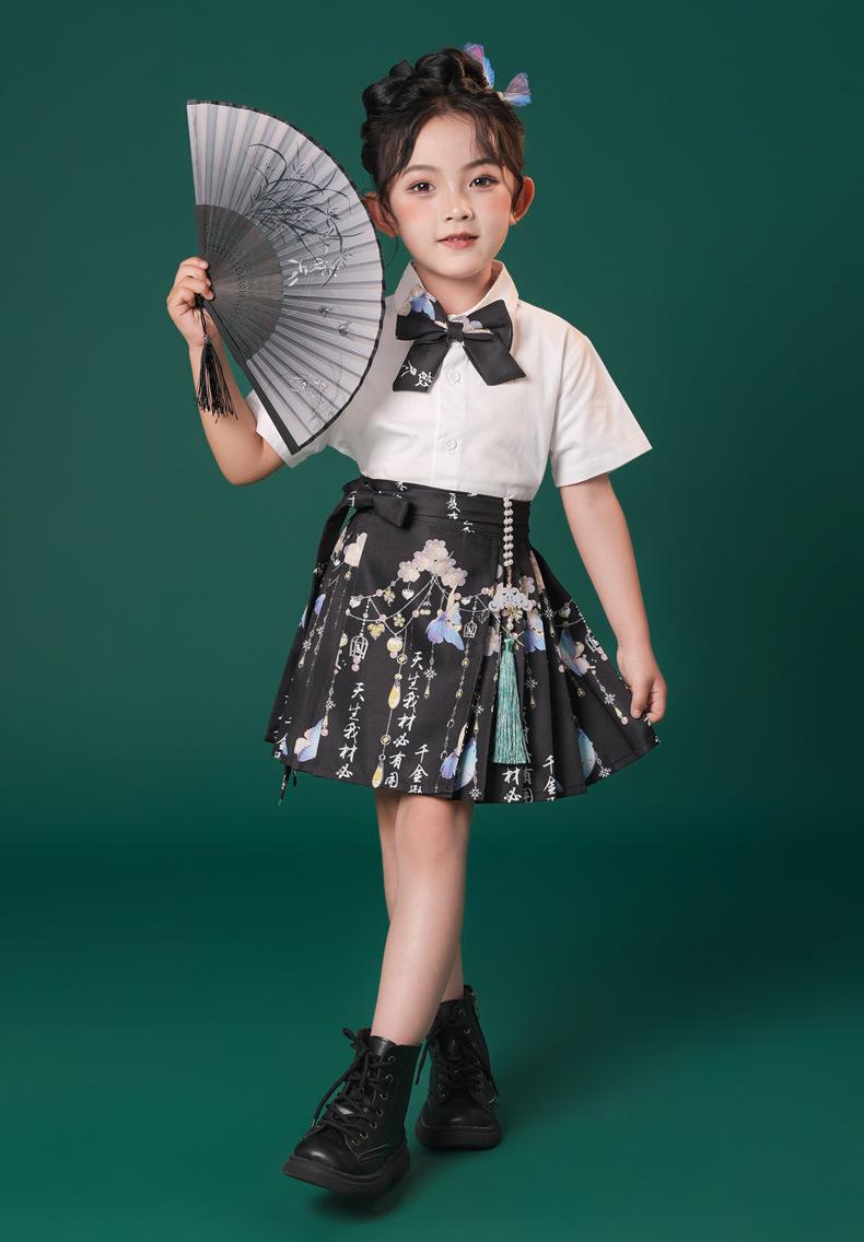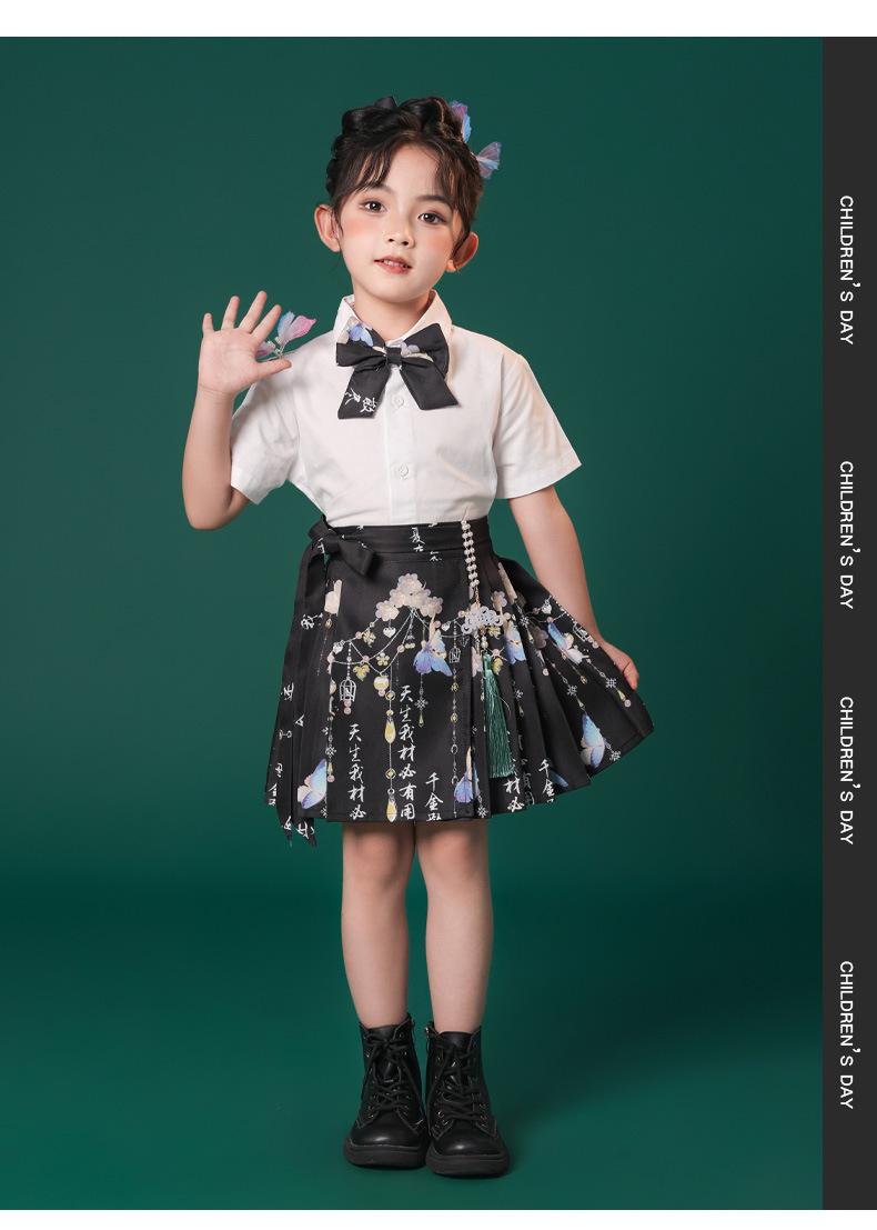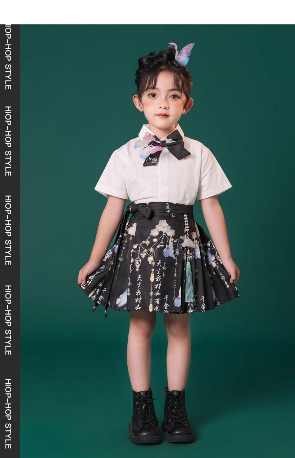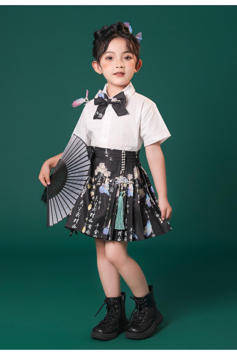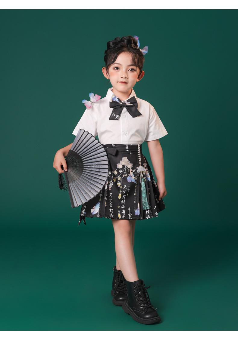 Traje infantil de junio 1 para jardín de niños, estilo chino, traje para presentación de coro, falda de cara de caballo de caligrafía para niñas, traje de ropa china