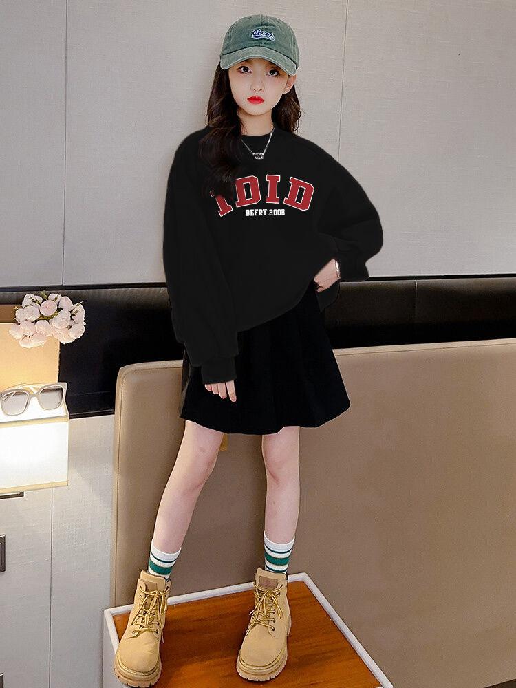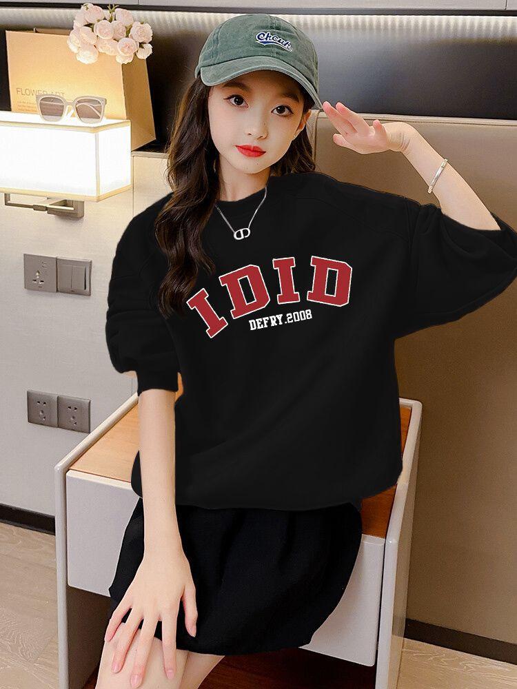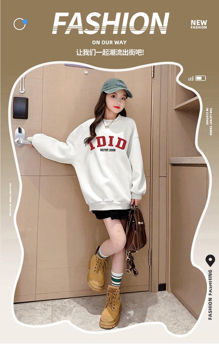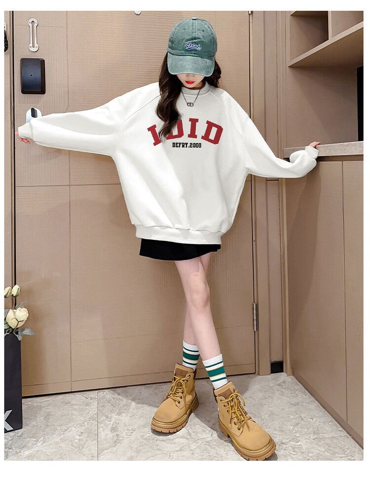 Nueva Sudadera de Otoño con Forro Polar y Estampado de Letras, Cuello Redondo Holgada, Moda Coreana Trendy para Chicas de Secundaria y Preparatoria
