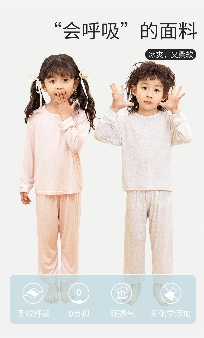 Pijamas de Verano Finos de Modal para Niños Ropa para el Hogar de Manga Larga Traje de Seda Helada para Niño Pequeño Ropa para Aire Acondicionado para Niñas