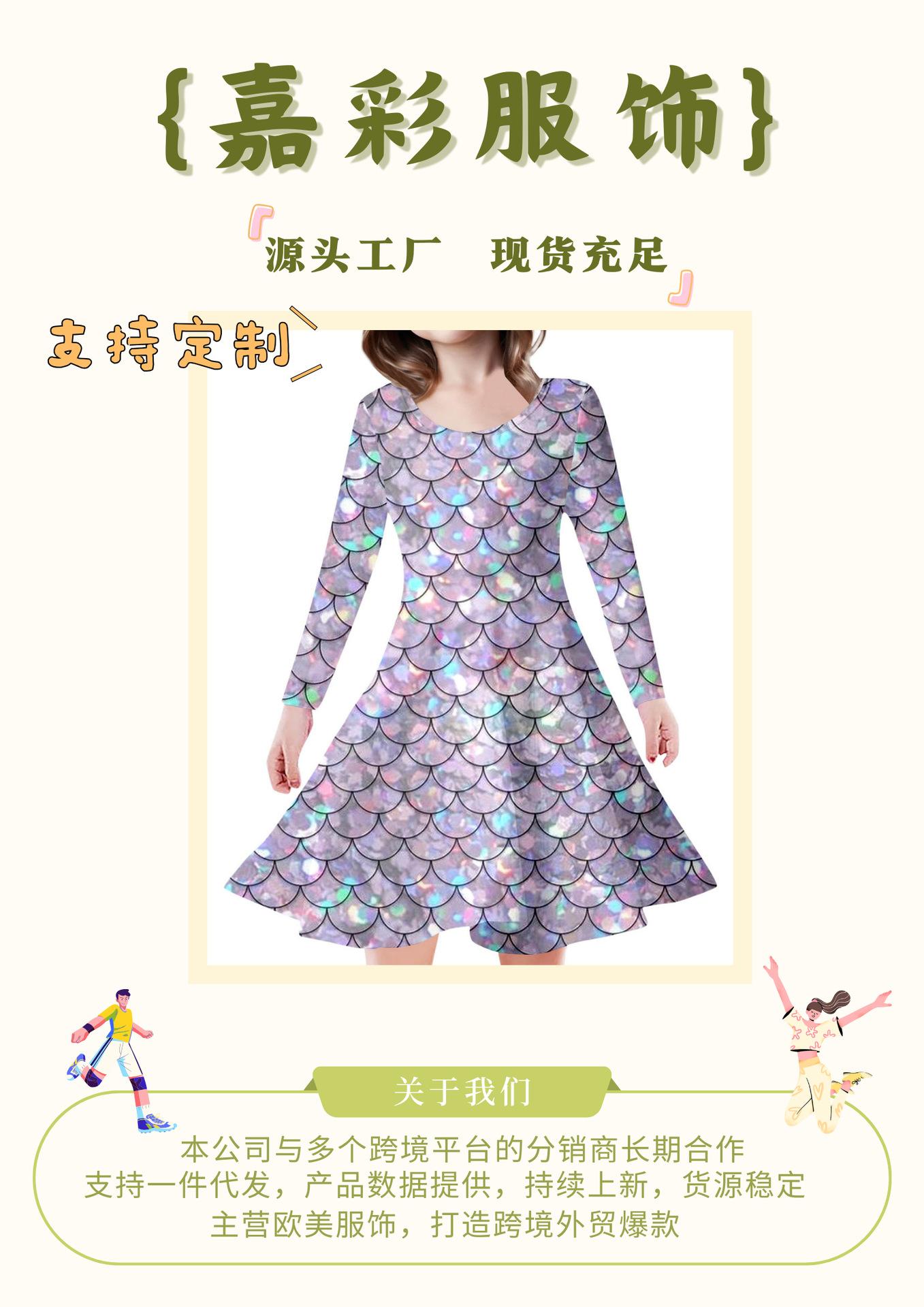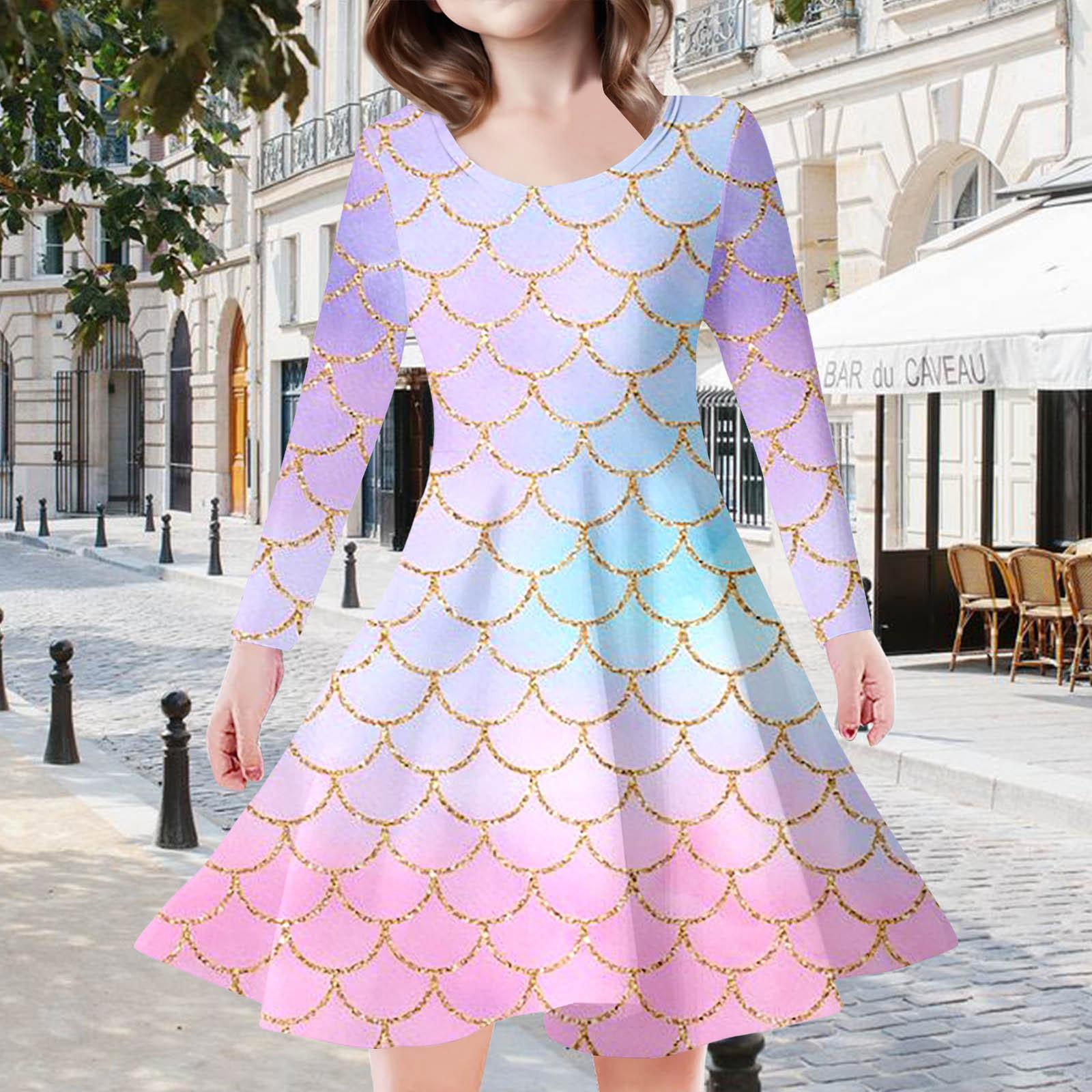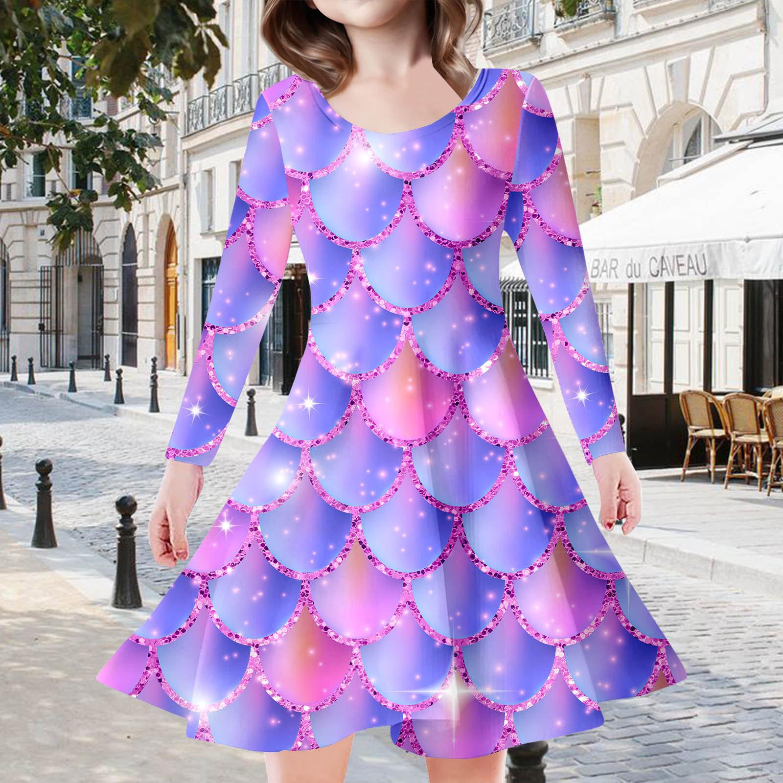 Vestido de Manga Larga con Estampado Digital 3D Transfronterizo de Personajes de Fantasía para Niñas, Moda Casual Estilo Princesa, Vestido Infantil