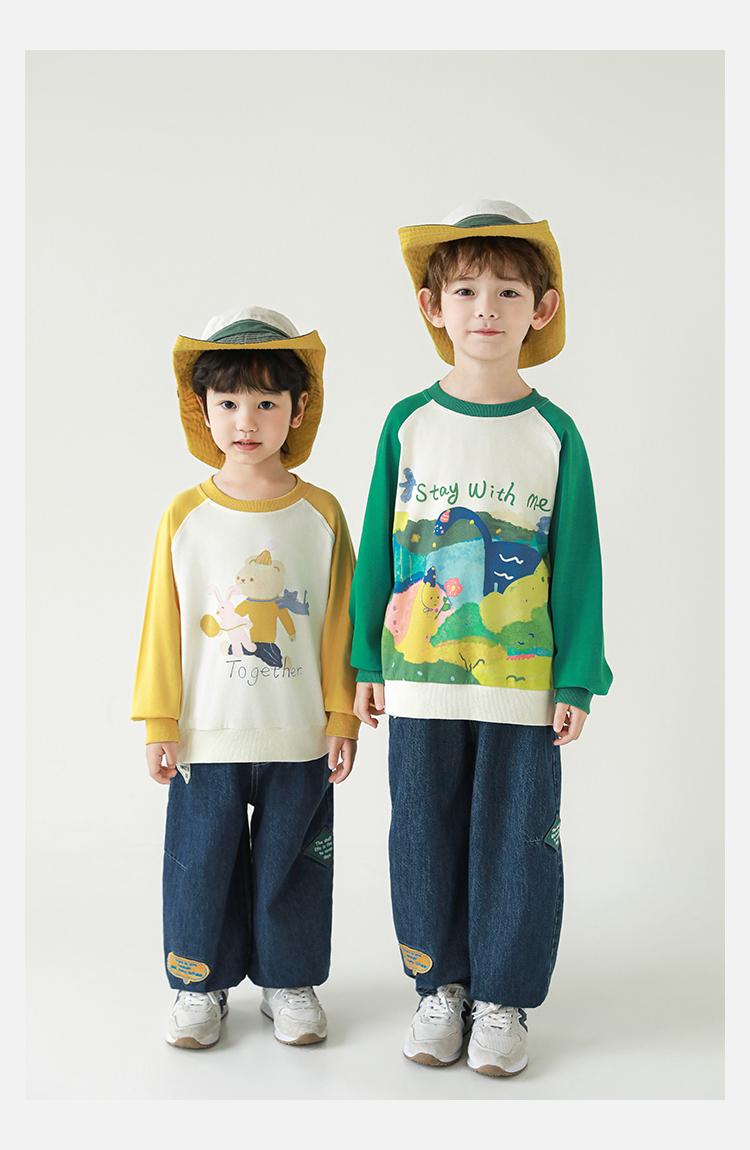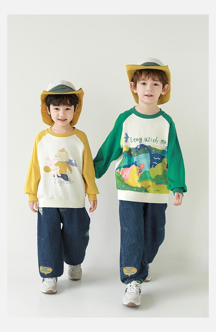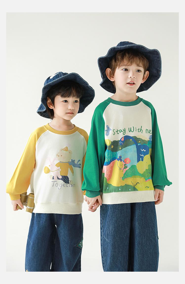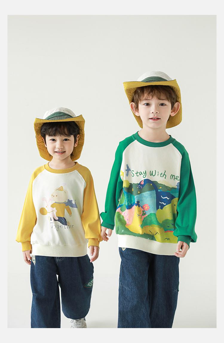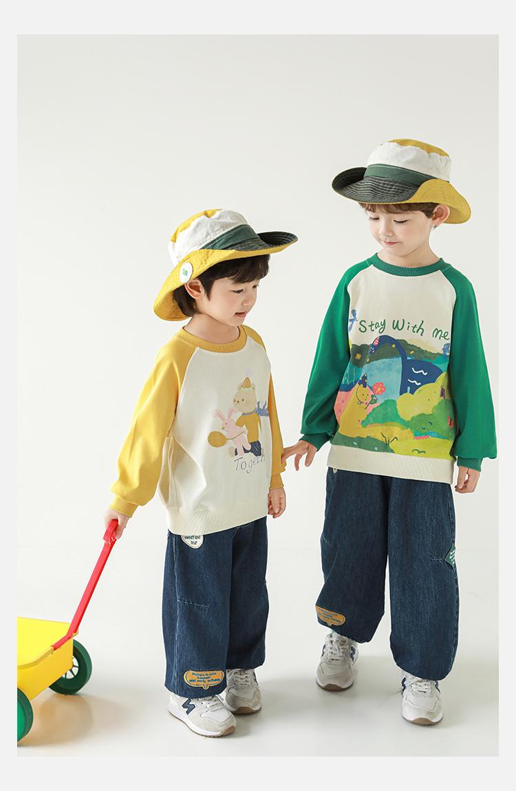 Sudadera de Manga Larga con Bloques de Color y Grafiti de Dibujos Animados para Niño Wulibu Yibo Otoño 2025 Nueva Parte Superior Holgada de Dibujos Animados para Niños