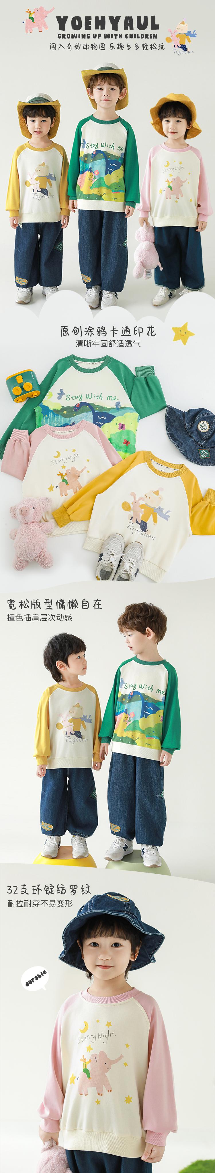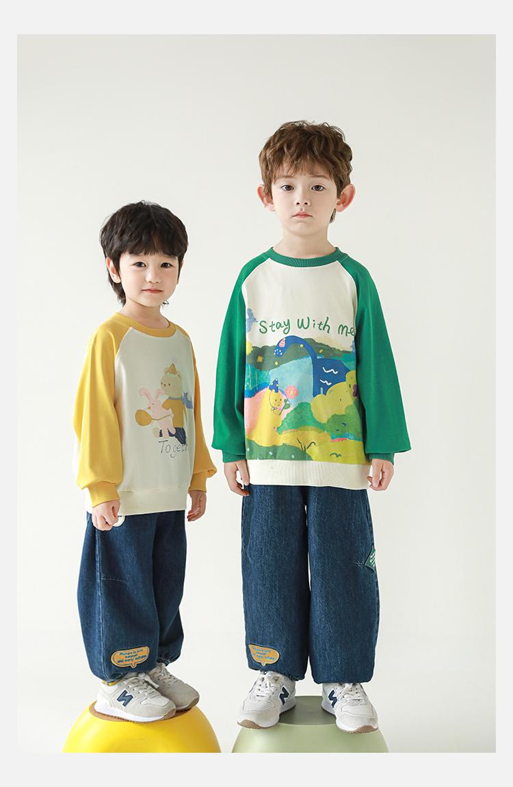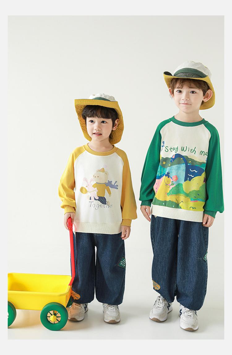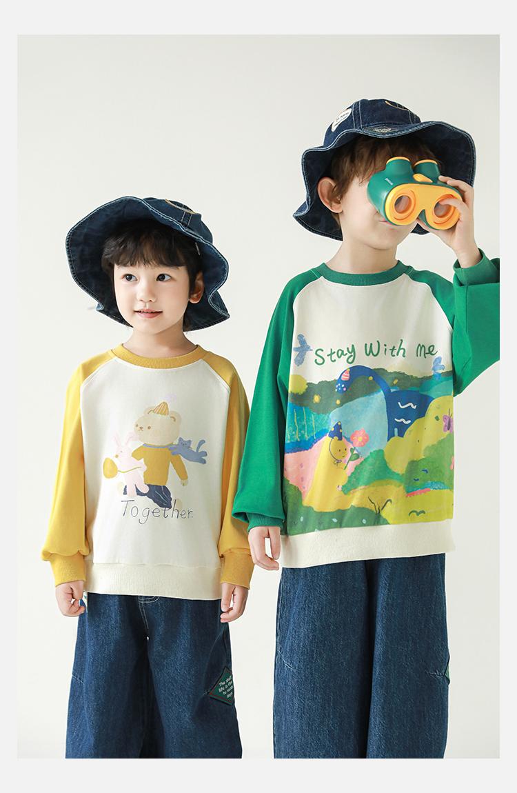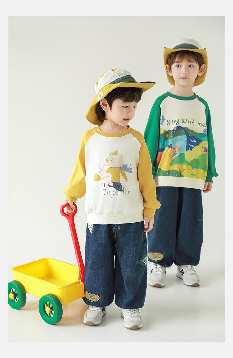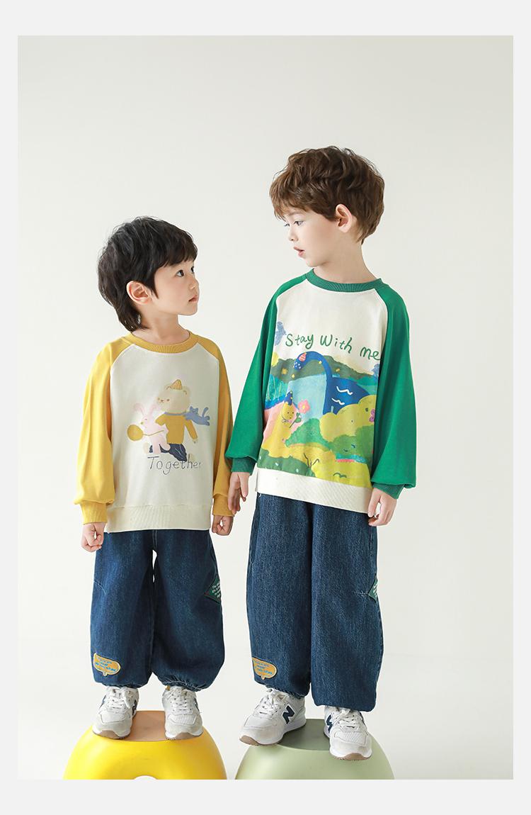 Sudadera de Manga Larga con Bloques de Color y Grafiti de Dibujos Animados para Niño Wulibu Yibo Otoño 2025 Nueva Parte Superior Holgada de Dibujos Animados para Niños