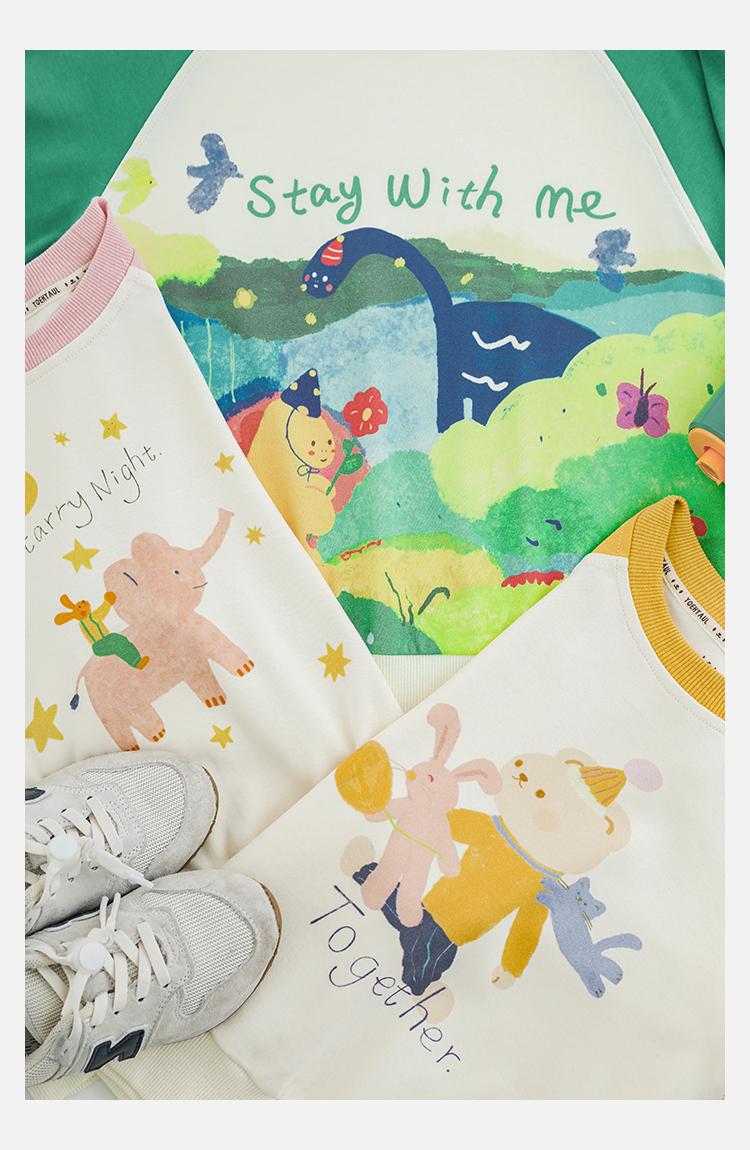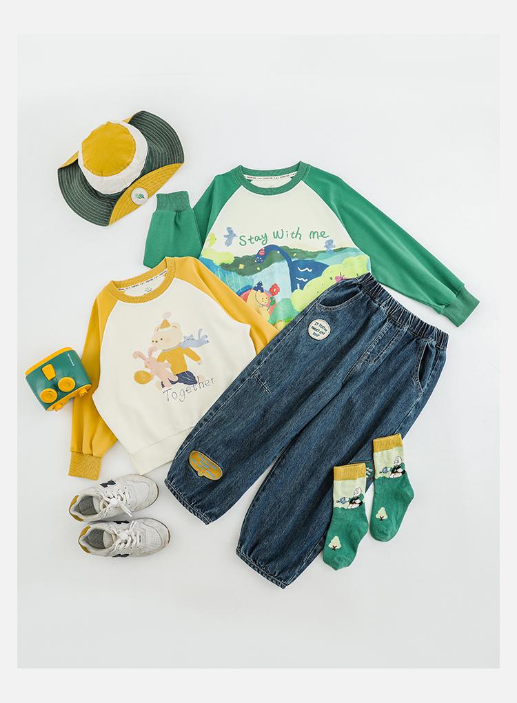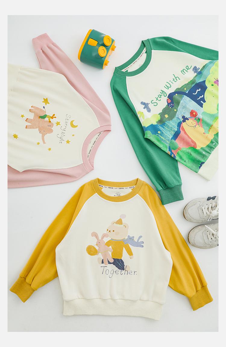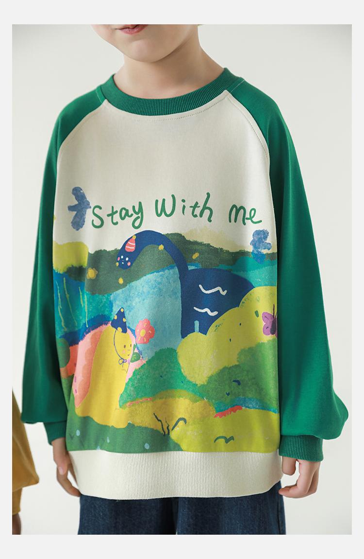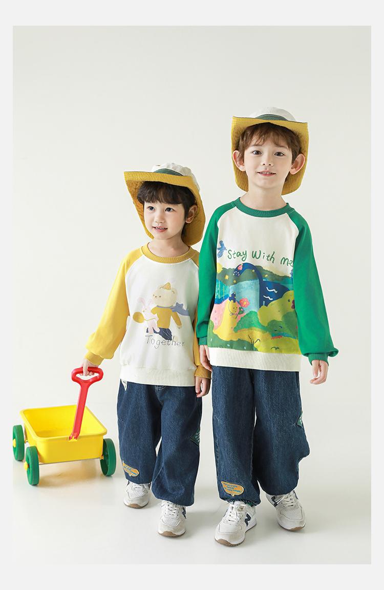 Sudadera de Manga Larga con Bloques de Color y Grafiti de Dibujos Animados para Niño Wulibu Yibo Otoño 2025 Nueva Parte Superior Holgada de Dibujos Animados para Niños