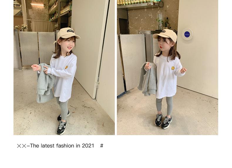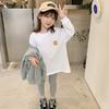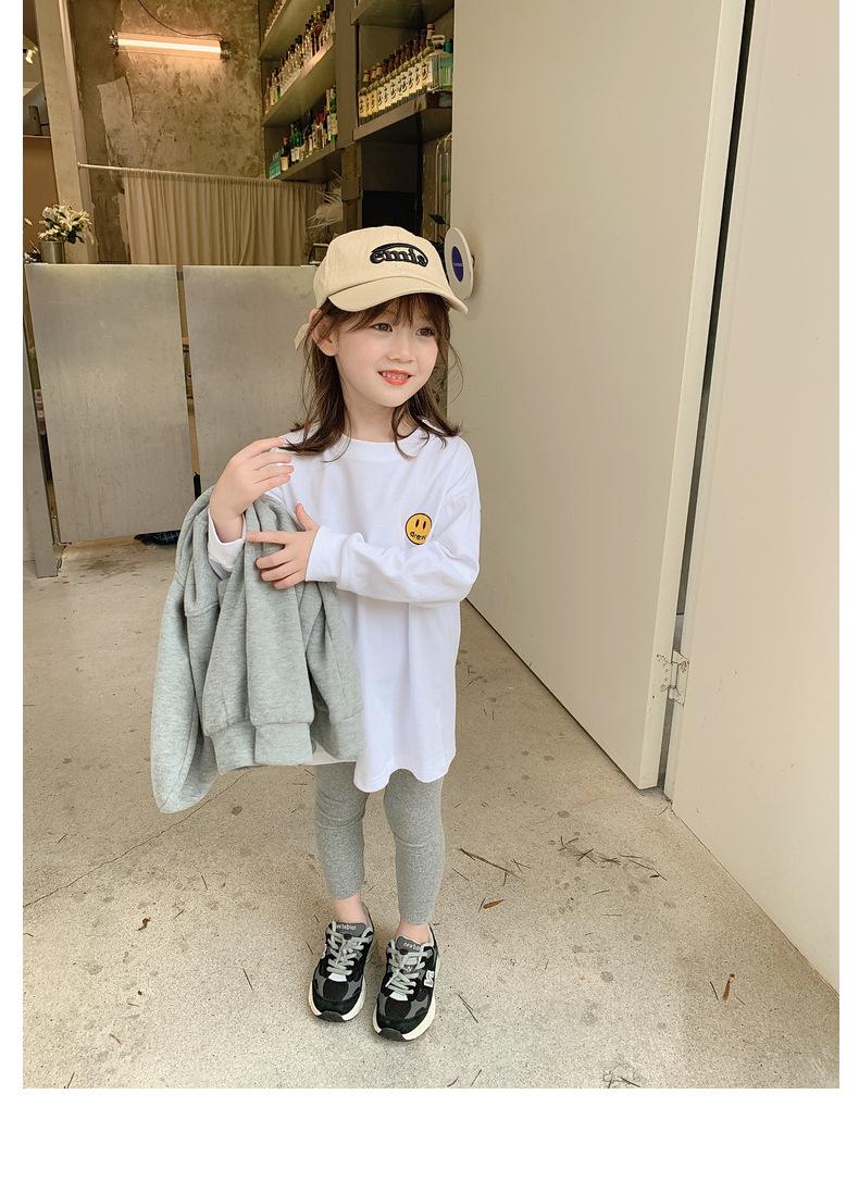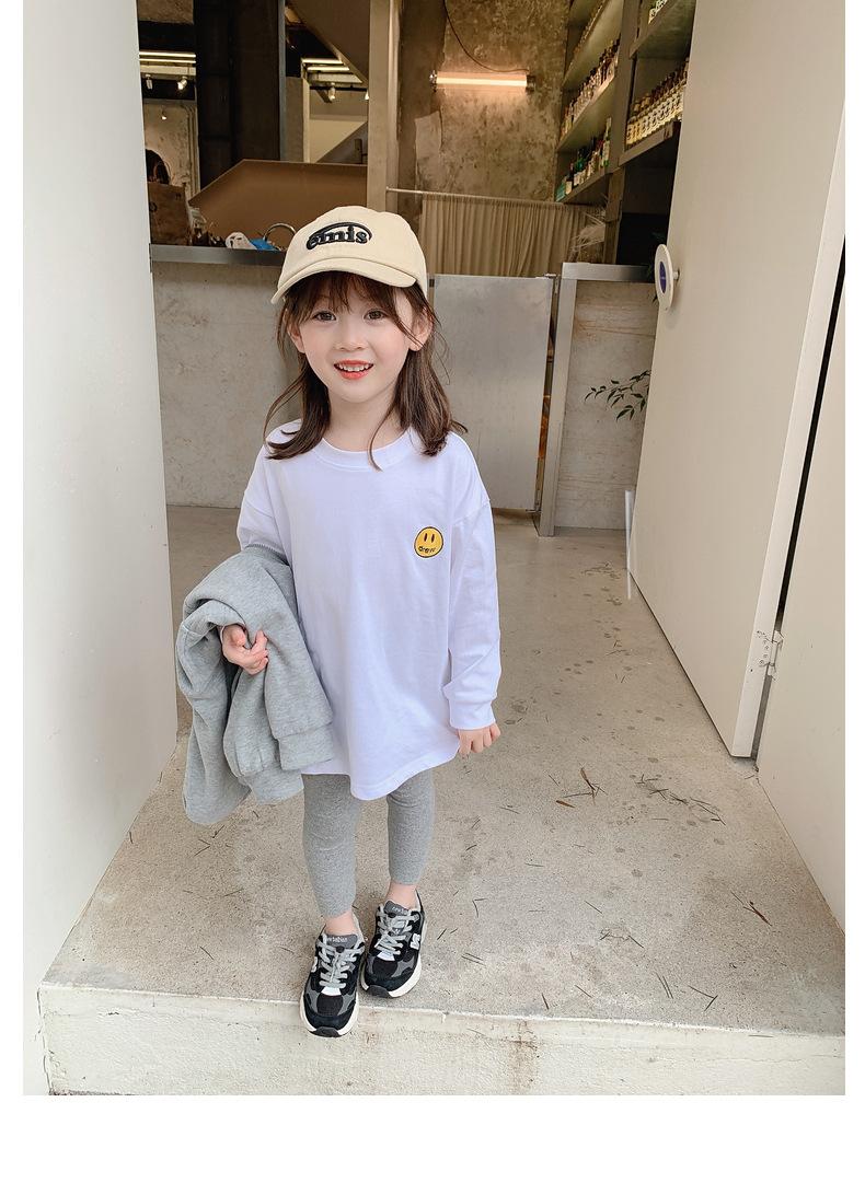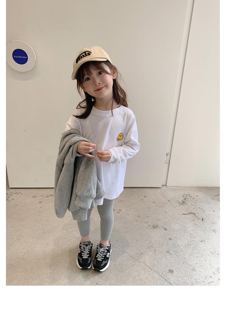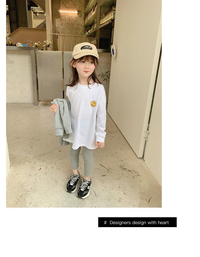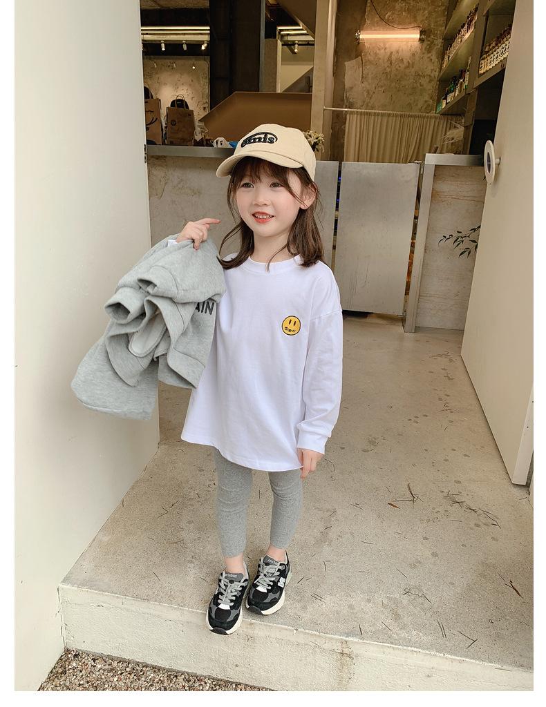 Camiseta de manga larga de polar para niña, nueva camiseta de primavera y otoño con cara sonriente, camiseta básica de dos piezas estilo coreano para bebé, de moda para niña