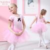 Trajes de baile para niños, ropa de entrenamiento de algodón para niñas de verano, mono de actuación de encaje de manga corta, falda de baile de ballet