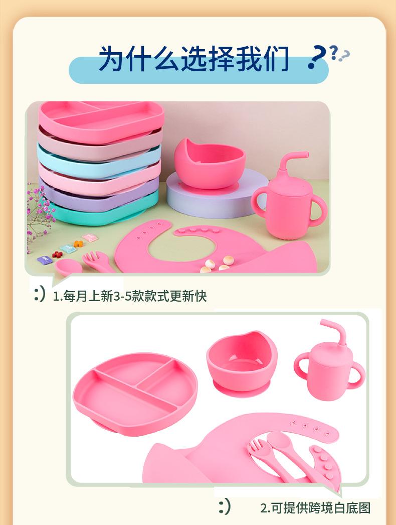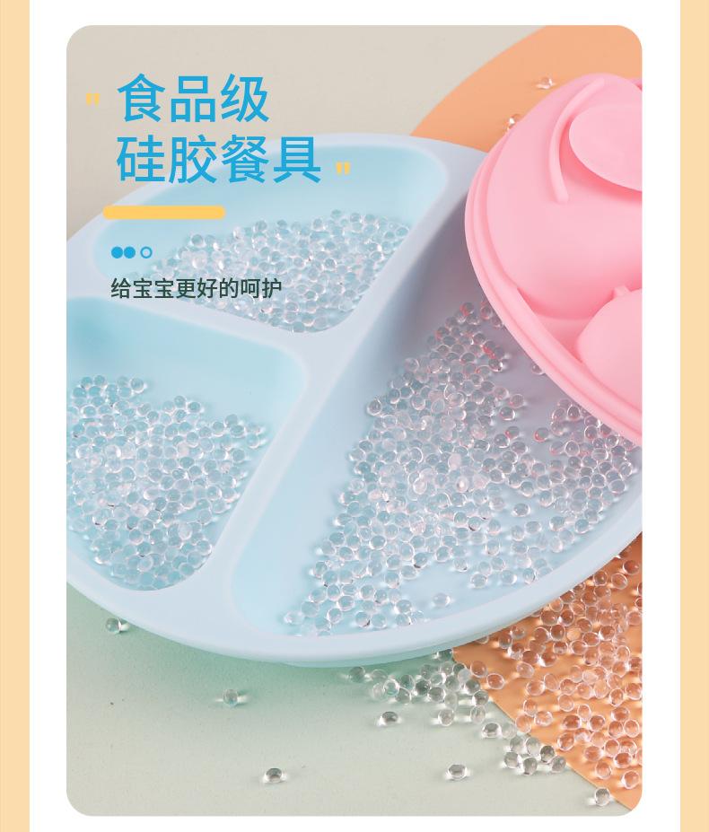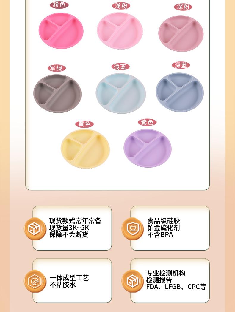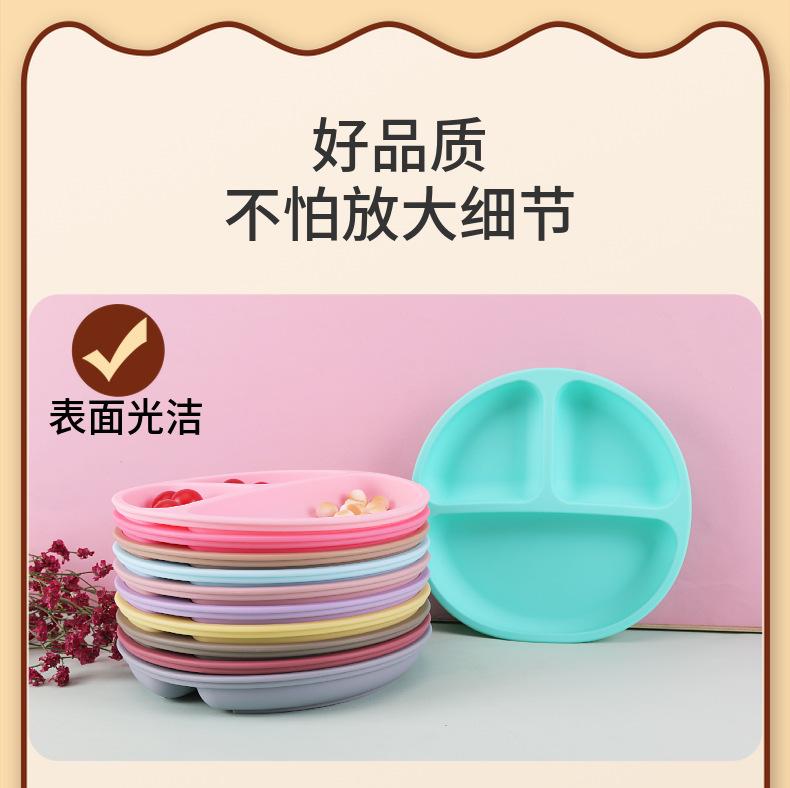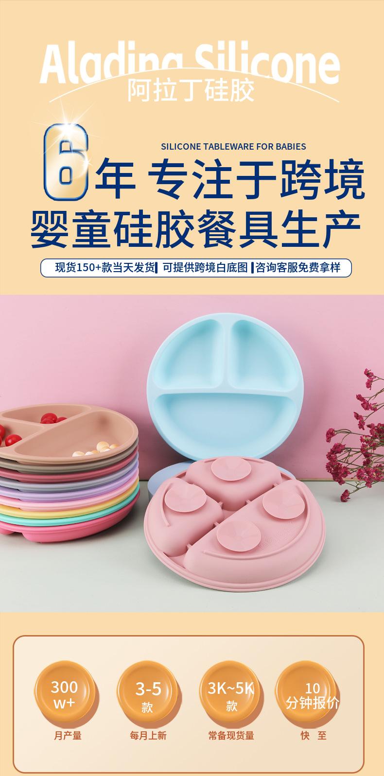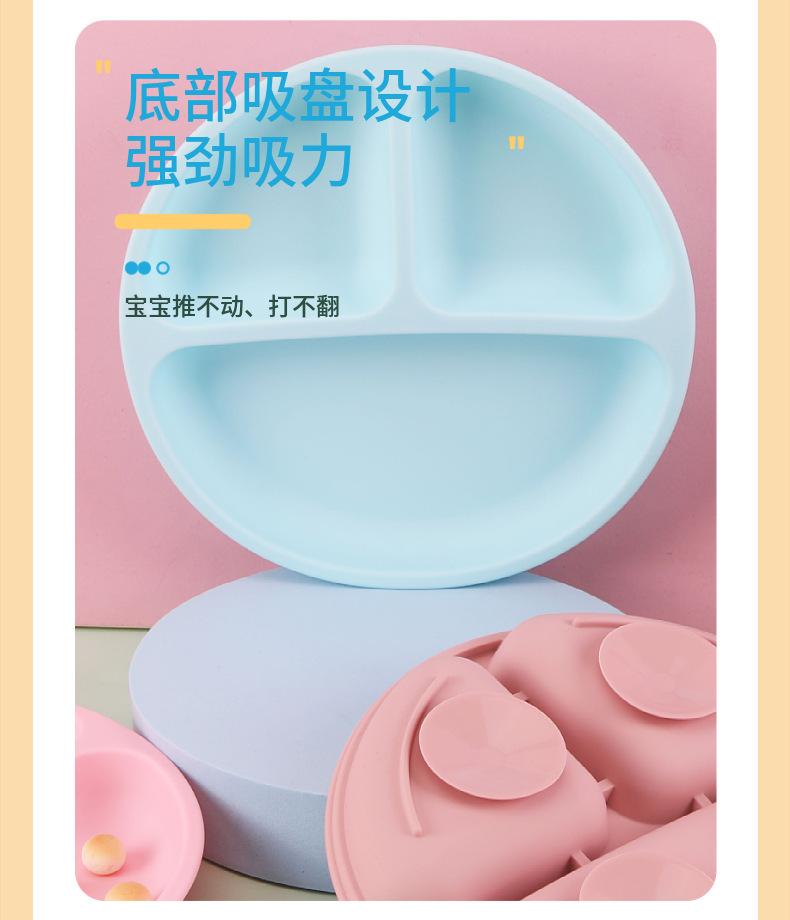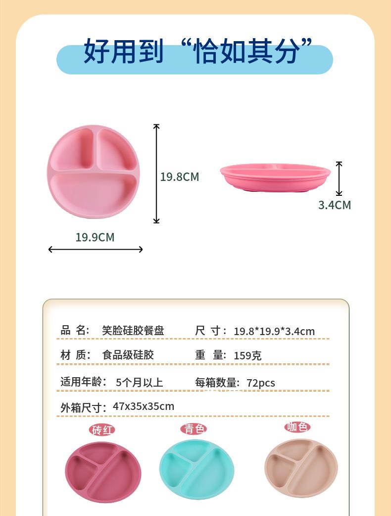 Vajilla de alimentación transfronteriza Plato de cena de silicona Plato de cena de grado alimenticio para bebés Plato de cena con ventosa y carita sonriente Plato de cena para niños