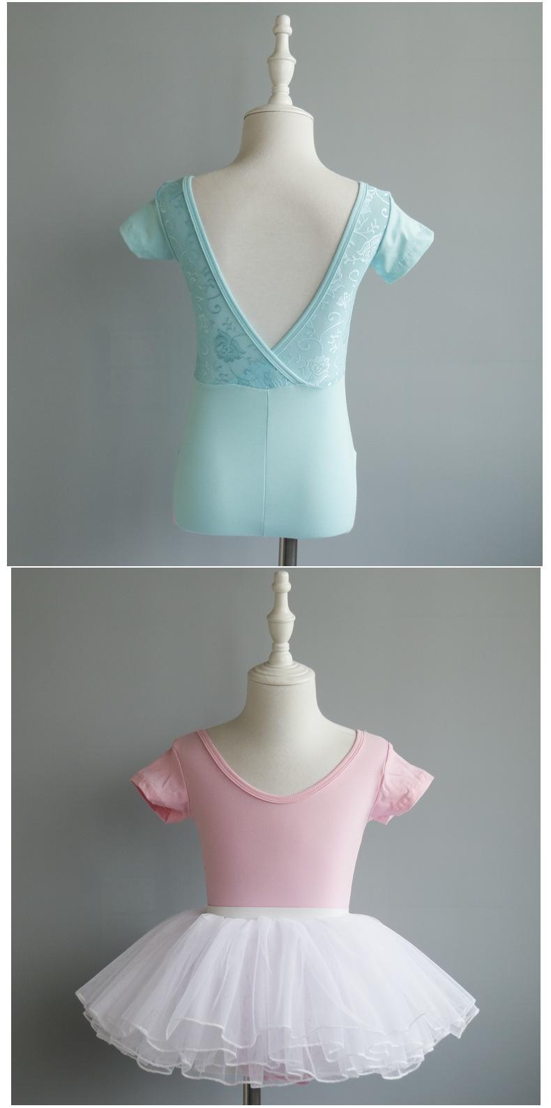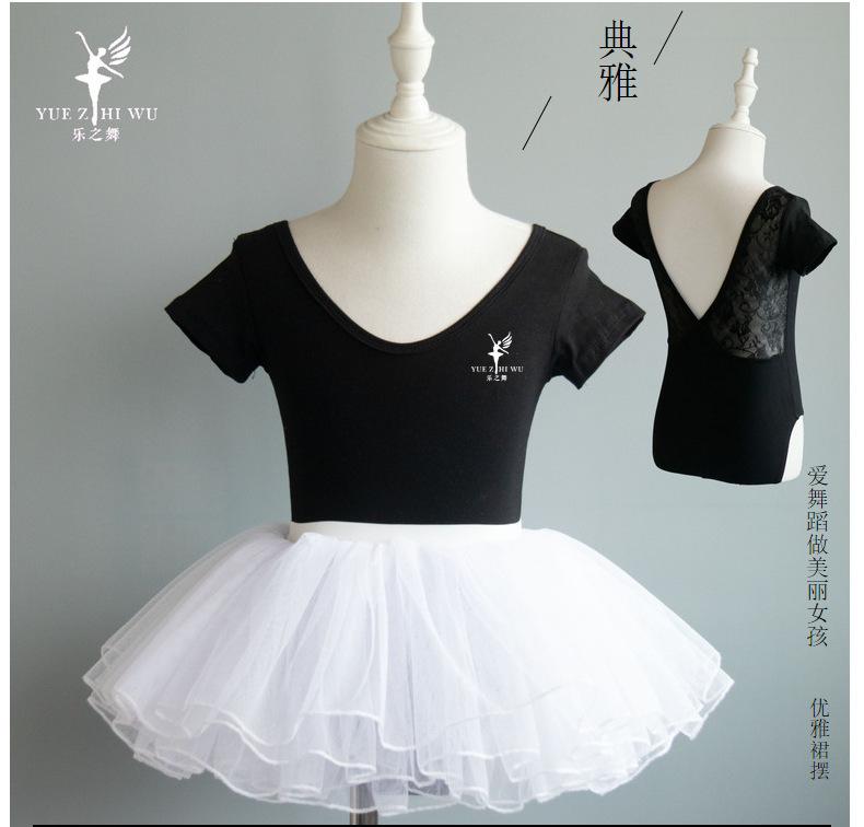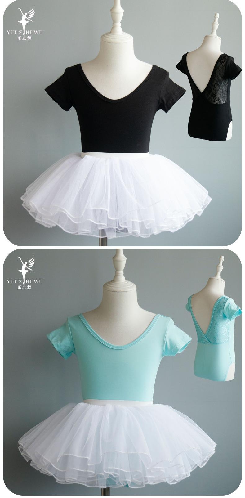 110-170 Ropa de baile para niñas, ropa de entrenamiento corporal de verano, mono de baile chino de manga corta, falda de gasa esponjosa de ballet