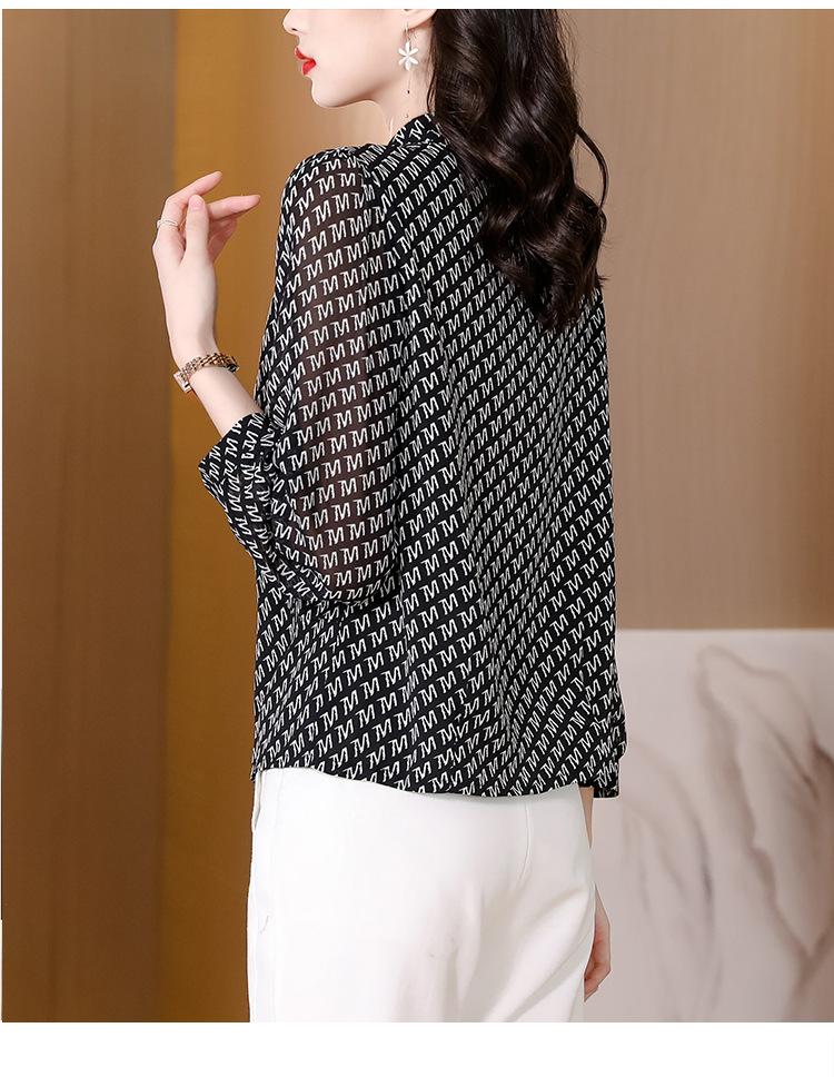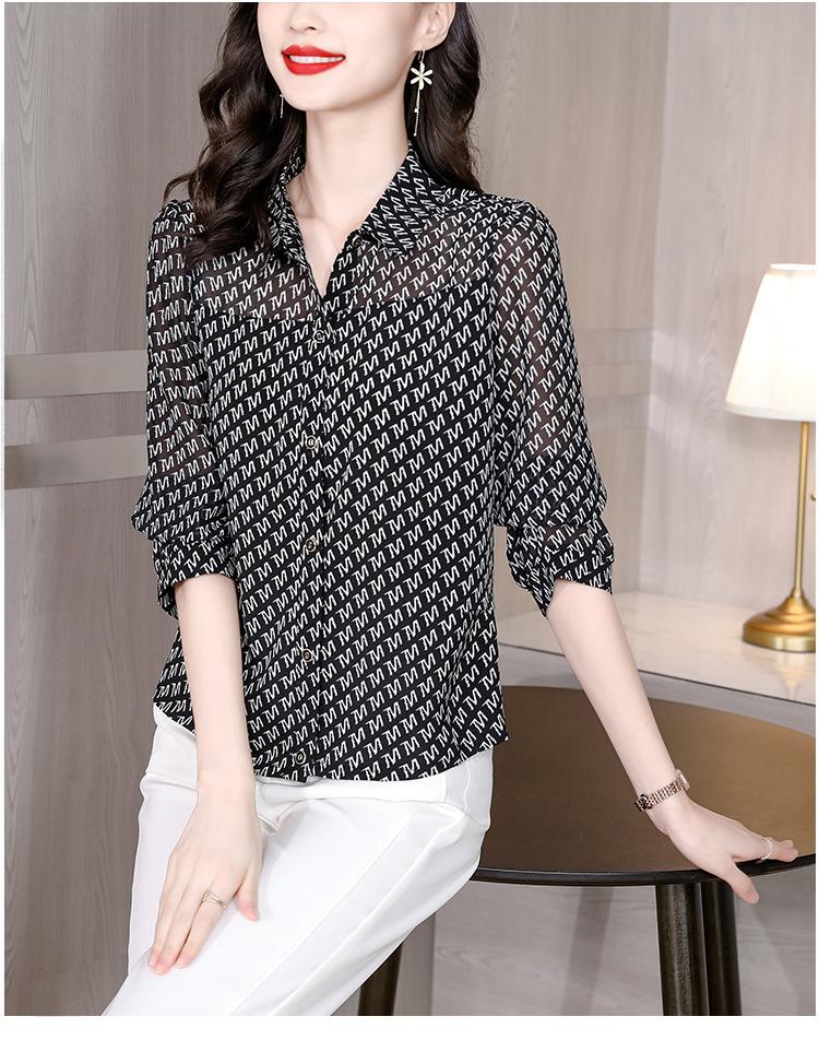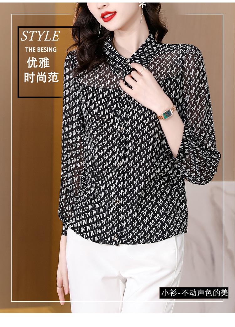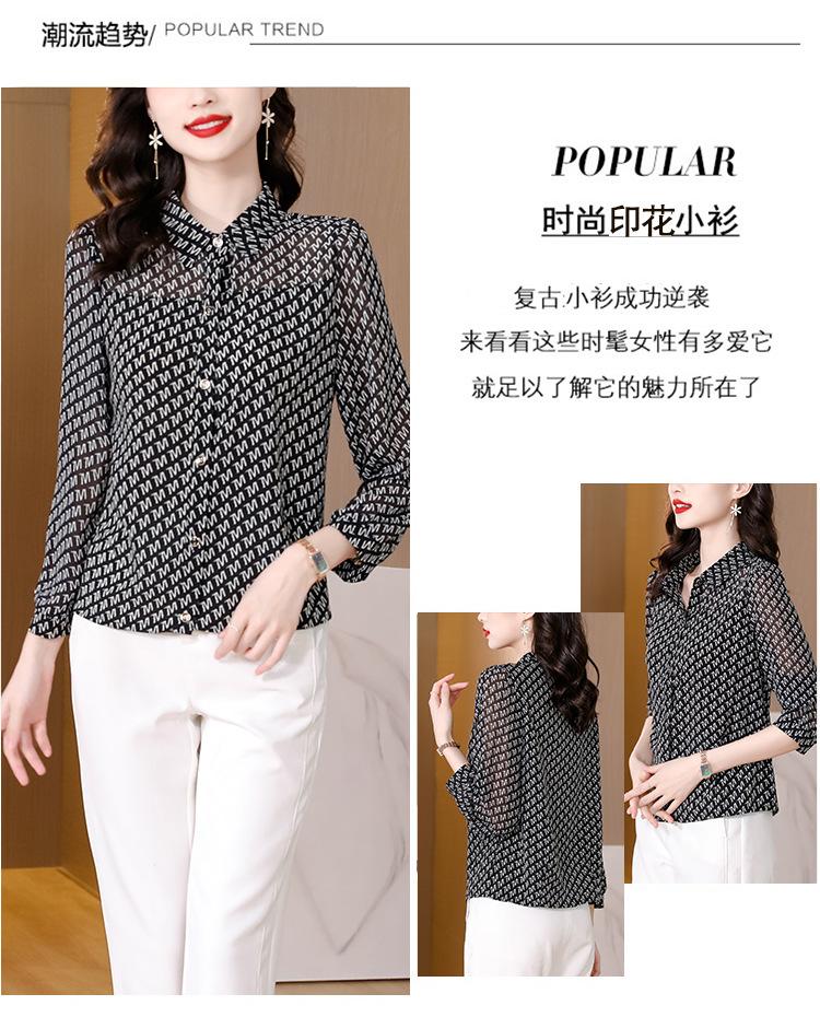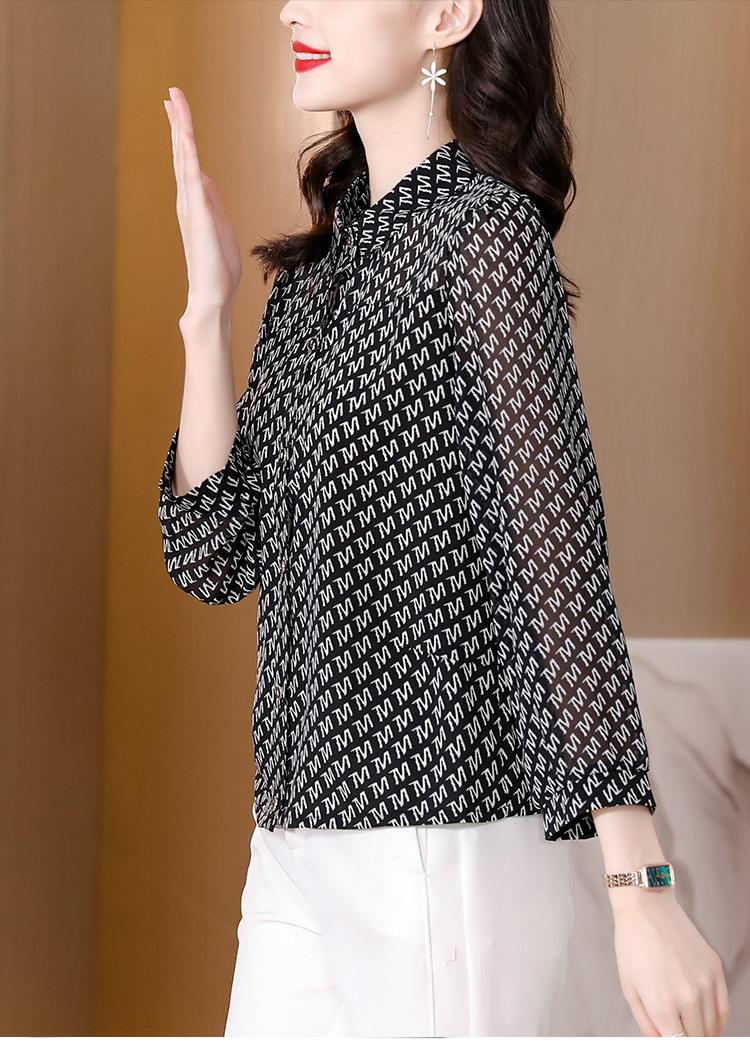 Camisa de seda morera de gasa de marca para mujer, primavera y otoño 2025, nueva moda, camisa de manga larga antiedad para madres.
