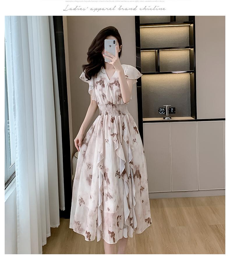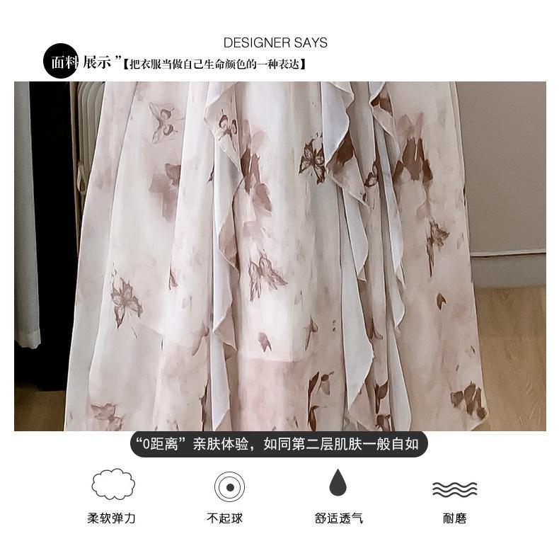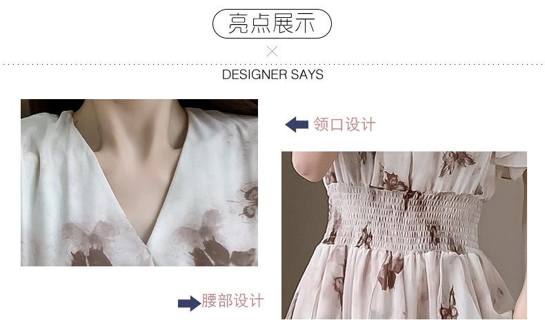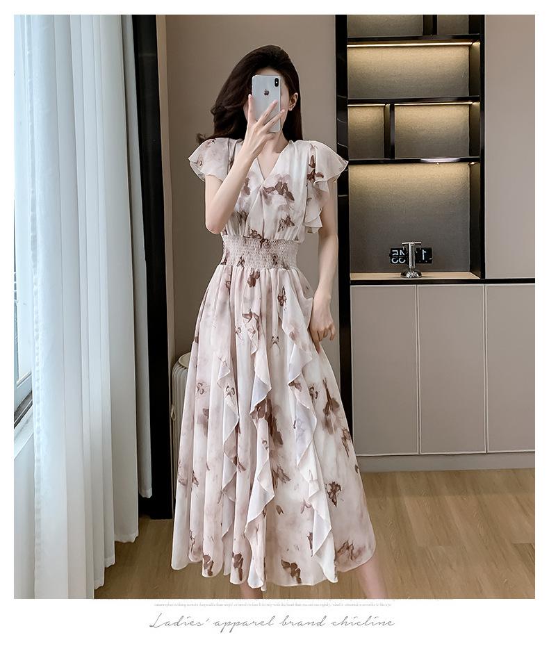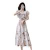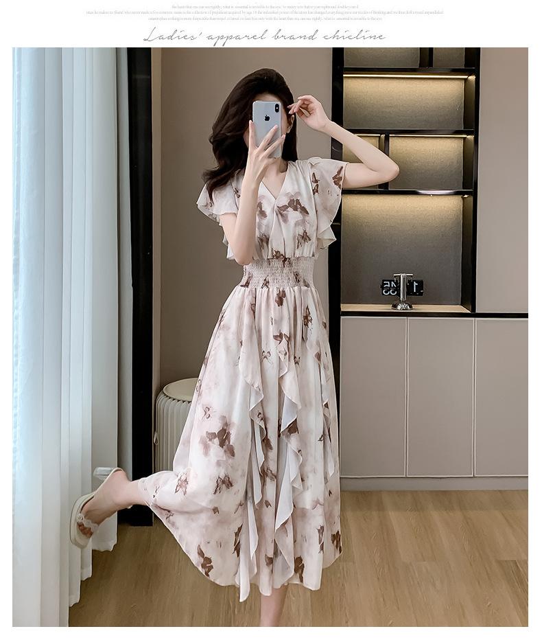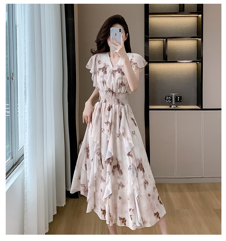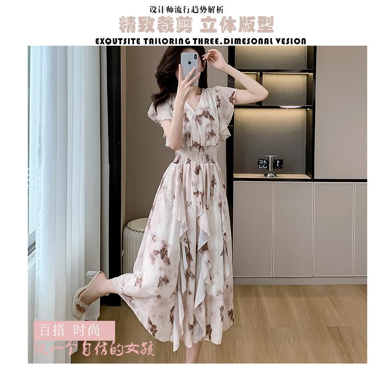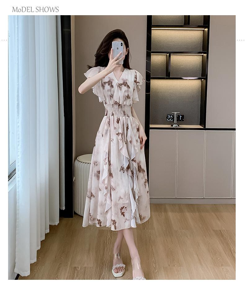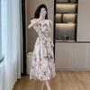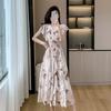Vestido pequeño de gasa de verano 2024, nuevo, manga corta, elegante, francés, cintura adelgazante, falda con volantes.