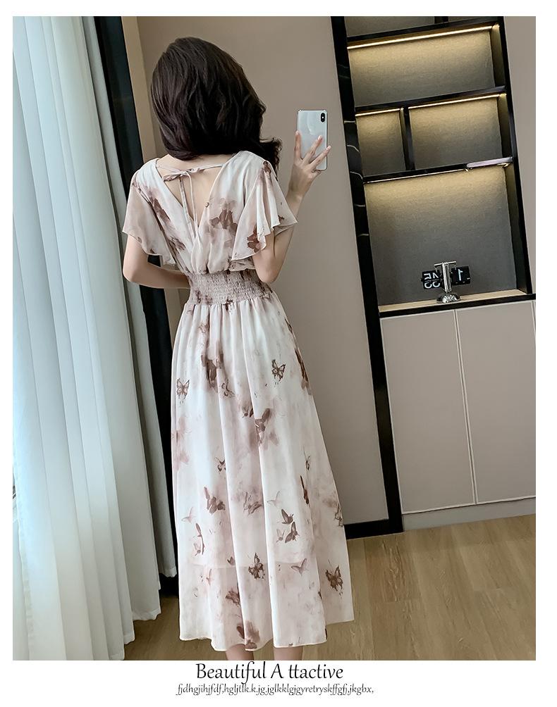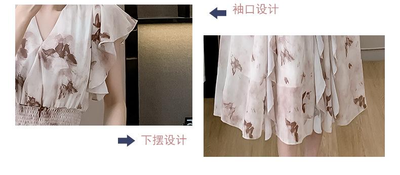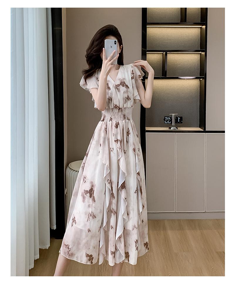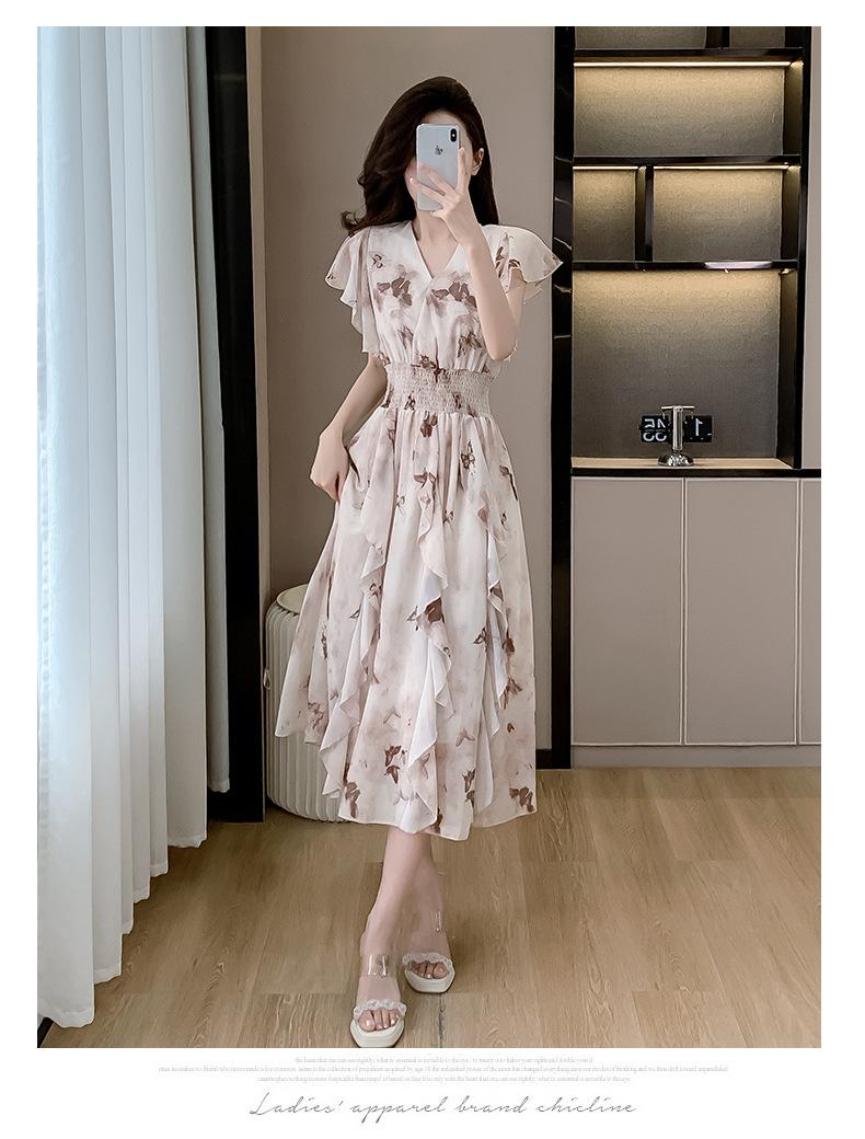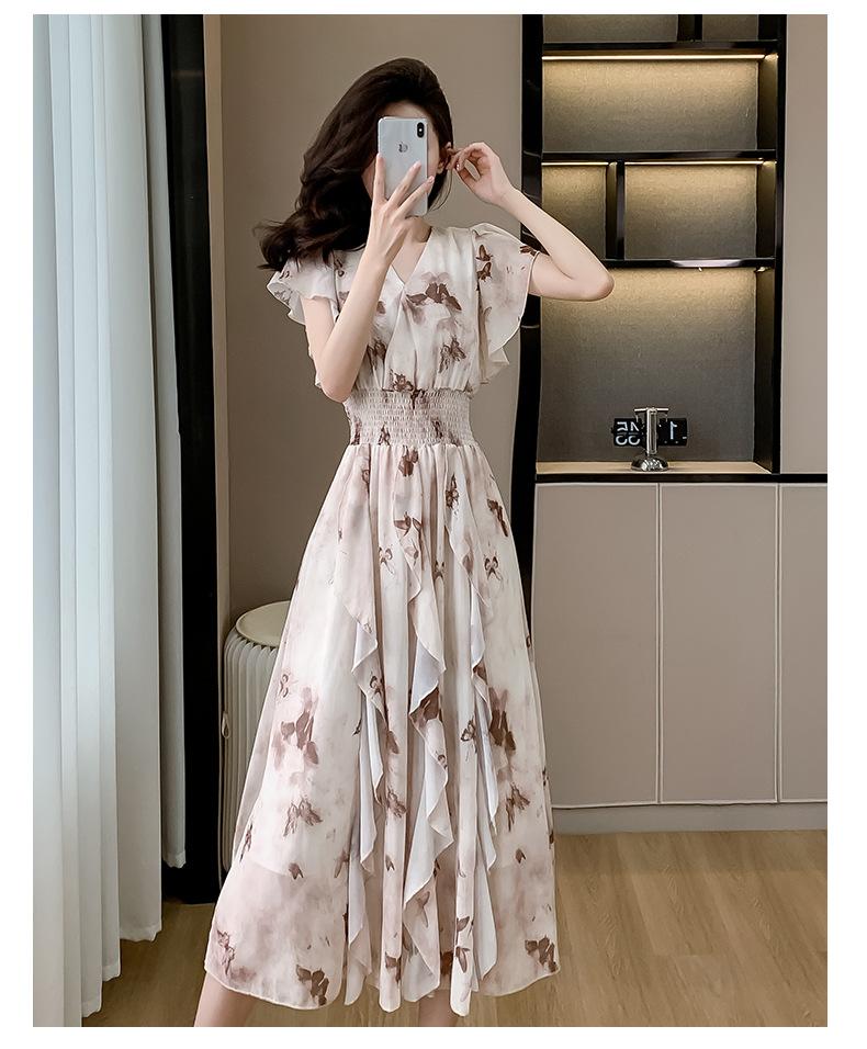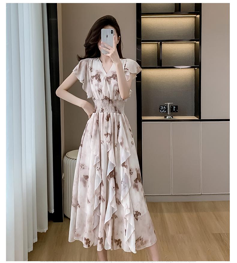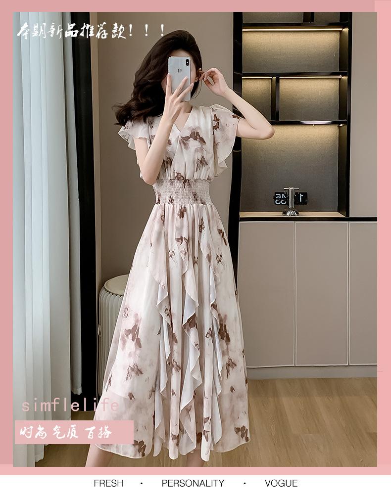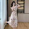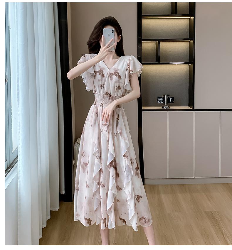 Vestido pequeño de gasa de verano 2024, nuevo, manga corta, elegante, francés, cintura adelgazante, falda con volantes.