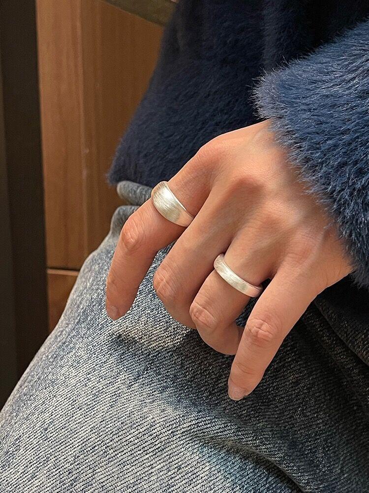Anillo Liso de Cara Ancha con Dibujo de Alambre Esmerilado Anillo Ins Estilo Cool Diseño Minimalista Personalizado Apilable Uso Abierto Ajustable