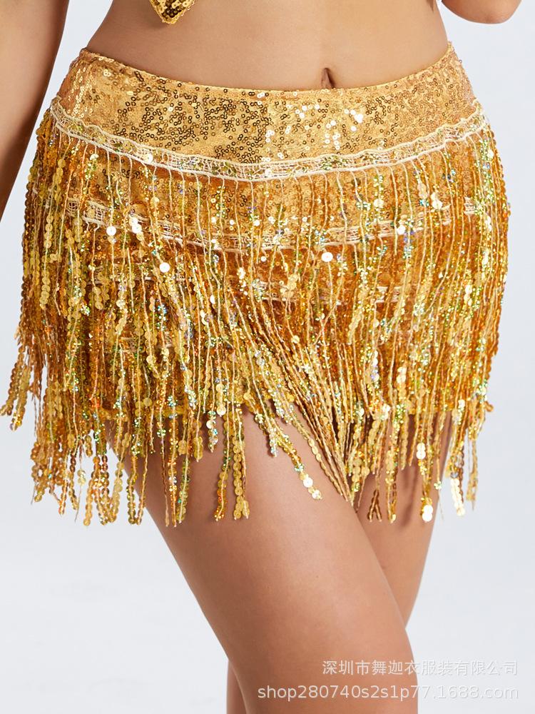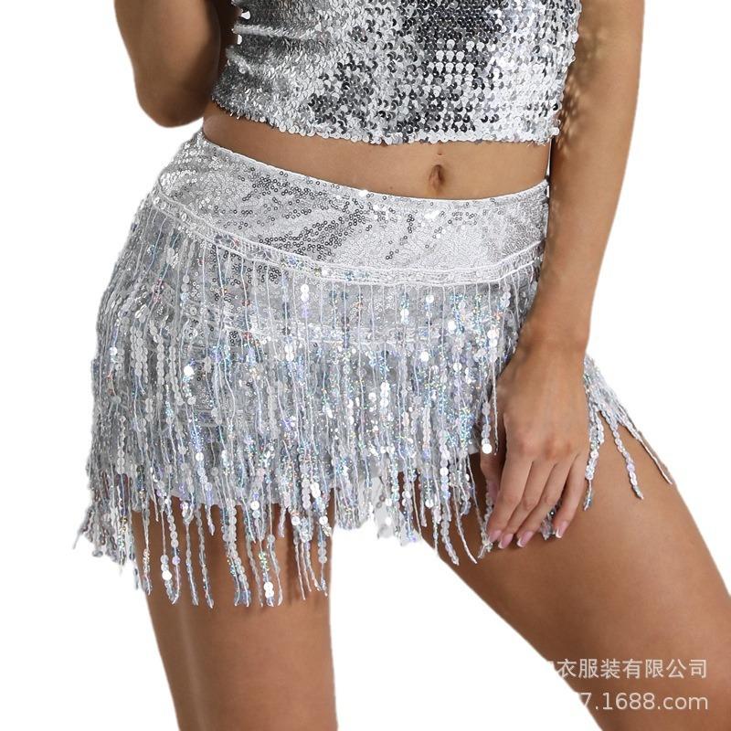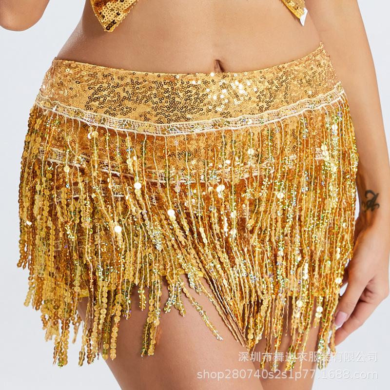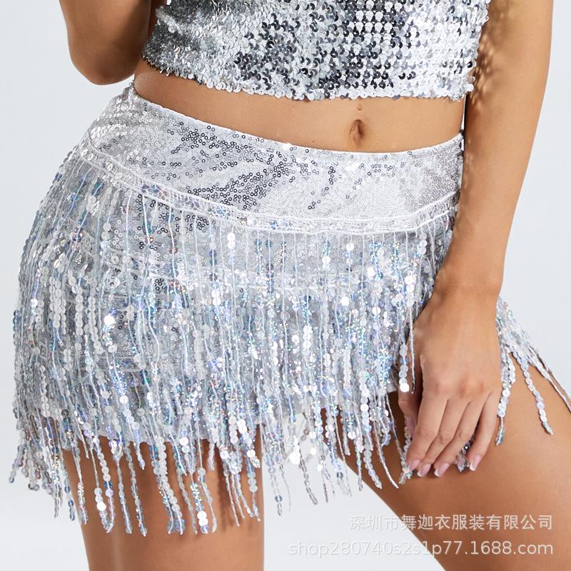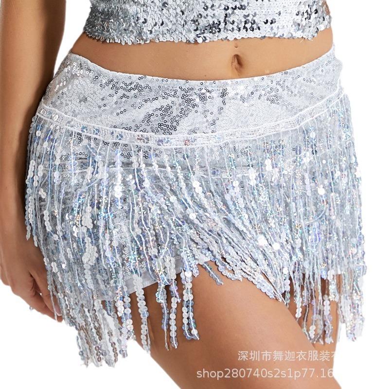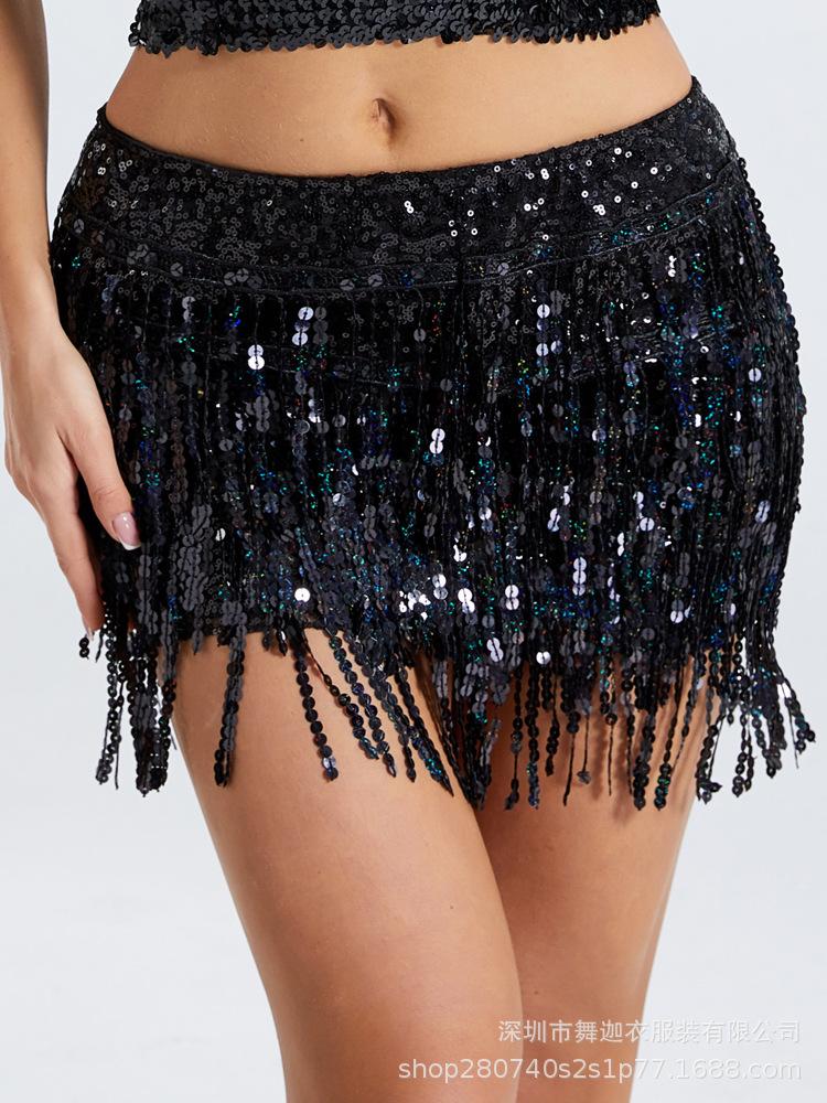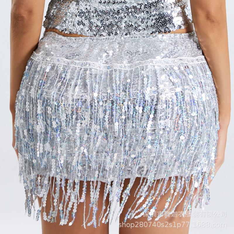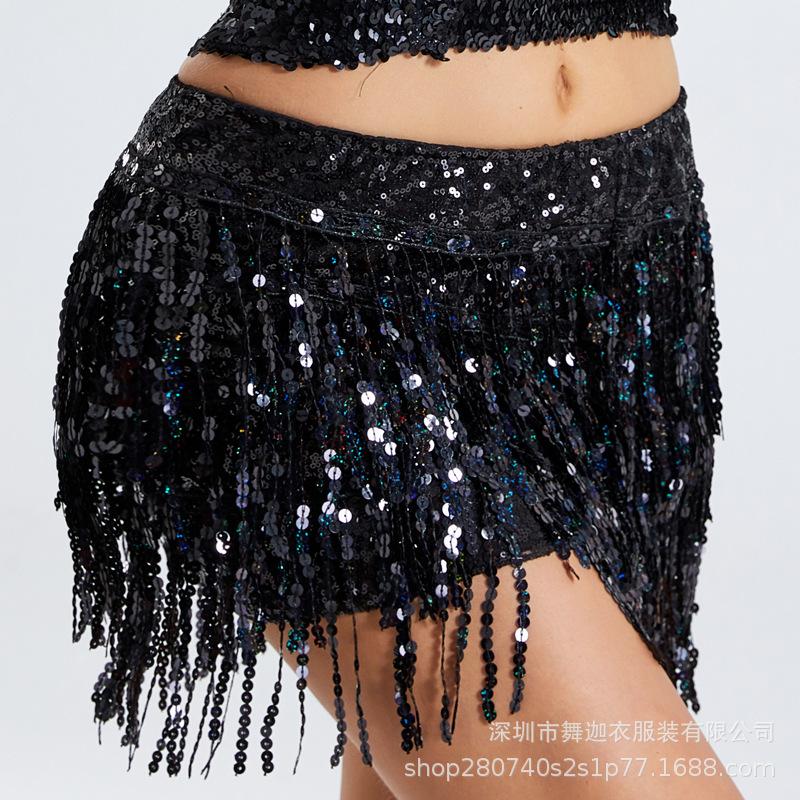 Falda con lentejuelas y borlas para baile latino, ropa de actuación para mujer