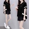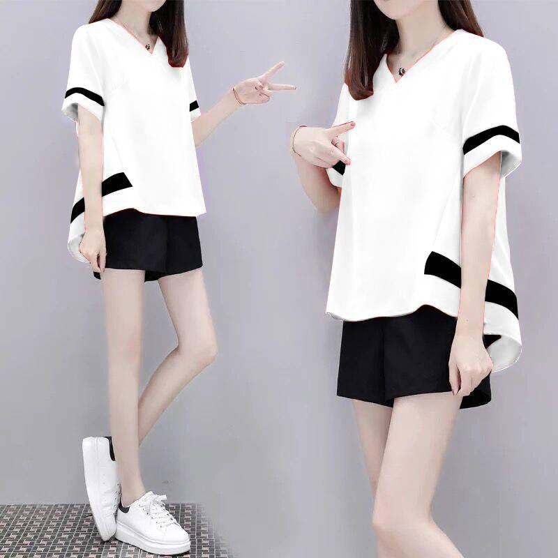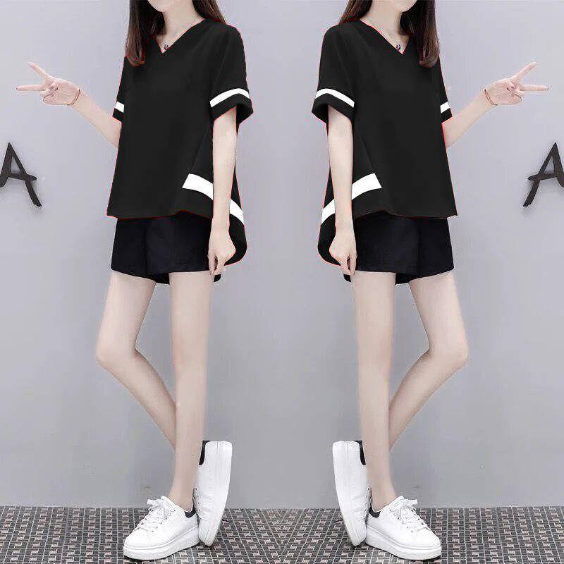 Traje de moda para mujer, novedad de verano 2025, holgado, de talla grande, de moda para mujer, de manga corta, pantalones cortos de pierna ancha, de dos piezas, de moda.