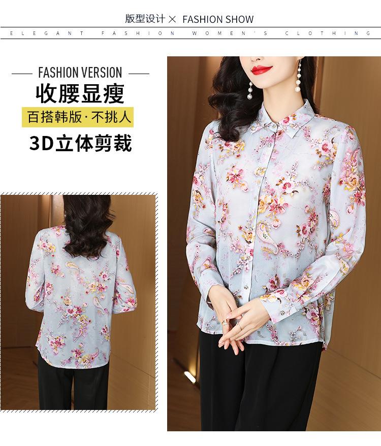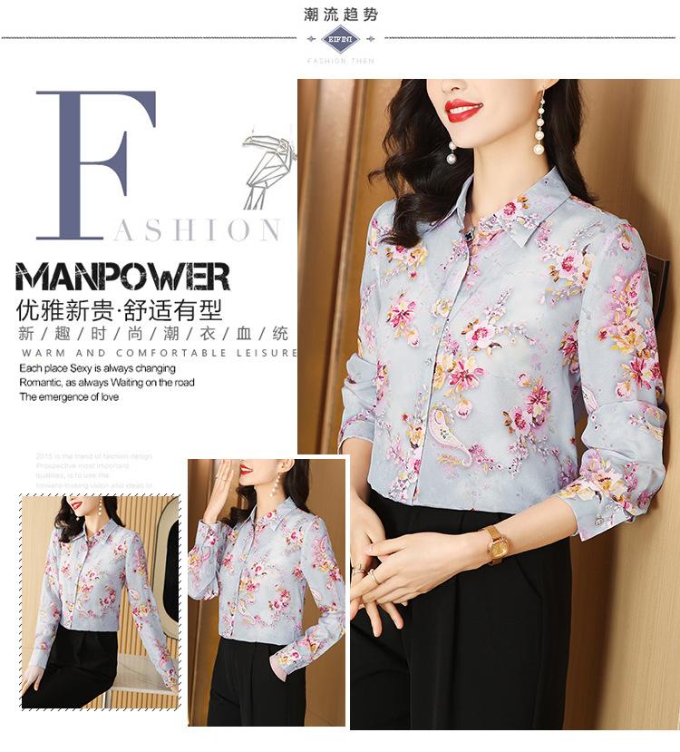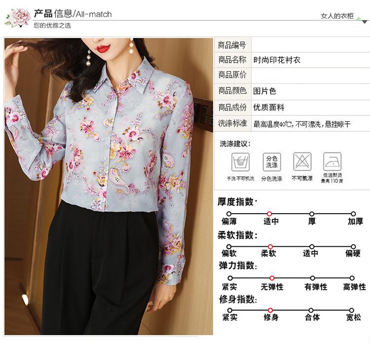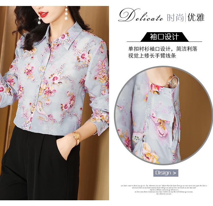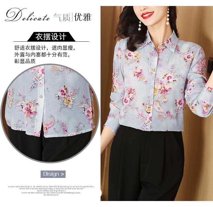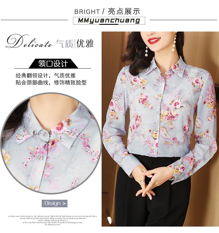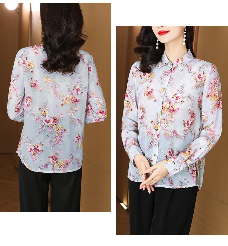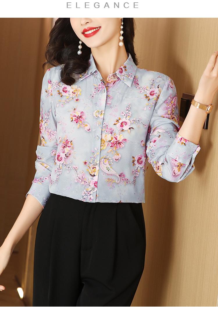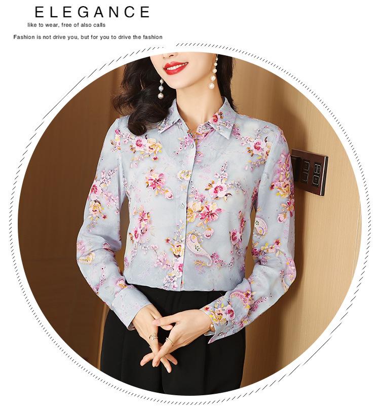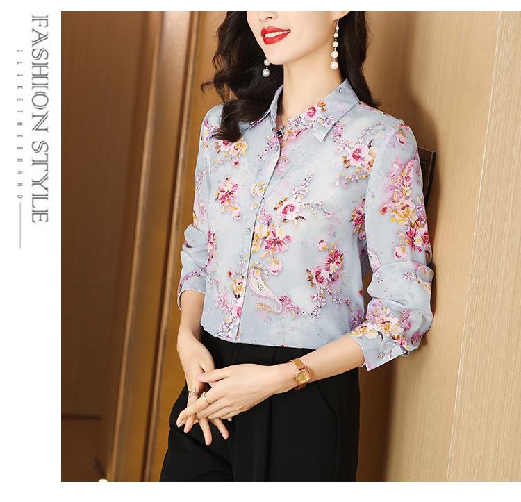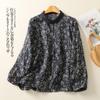Primavera 2025 Nueva Camisa Retro Francesa Estampada Transfronteriza Camisa de Manga Larga para Mujer Top Elegante para Viajera