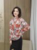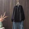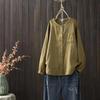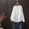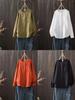 Primavera y otoño nueva blusa sencilla para mujer, camisa de bolsillo con cuello alto elegante de color sólido de hilo de algodón suave para mujer