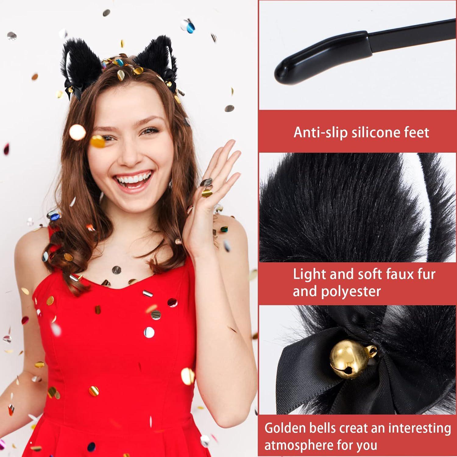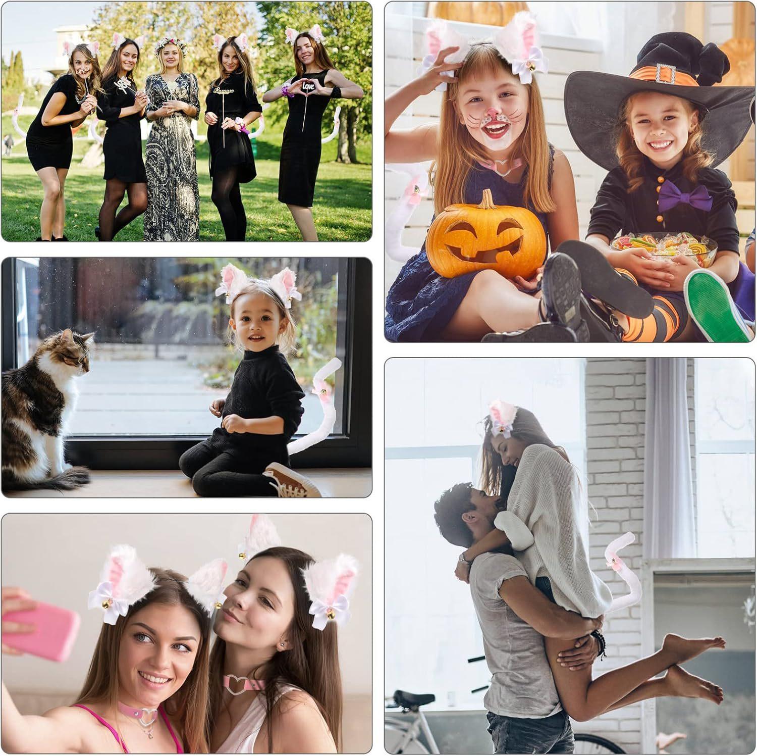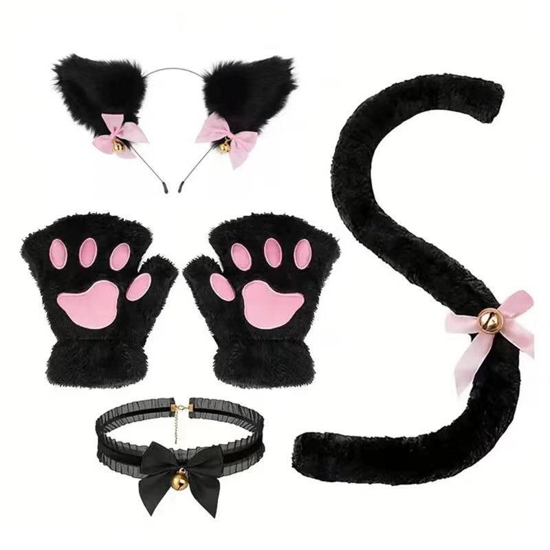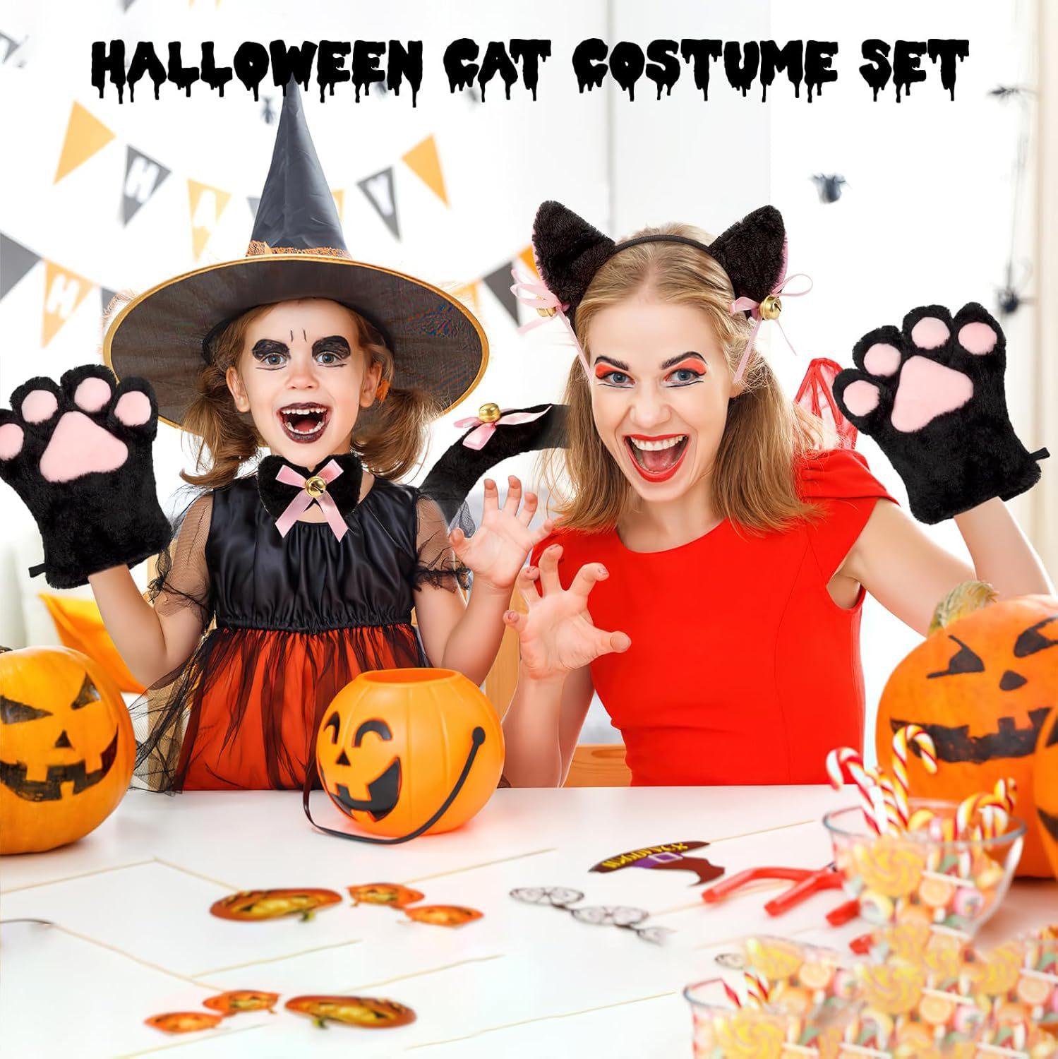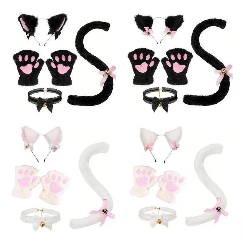 2024 Orejas de Gato Campana Aro para el Cabello Cola Guantes Cosplay Pata de Gato Linda Traje Divertido de Disfraz de Halloween