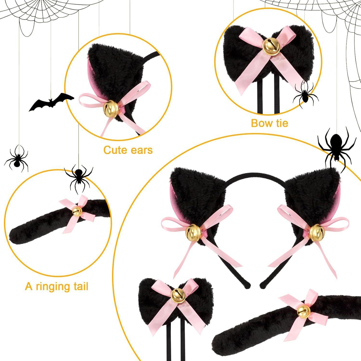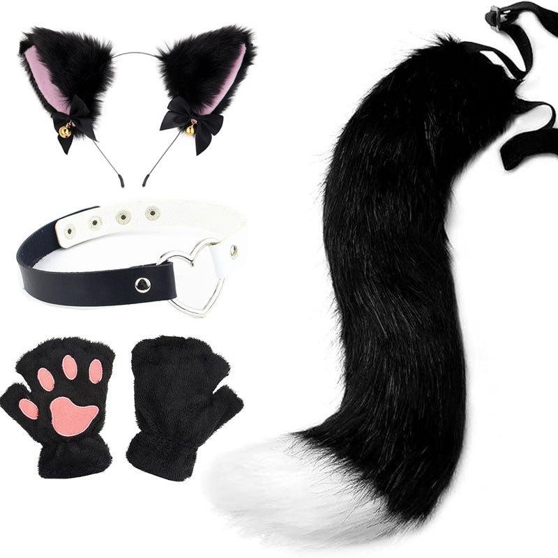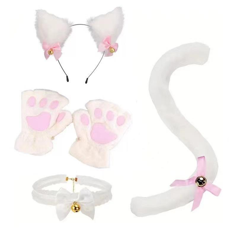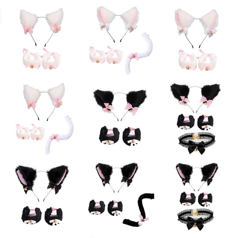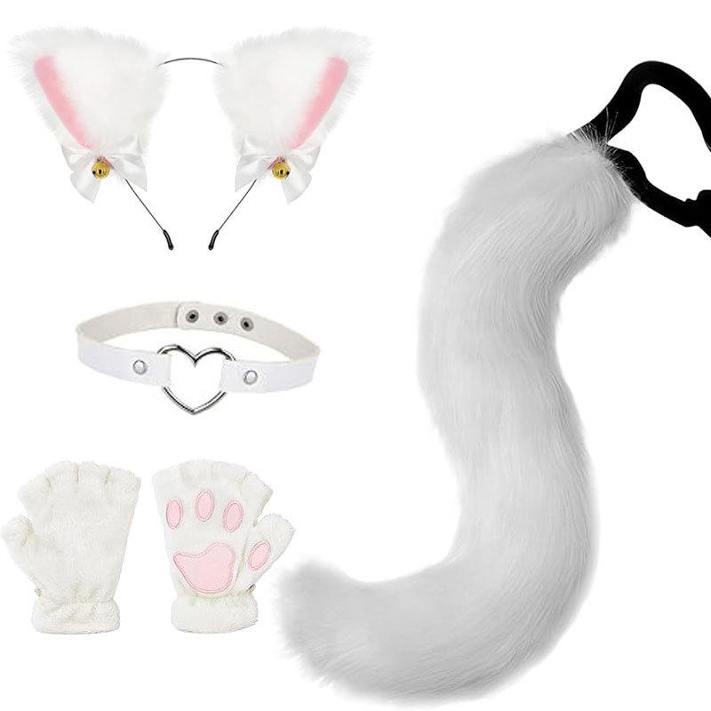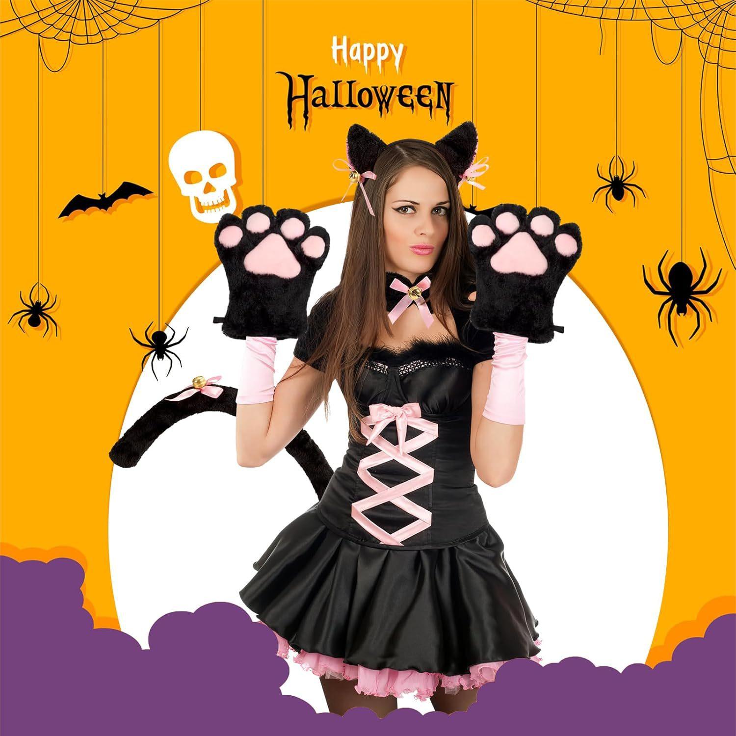 2024 Orejas de Gato Campana Aro para el Cabello Cola Guantes Cosplay Pata de Gato Linda Traje Divertido de Disfraz de Halloween