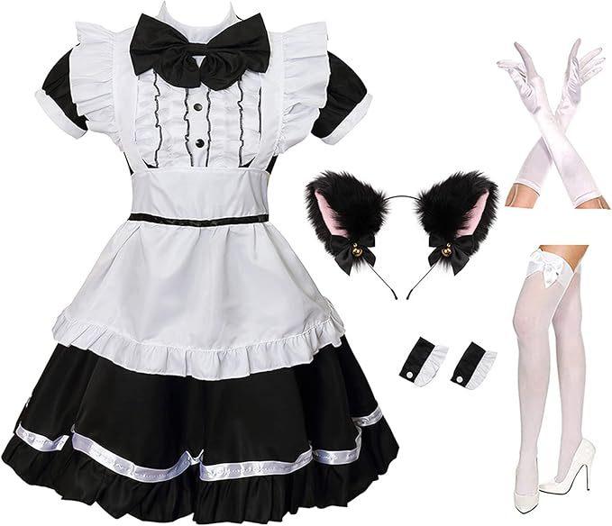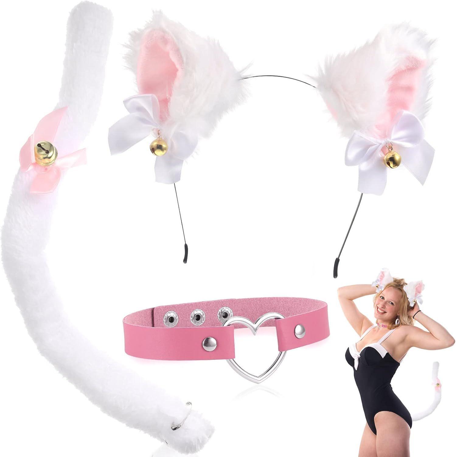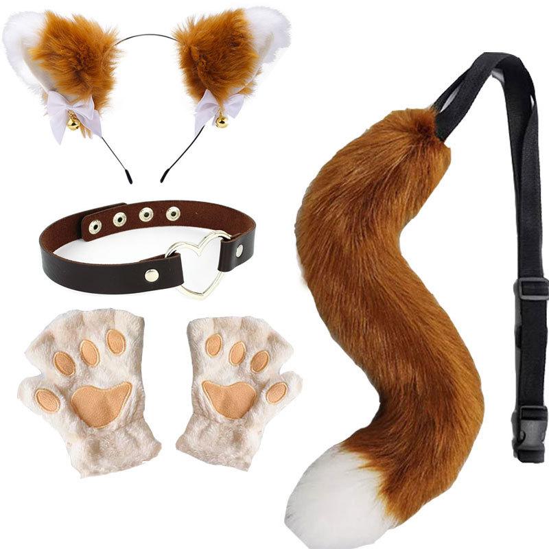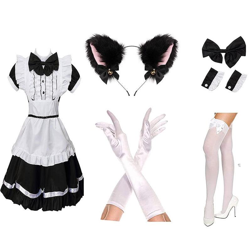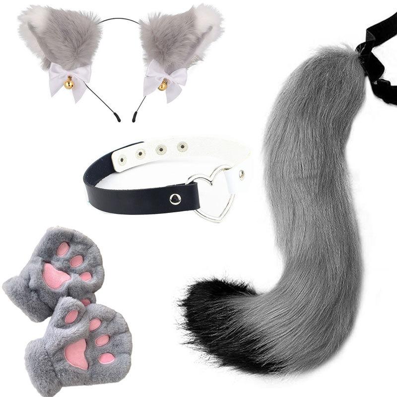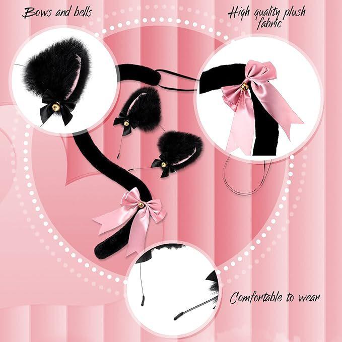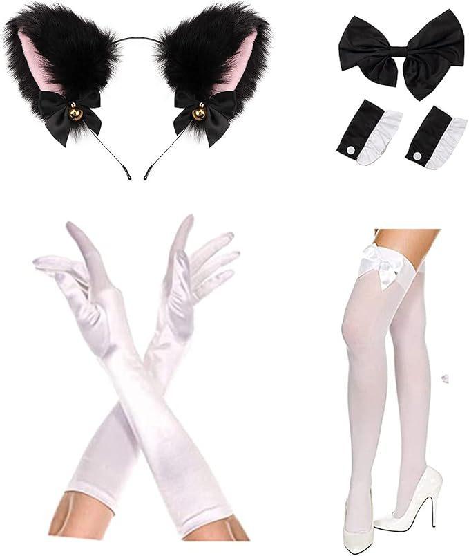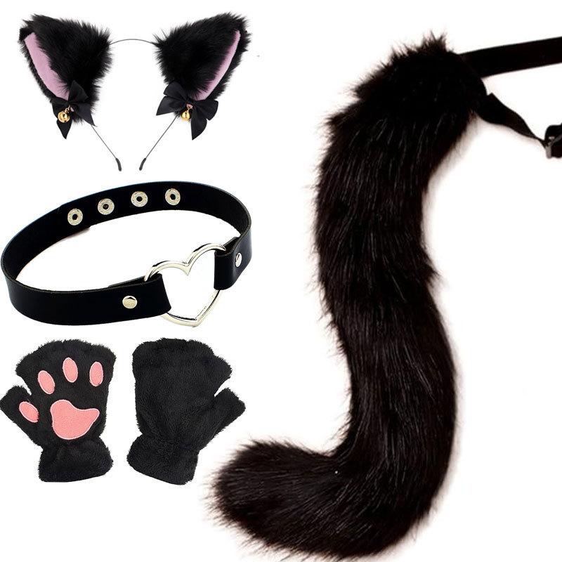 2024 Orejas de Gato Campana Aro para el Cabello Cola Guantes Cosplay Pata de Gato Linda Traje Divertido de Disfraz de Halloween