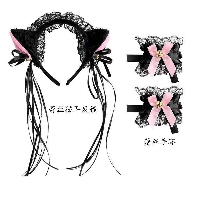 Black and white headband tail gloves three-piece set