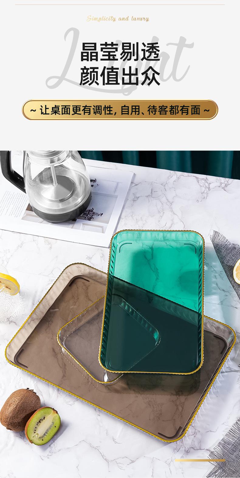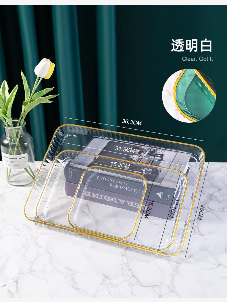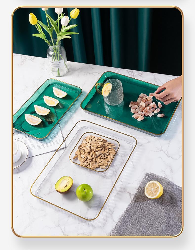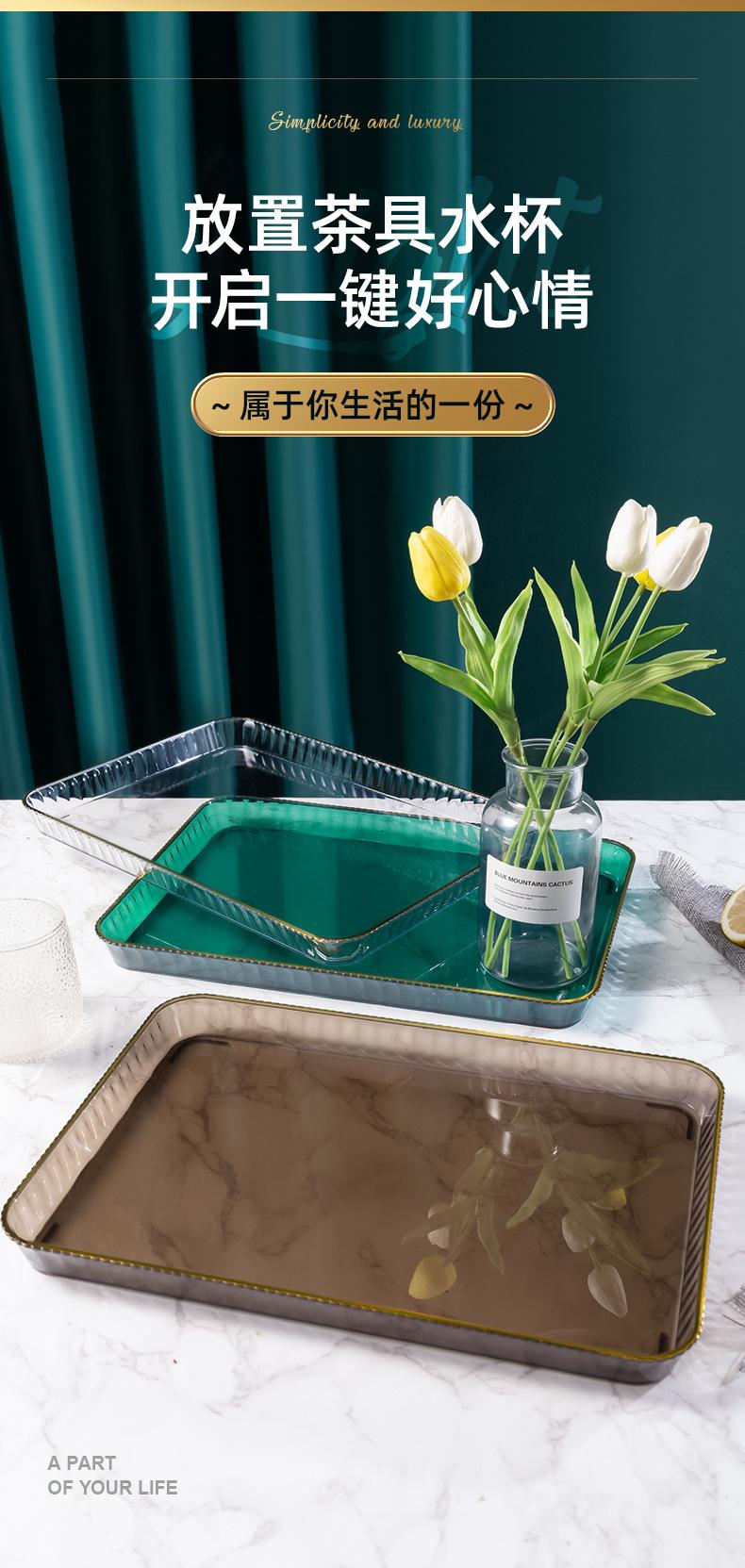 Bandeja Nuevo Estilo Ligera de Lujo para el Hogar, Sala de Estar, Taza, Taza de Té, Taza de Agua, Bandeja de Té, Plato de Dulces, Plato de Cena, Plato de Fruta Rectangular