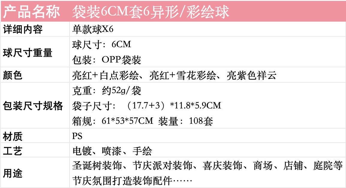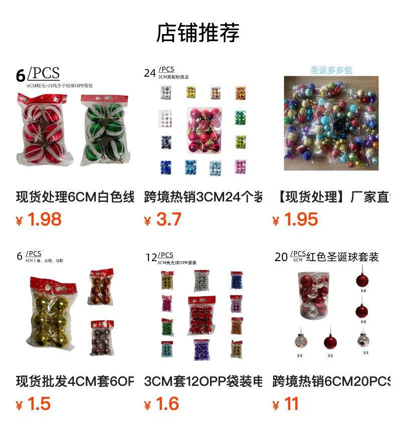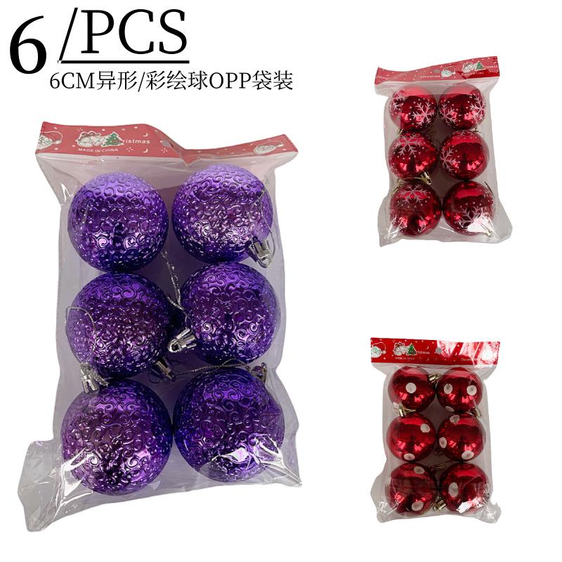 En stock, manejo de contrapunto, juegos de 6CM de 6 bolsas OPP, bola de plástico pintada a mano galvanizada, bola decorativa de ambiente navideño