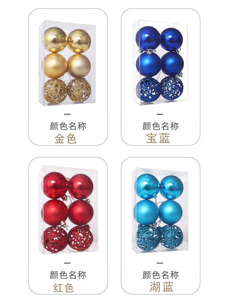 Bola navideña hueca galvanizada transfronteriza, decoración de árbol de Navidad de plástico de 6 cm y 8 cm.