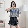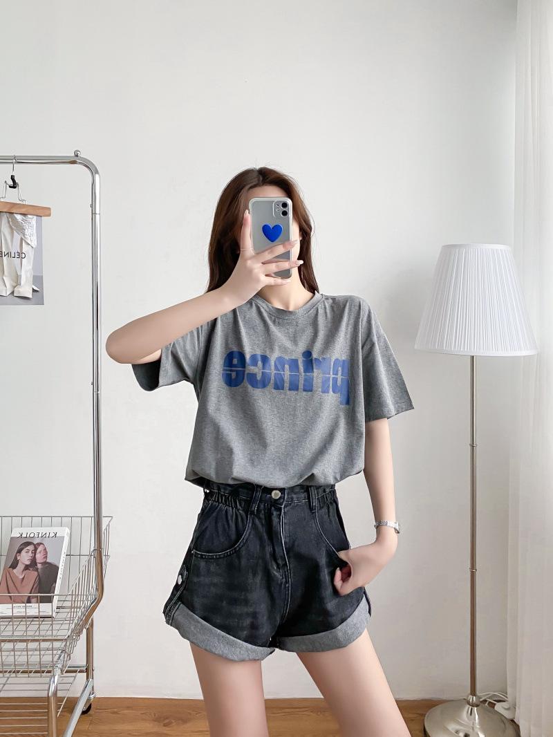 Ropa de lactancia para mujeres embarazadas estilo retro Abertura lateral oculta Top de verano para mujer Suelto talla grande Casual Camiseta de manga corta para después del parto