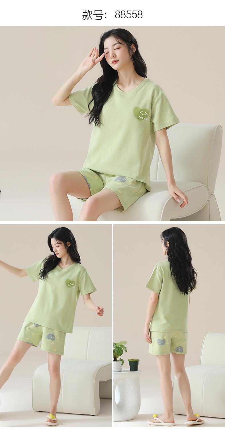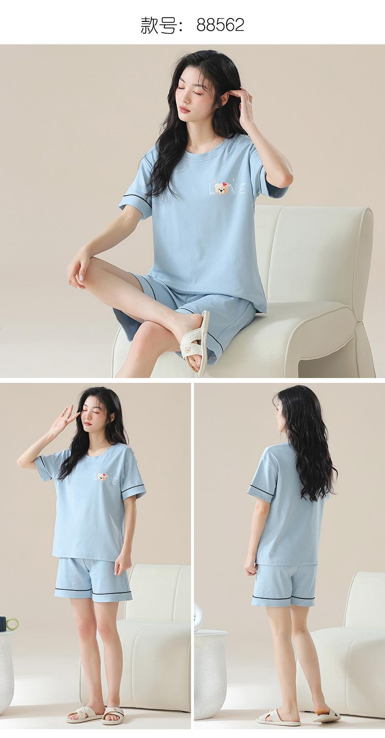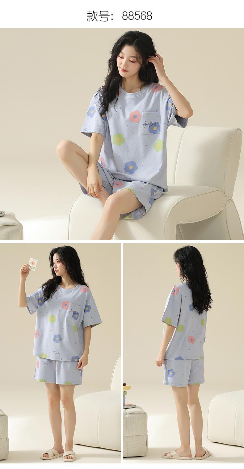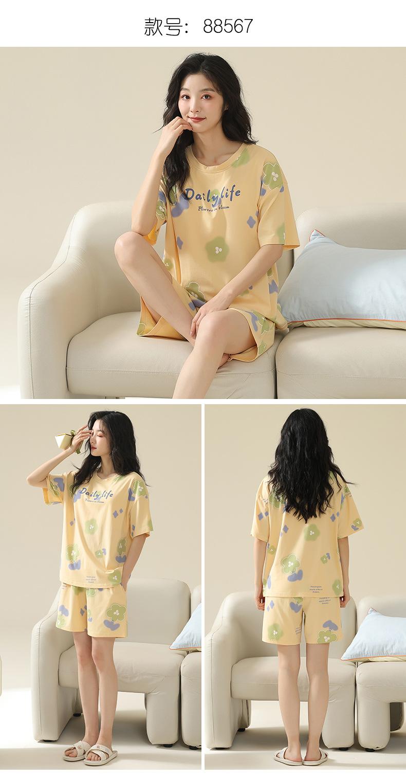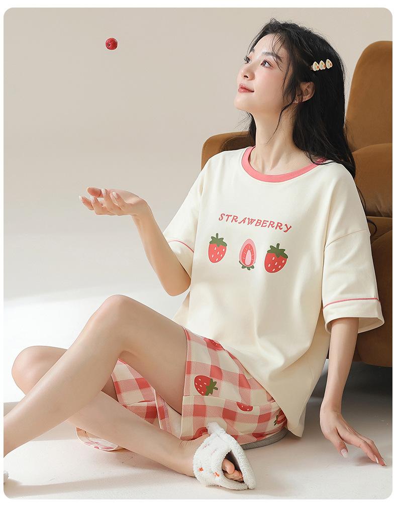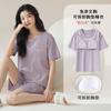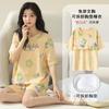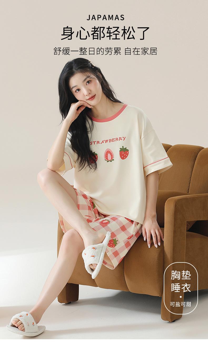 Pijamas de nuevo estilo con almohadilla para el pecho para mujer, pantalones cortos de verano de manga corta de algodón puro, bonito traje de verano, ropa exterior, ropa para el hogar