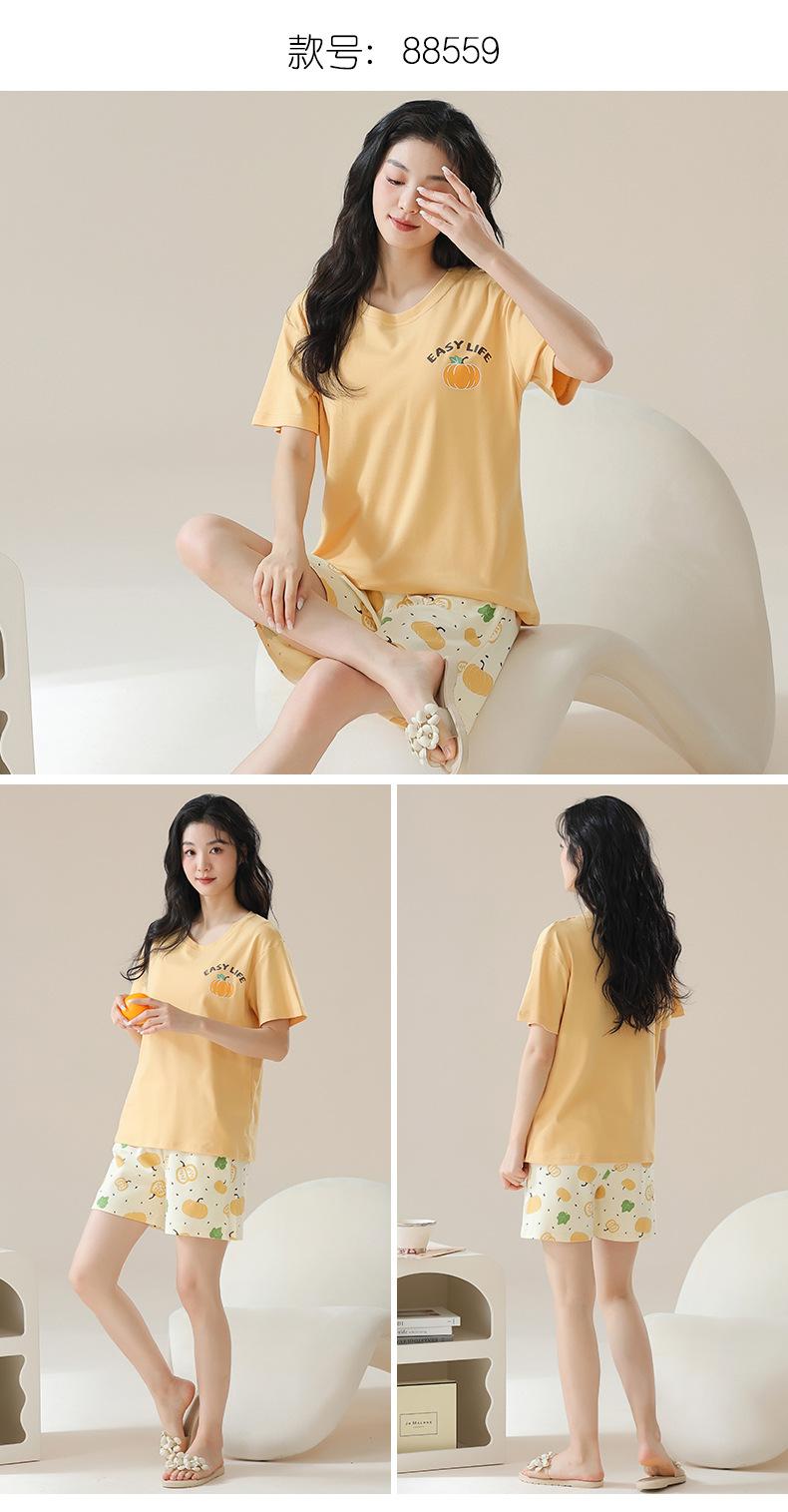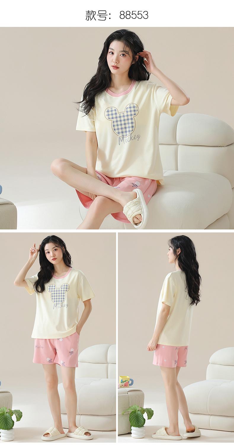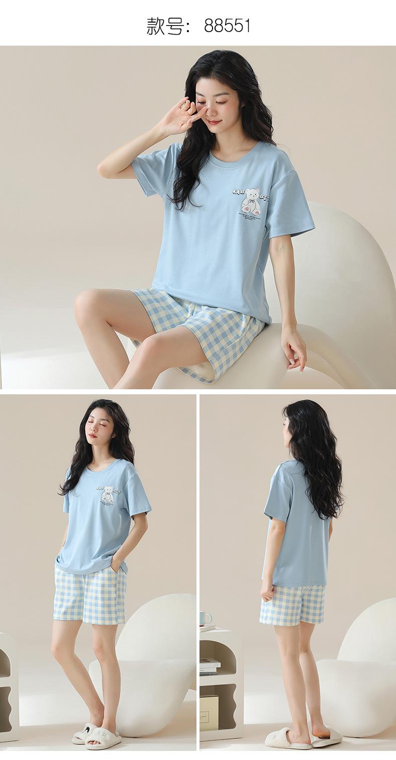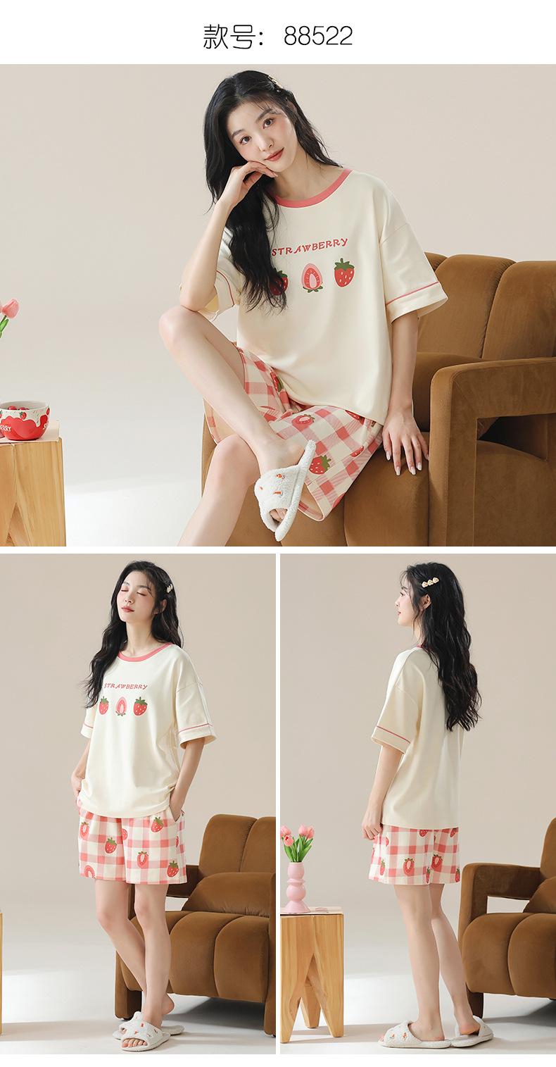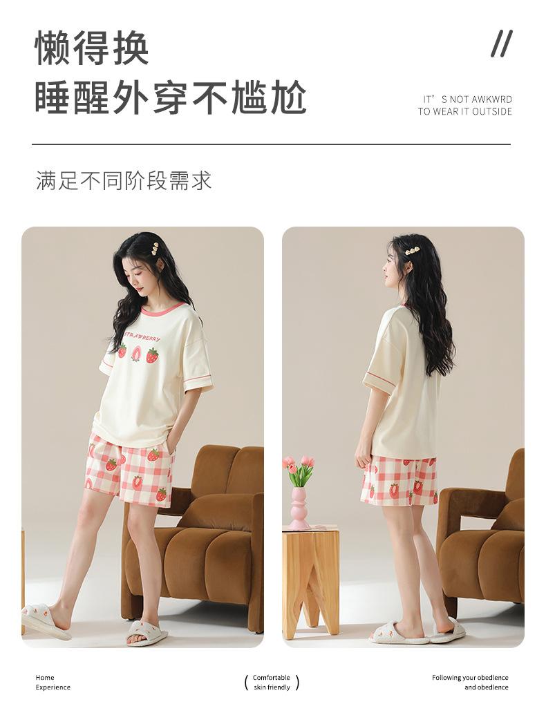 Pijamas de nuevo estilo con almohadilla para el pecho para mujer, pantalones cortos de verano de manga corta de algodón puro, bonito traje de verano, ropa exterior, ropa para el hogar